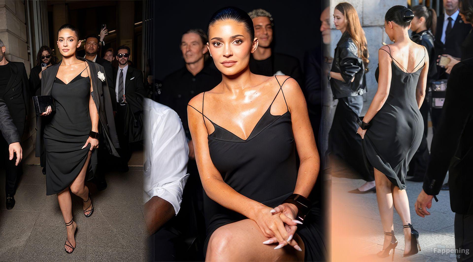 Kylie Jenner iluminó el desfile de Tom Ford en París, mostrando sus encantos en un sexy vestido negro con una audaz abertura alta en el muslo.
