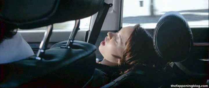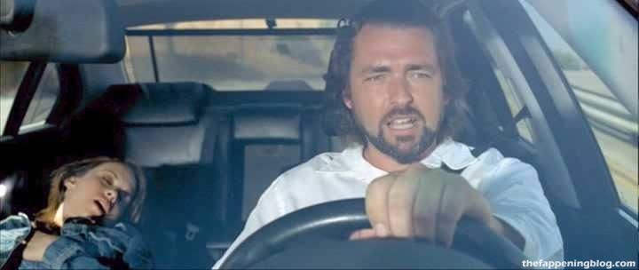 Lacey Chabert está acostada en el asiento del pasajero de un coche mientras se frota silenciosamente y se masturba mientras un chico habla y conduce sin darse cuenta de lo que ella está haciendo.