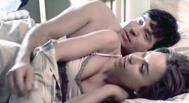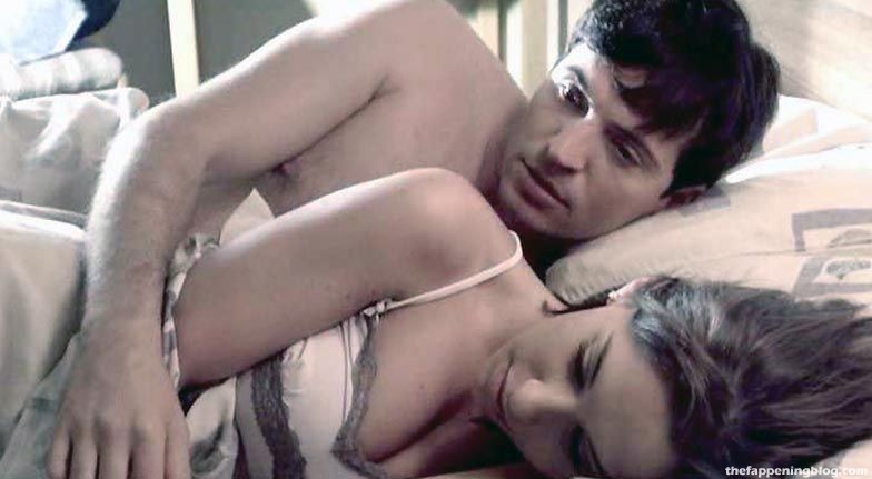 The next scene is from a movie called ‘Thirst’. We, in this one, see Miss Chambert as she lays in bed with some guy! Lacey Chabert is lying on her side in bed, wearing a low-cut tank top with her breasts squeezed together, revealing some lovely cleavage while she kisses and speaks with a gentleman.