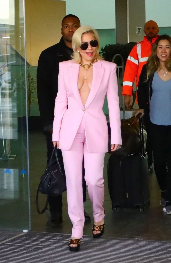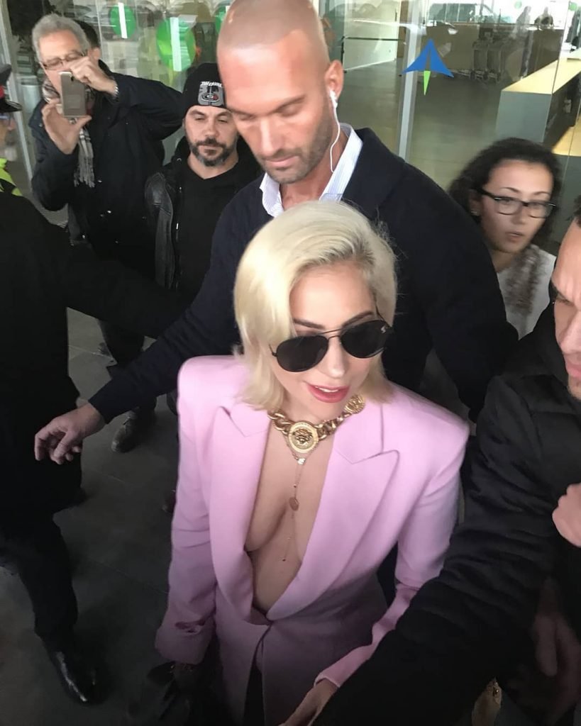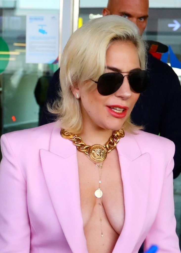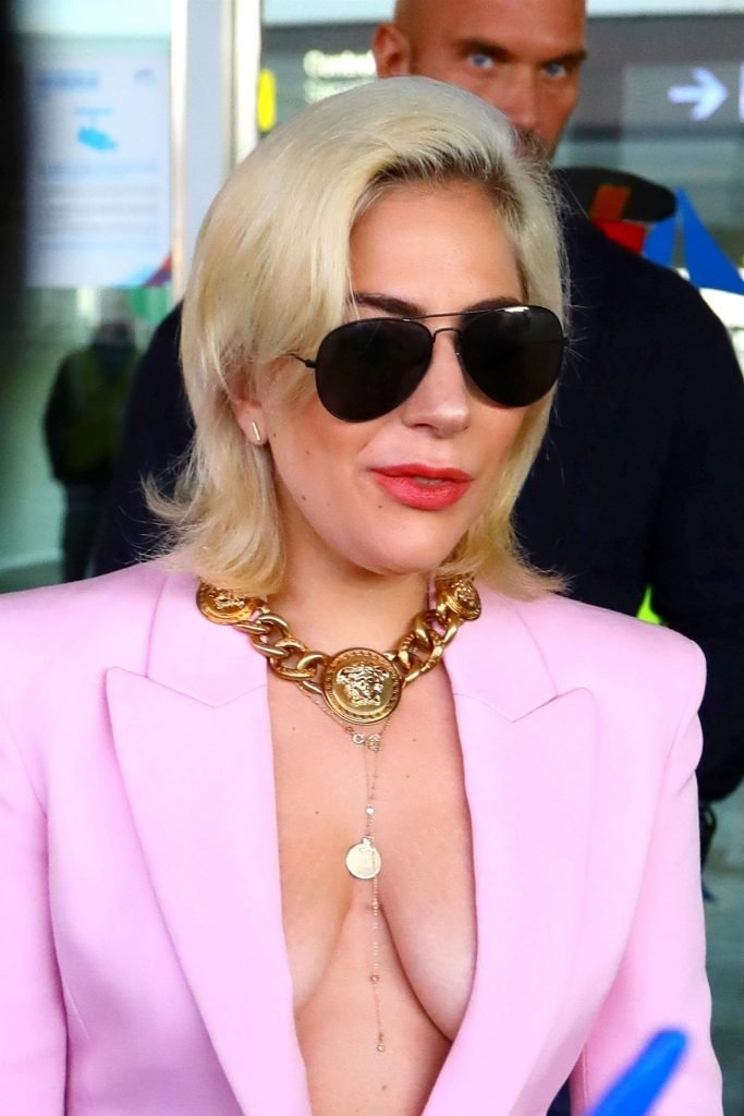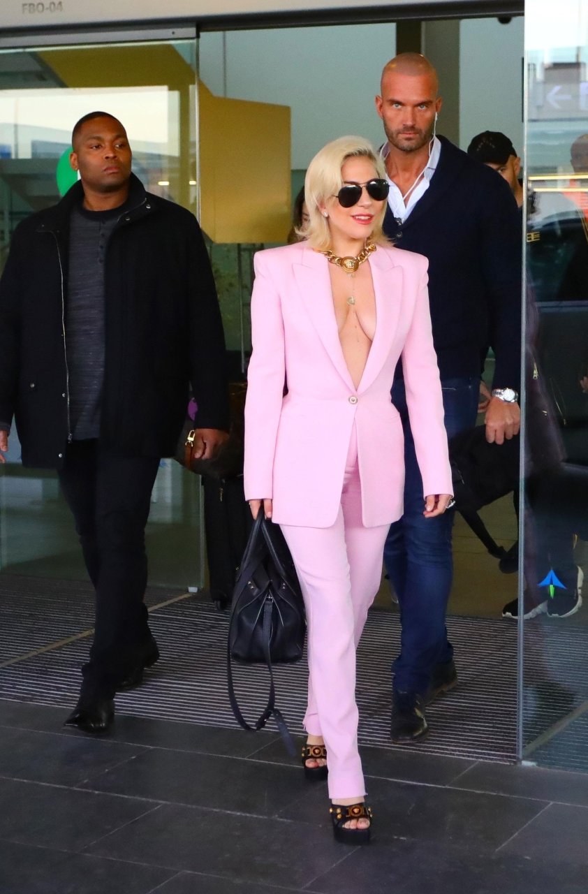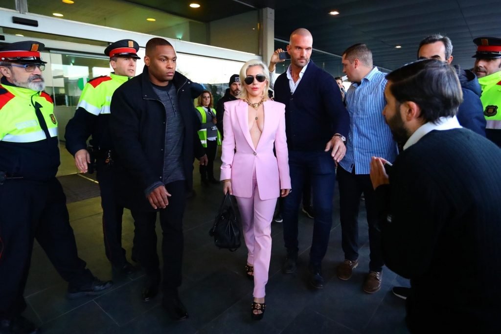Lady Gaga sin sostén llega al Aeropuerto Barcelona-El Prat en Barcelona, España, 01/11/2018. Stefani Joanne Angelina Germanotta es cantante, compositora y actriz. Edad: 31 años.
