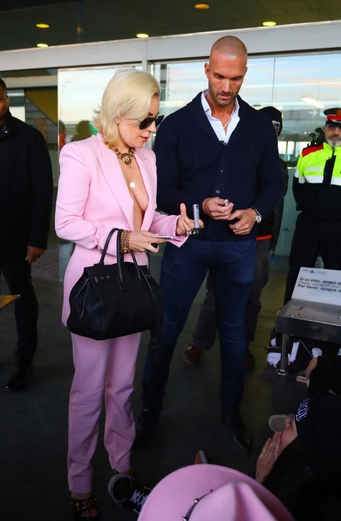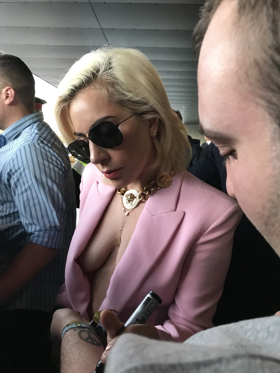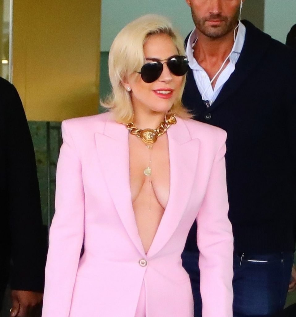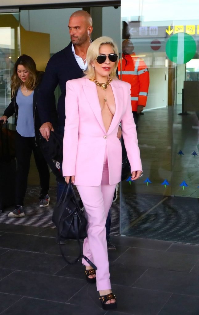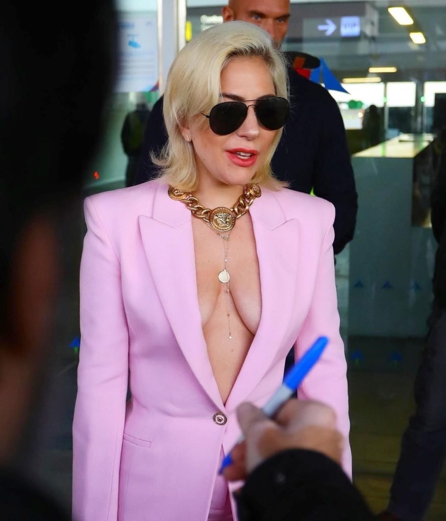 Lady Gaga sin sostén llega al Aeropuerto Barcelona-El Prat en Barcelona, España, 01/11/2018. Stefani Joanne Angelina Germanotta es cantante, compositora y actriz. Edad: 31 años.