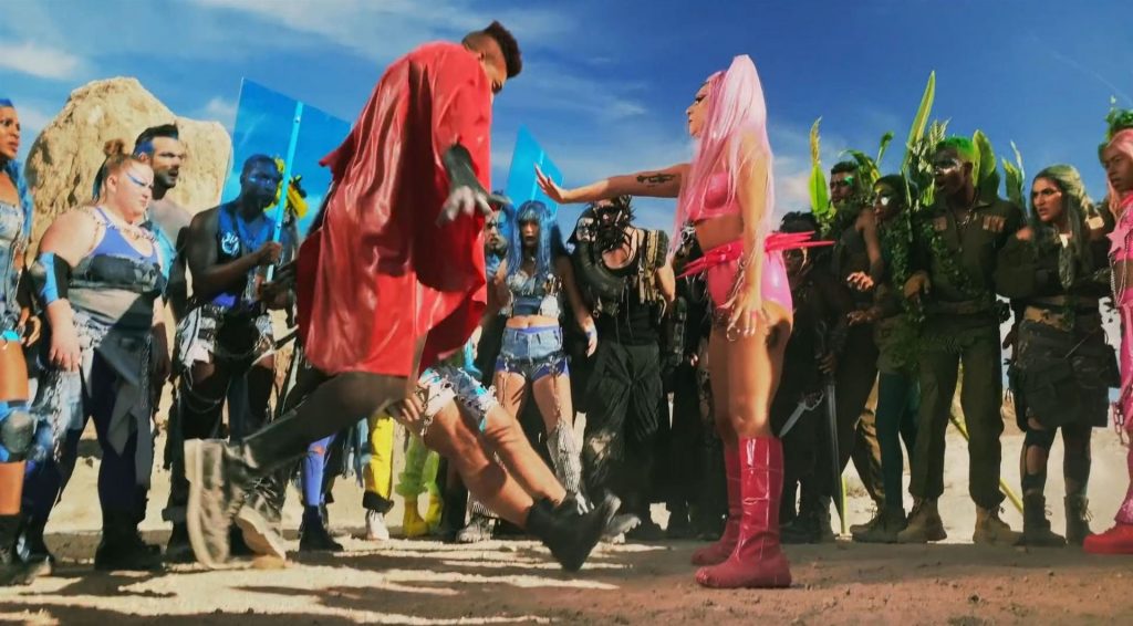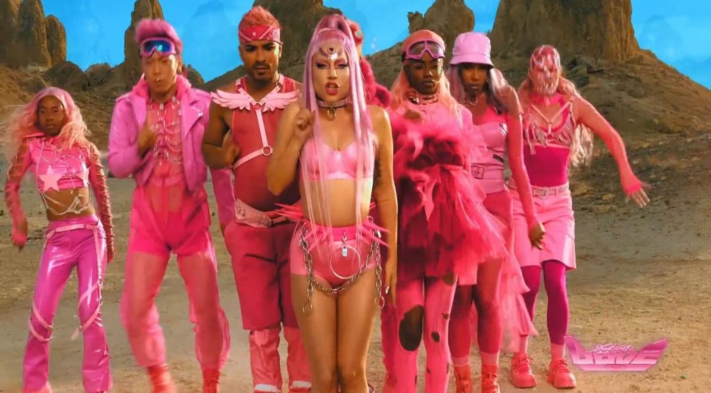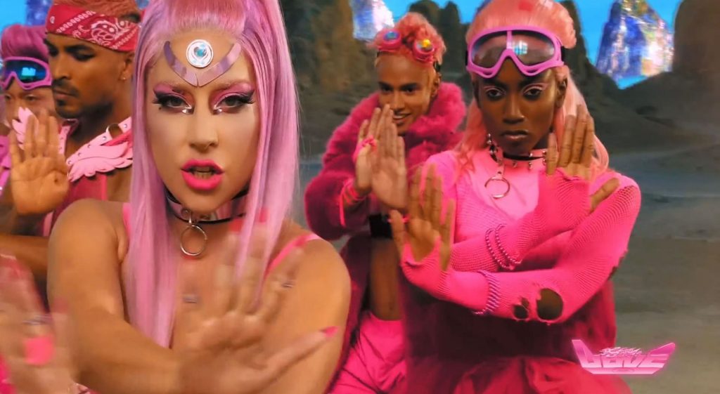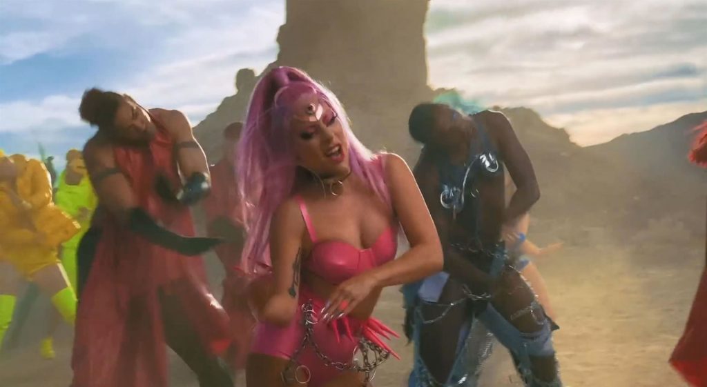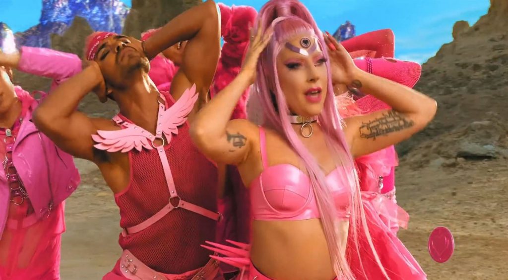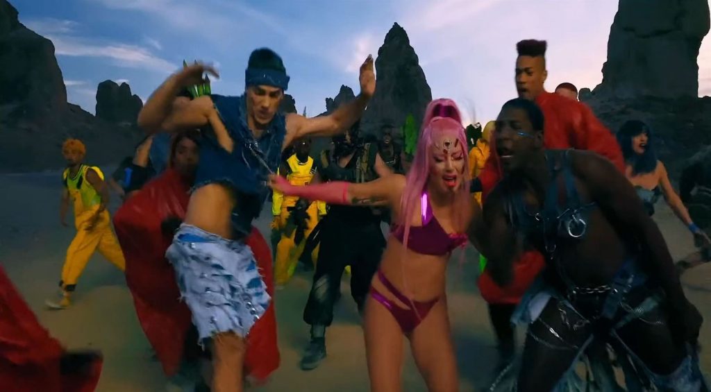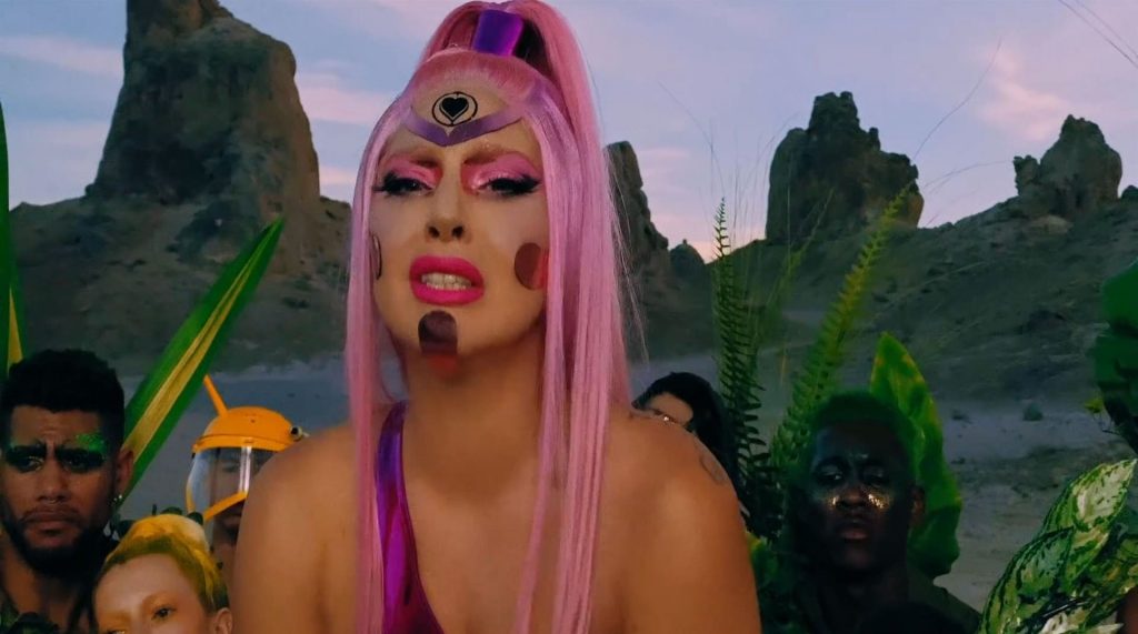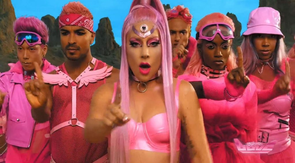 El video sigue a Gaga bailando en un desierto con un tema de otro mundo, con disfraces salvajes y un grupo de bailarines de respaldo mientras intenta unir dos tribus en guerra. Para su primer look, Gaga muestra su increíble figura con un sujetador de látex rosa fuerte y pantalones de cintura alta, con un cinturón de pinchos en la cintura. La actriz de Star Is Born complementó el llamativo disfraz con una larga peluca rosa al estilo Ariana Grande, un collar plateado y tatuajes tribales metálicos. Cuando comienza el ritmo, Gaga con cabello rosa lidera frente a sus bailarines, que también están vestidos completamente de rosa mientras realizan movimientos coreografiados. A medida que la canción avanza hacia el coro, Gaga y compañía cambian de atuendos, con la estrella en otro tono de rosa y una visera completa para los ojos, mientras sus acompañantes visten de negro. Para su tercer atuendo, Gaga se pone un bikini metálico púrpura y zapatos de plataforma, mostrando su figura esbelta.