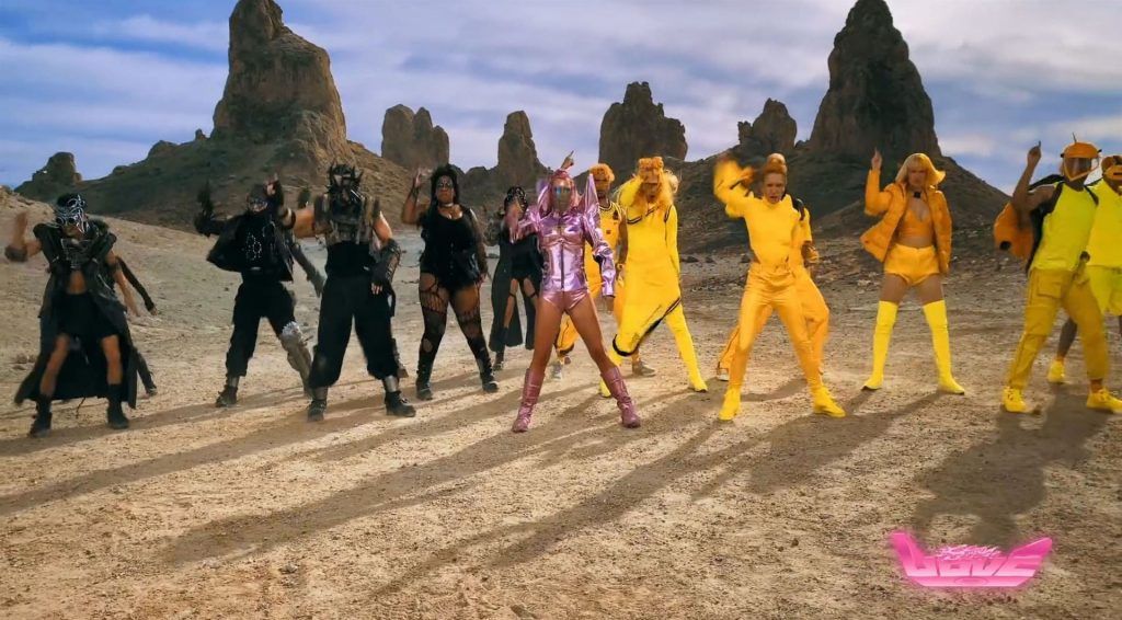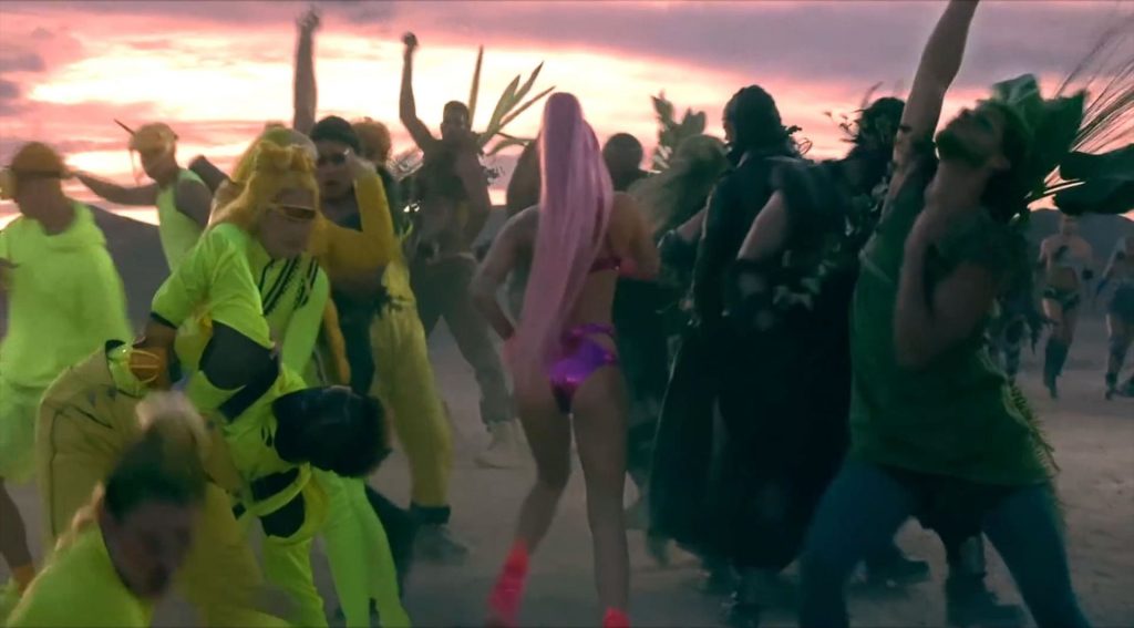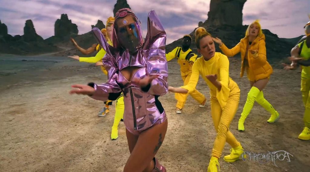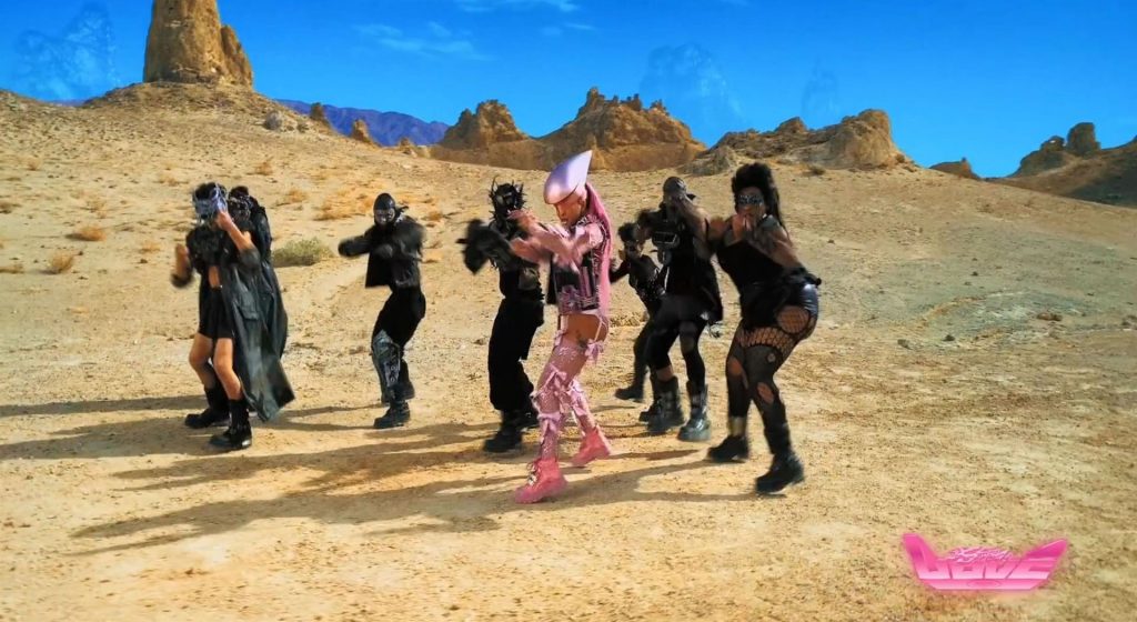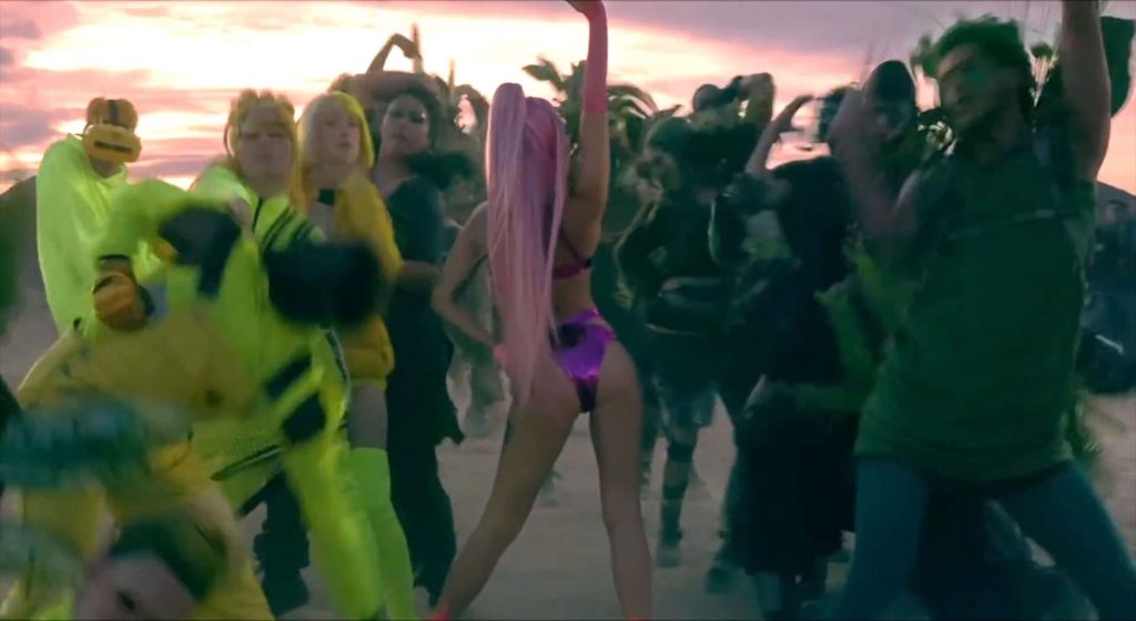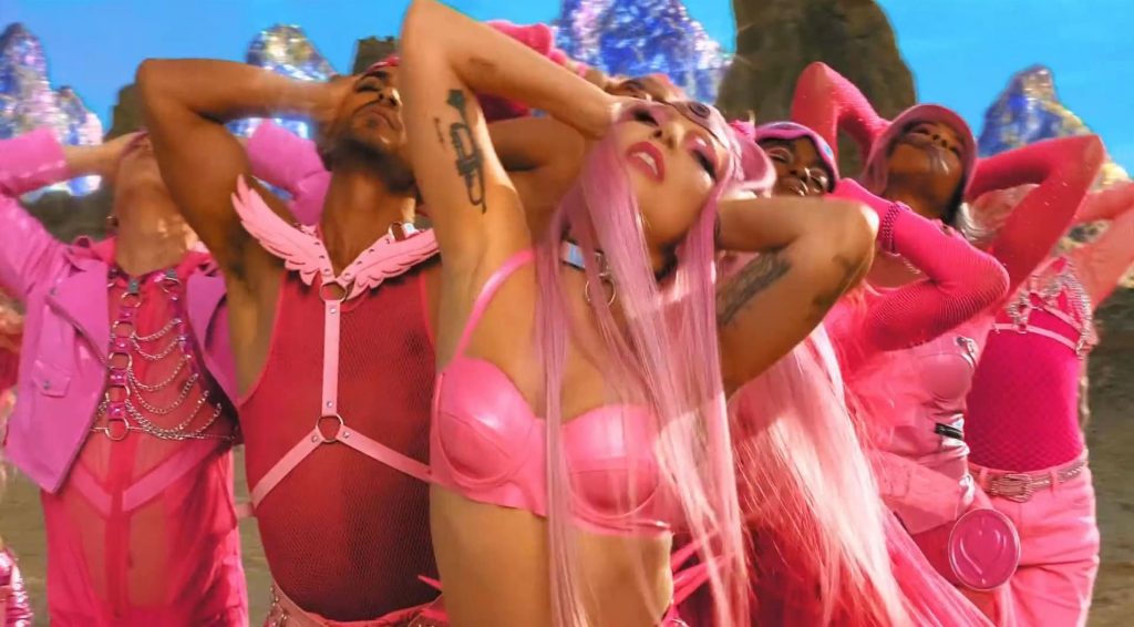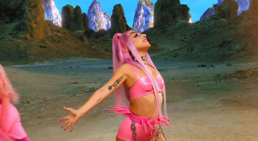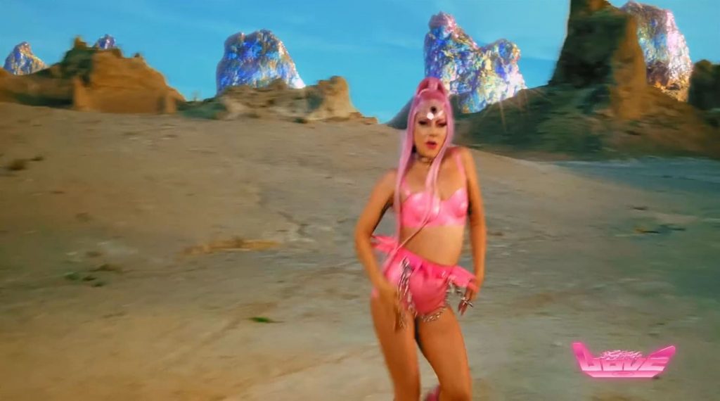 El video sigue a Gaga bailando en un desierto con un tema de otro mundo, con disfraces salvajes y un grupo de bailarines de respaldo mientras intenta unir dos tribus en guerra. Para su primer look, Gaga muestra su increíble figura con un sujetador de látex rosa fuerte y pantalones de cintura alta, con un cinturón de pinchos en la cintura. La actriz de Star Is Born complementó el llamativo disfraz con una larga peluca rosa al estilo Ariana Grande, un collar plateado y tatuajes tribales metálicos. Cuando comienza el ritmo, Gaga con cabello rosa lidera frente a sus bailarines, que también están vestidos completamente de rosa mientras realizan movimientos coreografiados. A medida que la canción avanza hacia el coro, Gaga y compañía cambian de atuendos, con la estrella en otro tono de rosa y una visera completa para los ojos, mientras sus acompañantes visten de negro. Para su tercer atuendo, Gaga se pone un bikini metálico púrpura y zapatos de plataforma, mostrando su figura esbelta.