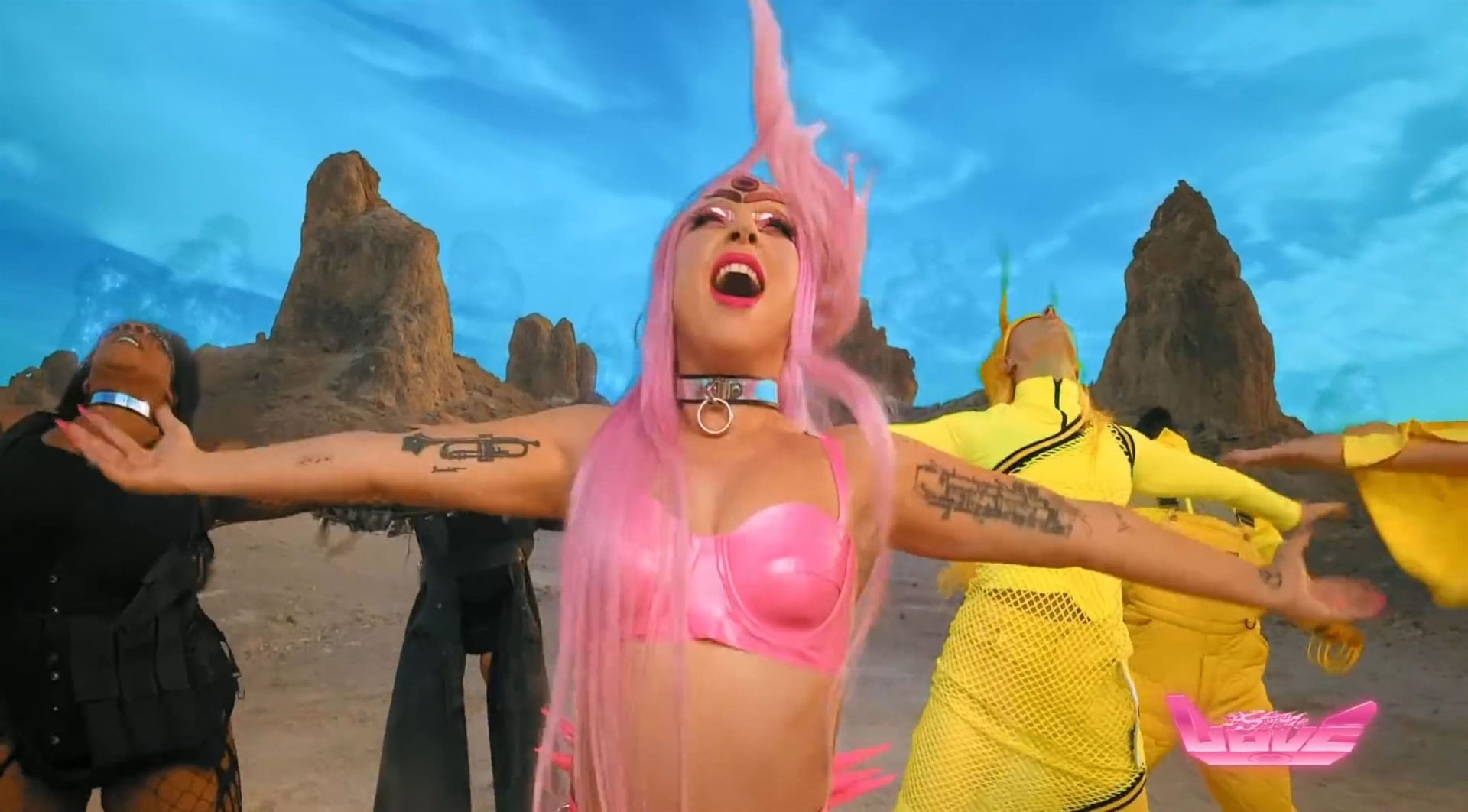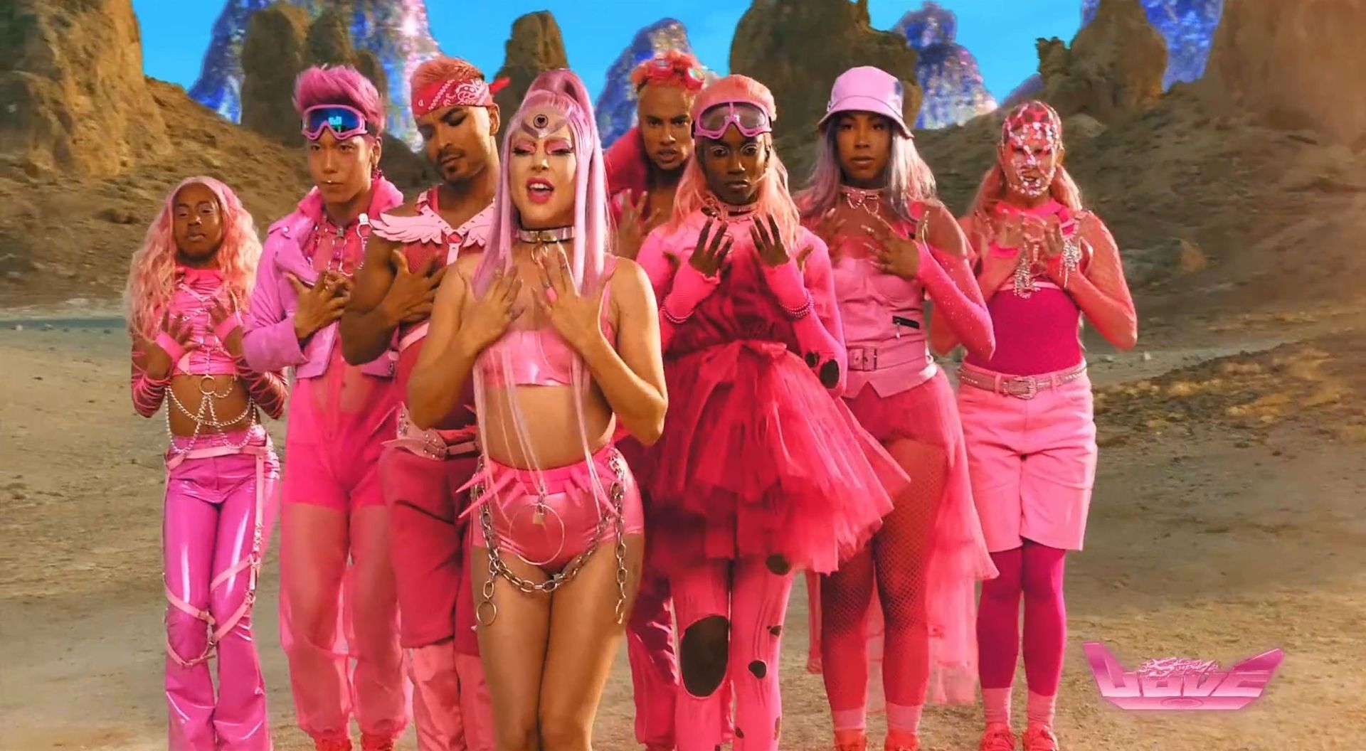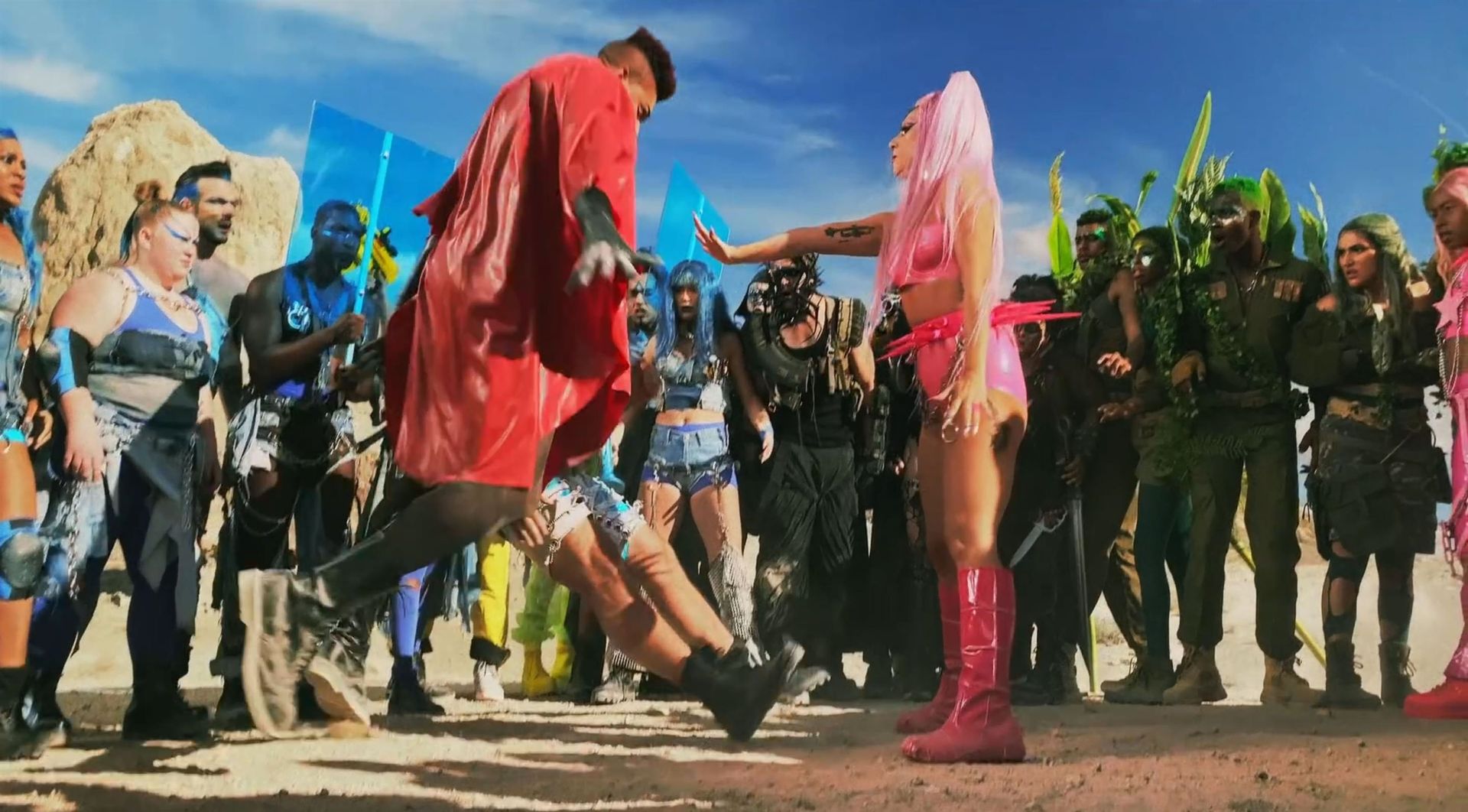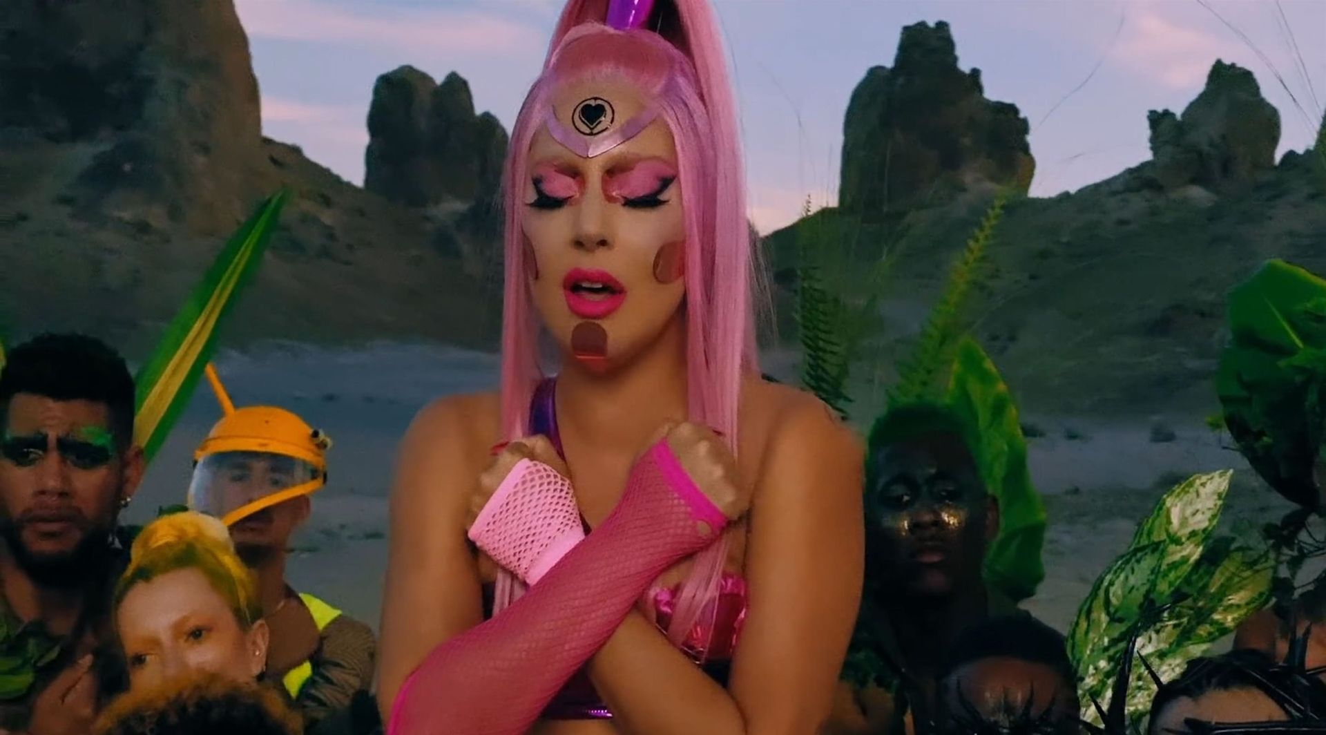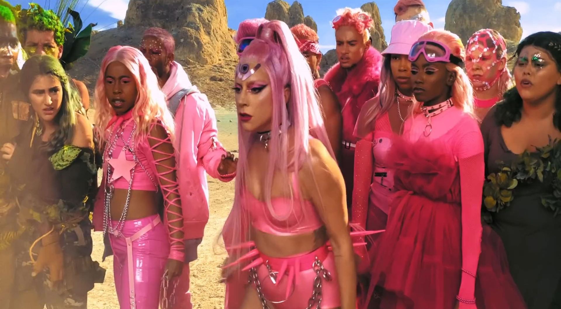 El video sigue a Gaga bailando en un desierto con un tema de otro mundo, con disfraces salvajes y un grupo de bailarines de respaldo mientras intenta unir dos tribus en guerra. Para su primer look, Gaga muestra su increíble figura con un sujetador de látex rosa fuerte y pantalones de cintura alta, con un cinturón de pinchos en la cintura. La actriz de Star Is Born complementó el llamativo disfraz con una larga peluca rosa al estilo Ariana Grande, un collar plateado y tatuajes tribales metálicos. Cuando comienza el ritmo, Gaga con cabello rosa lidera frente a sus bailarines, que también están vestidos completamente de rosa mientras realizan movimientos coreografiados. A medida que la canción avanza hacia el coro, Gaga y compañía cambian de atuendos, con la estrella en otro tono de rosa y una visera completa para los ojos, mientras sus acompañantes visten de negro. Para su tercer atuendo, Gaga se pone un bikini metálico púrpura y zapatos de plataforma, mostrando su figura esbelta.