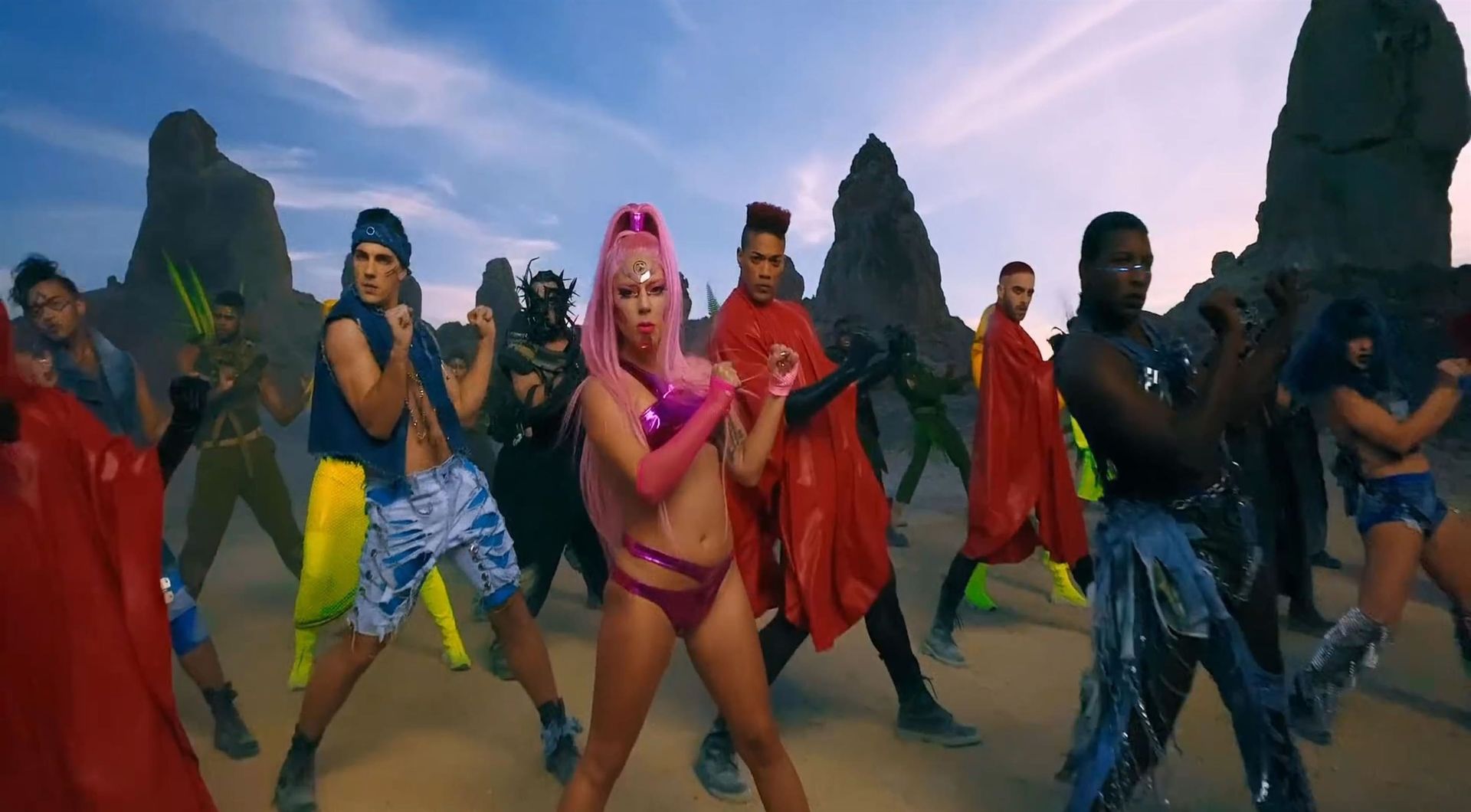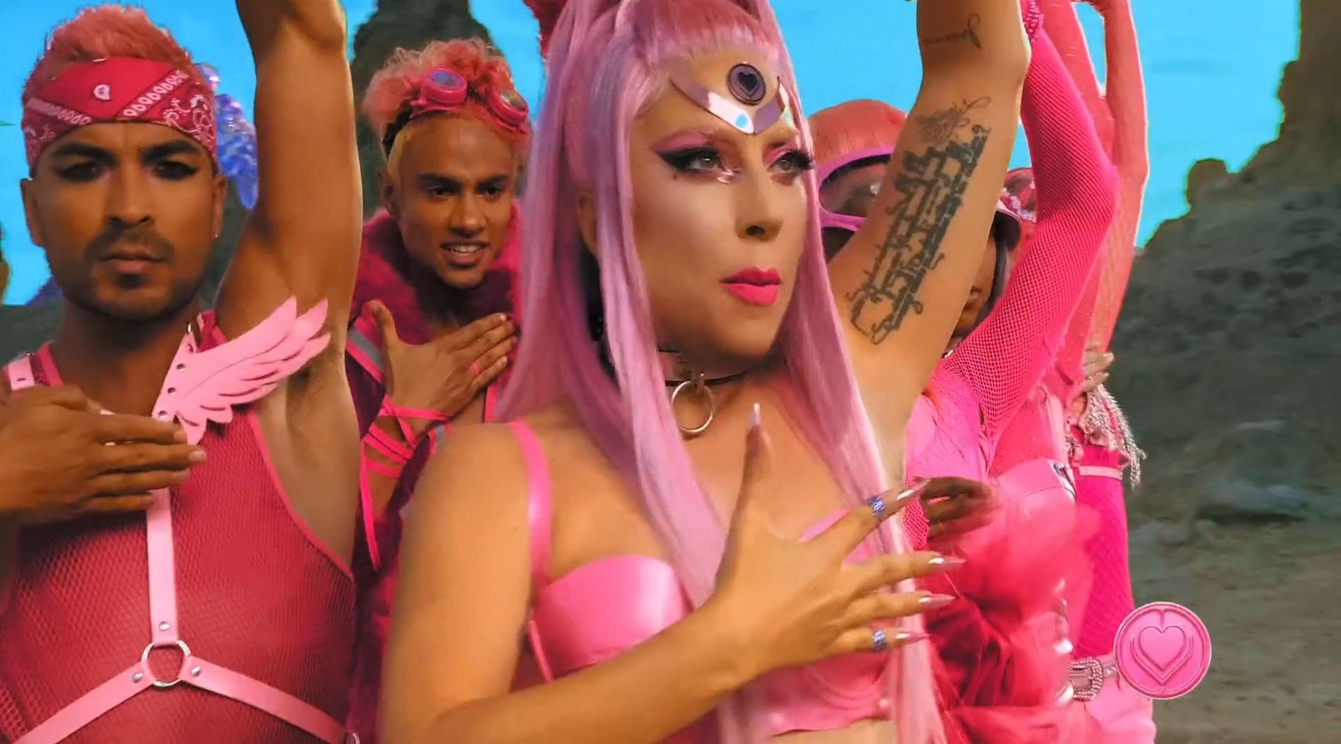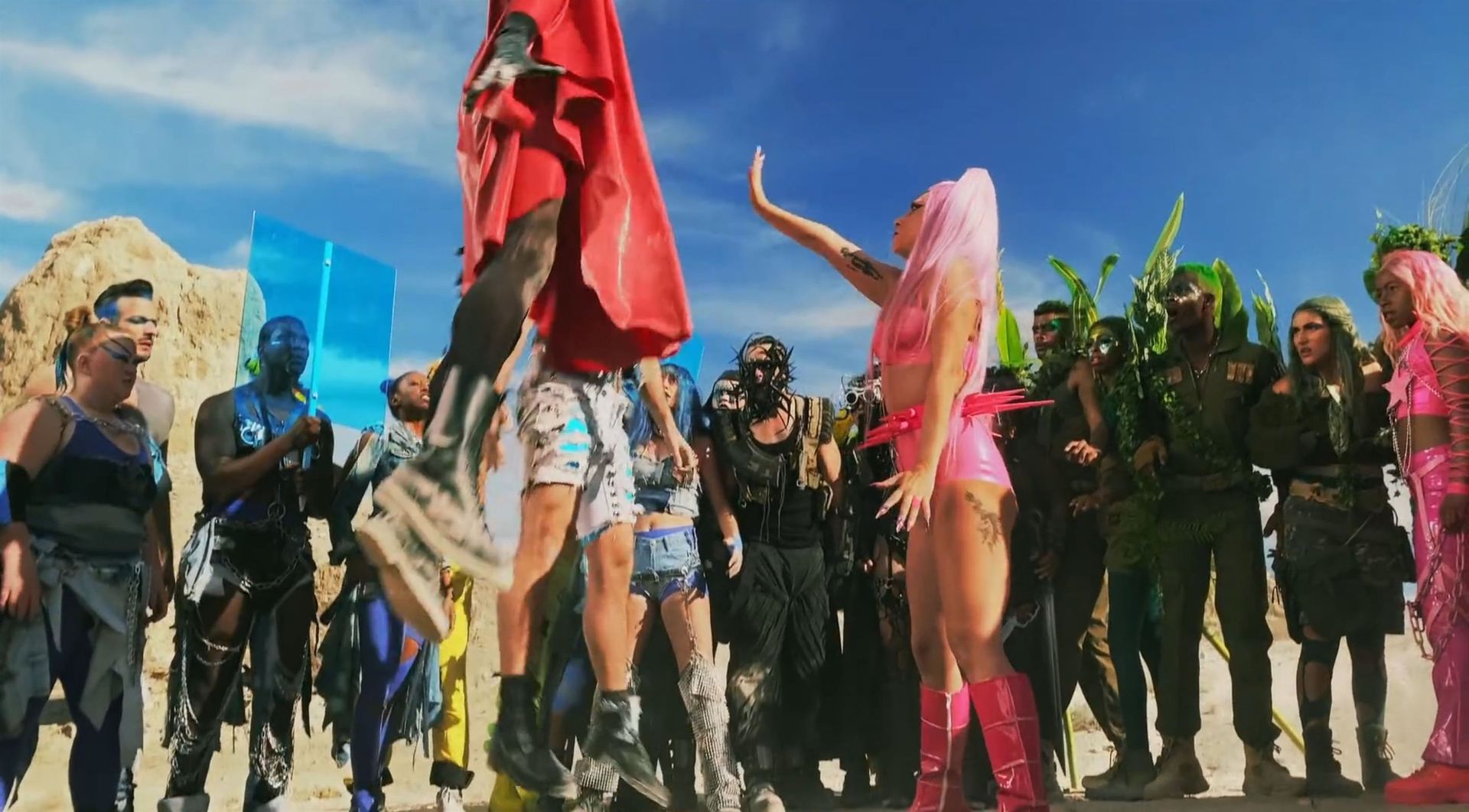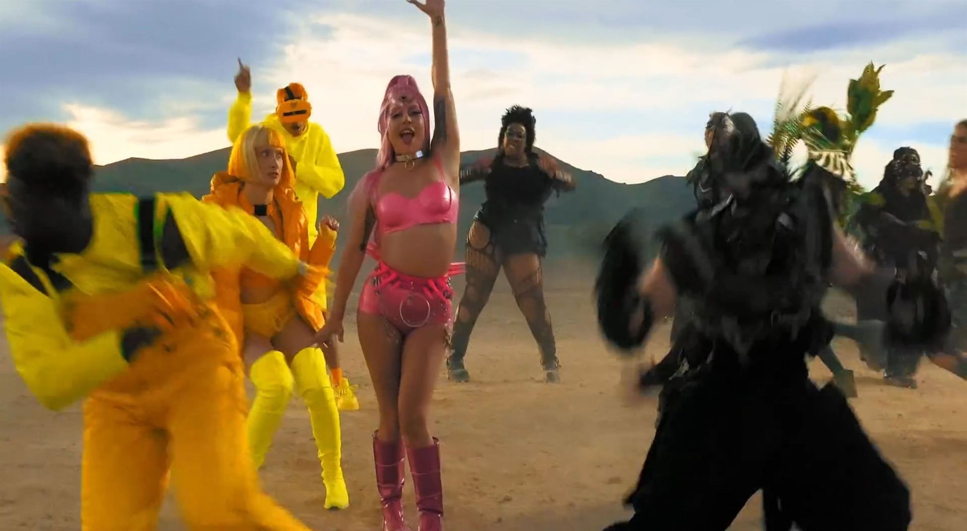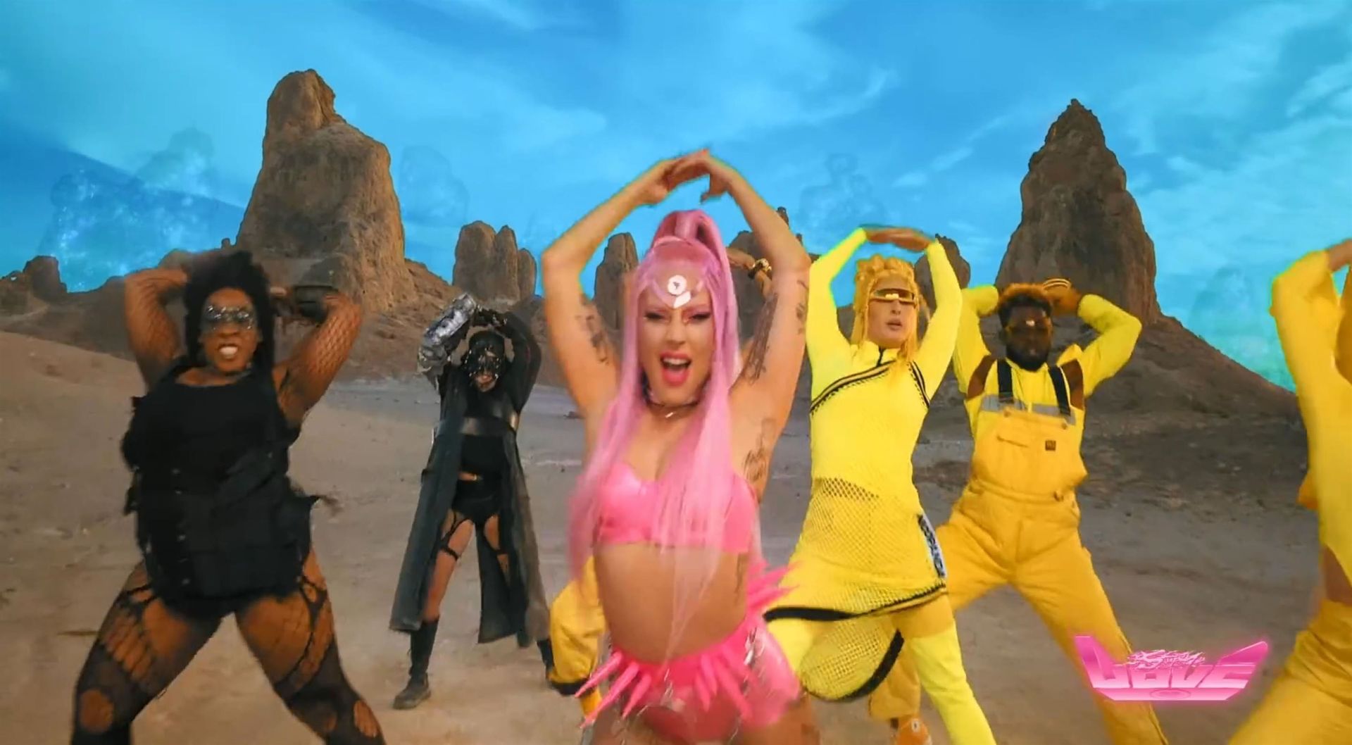 El video sigue a Gaga bailando en un desierto con un tema de otro mundo, con disfraces salvajes y un grupo de bailarines de respaldo mientras intenta unir dos tribus en guerra. Para su primer look, Gaga muestra su increíble figura con un sujetador de látex rosa fuerte y pantalones de cintura alta, con un cinturón de pinchos en la cintura. La actriz de Star Is Born complementó el llamativo disfraz con una larga peluca rosa al estilo Ariana Grande, un collar plateado y tatuajes tribales metálicos. Cuando comienza el ritmo, Gaga con cabello rosa lidera frente a sus bailarines, que también están vestidos completamente de rosa mientras realizan movimientos coreografiados. A medida que la canción avanza hacia el coro, Gaga y compañía cambian de atuendos, con la estrella en otro tono de rosa y una visera completa para los ojos, mientras sus acompañantes visten de negro. Para su tercer atuendo, Gaga se pone un bikini metálico púrpura y zapatos de plataforma, mostrando su figura esbelta.