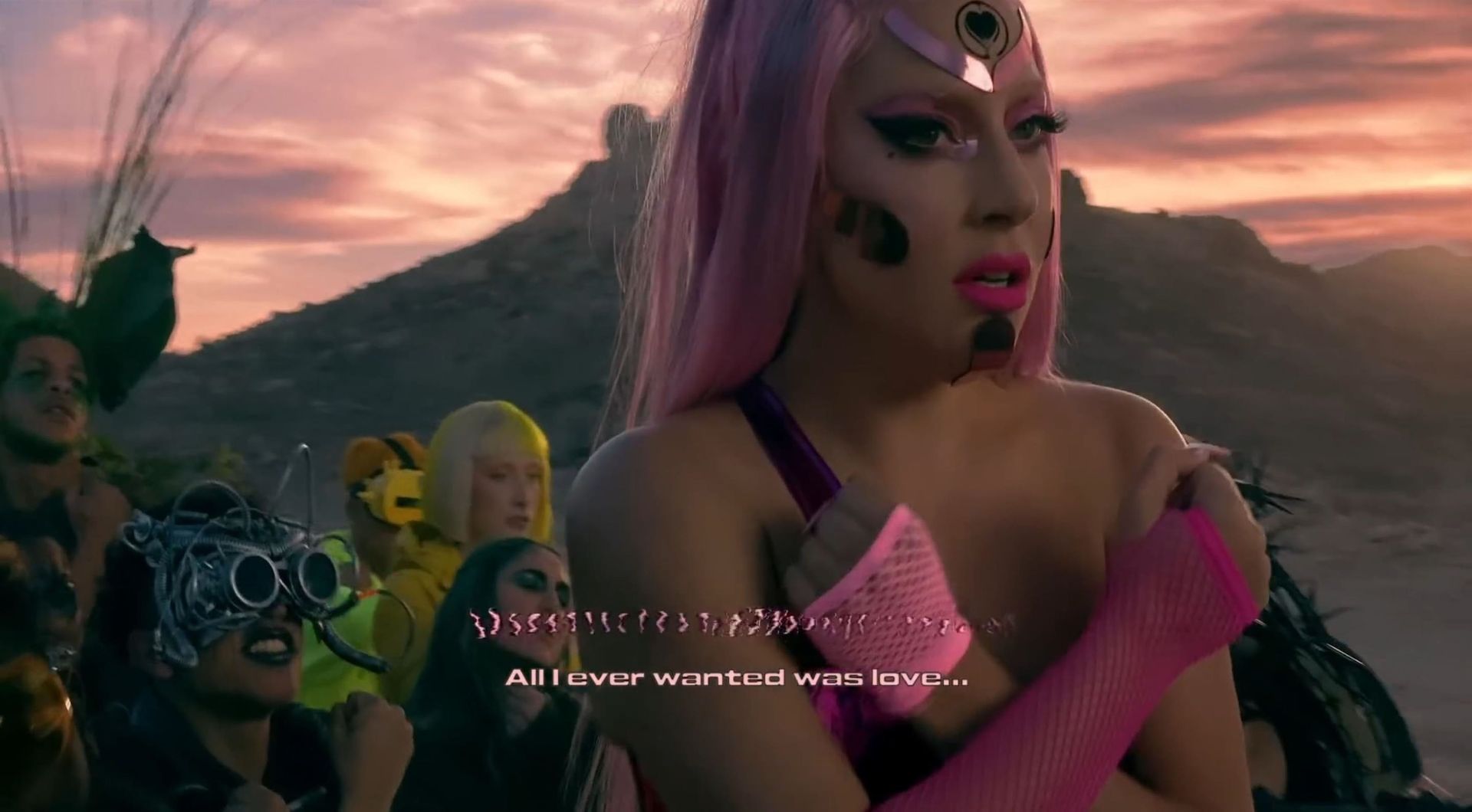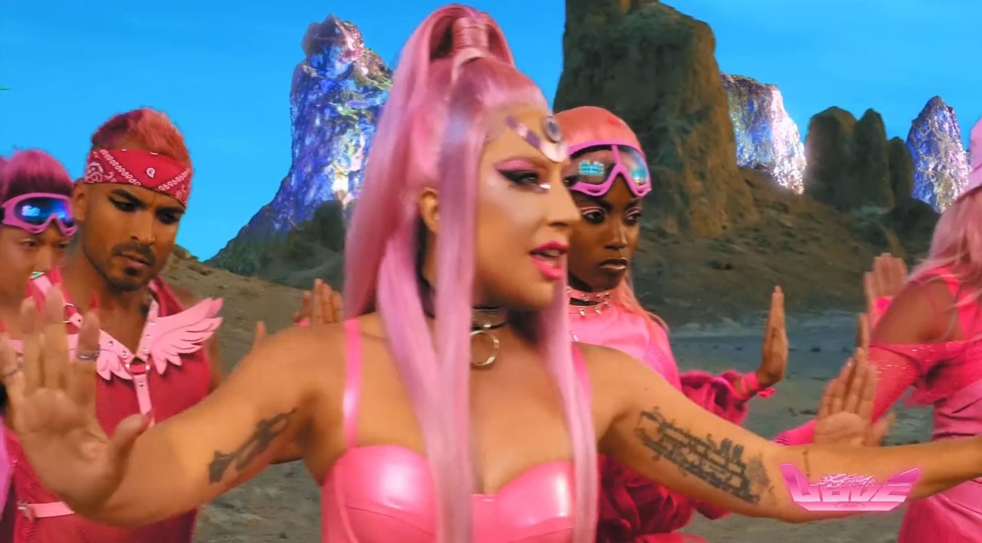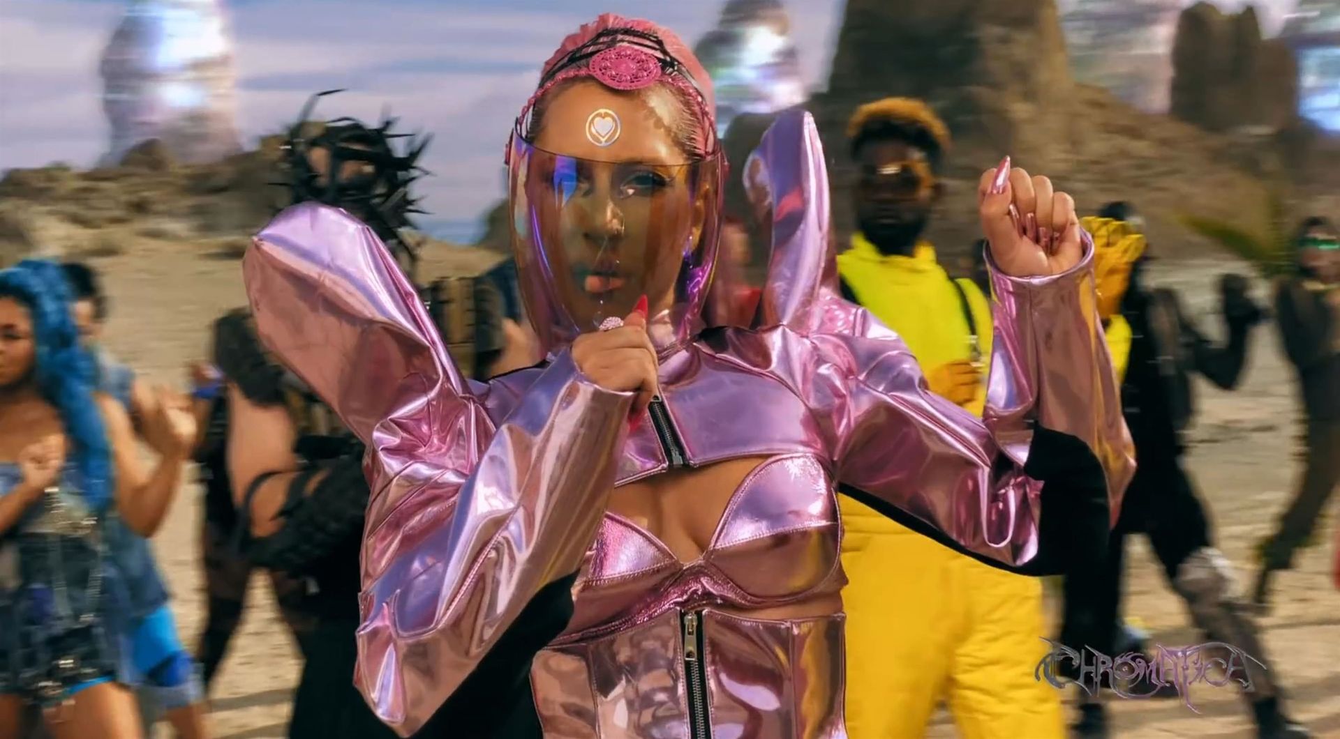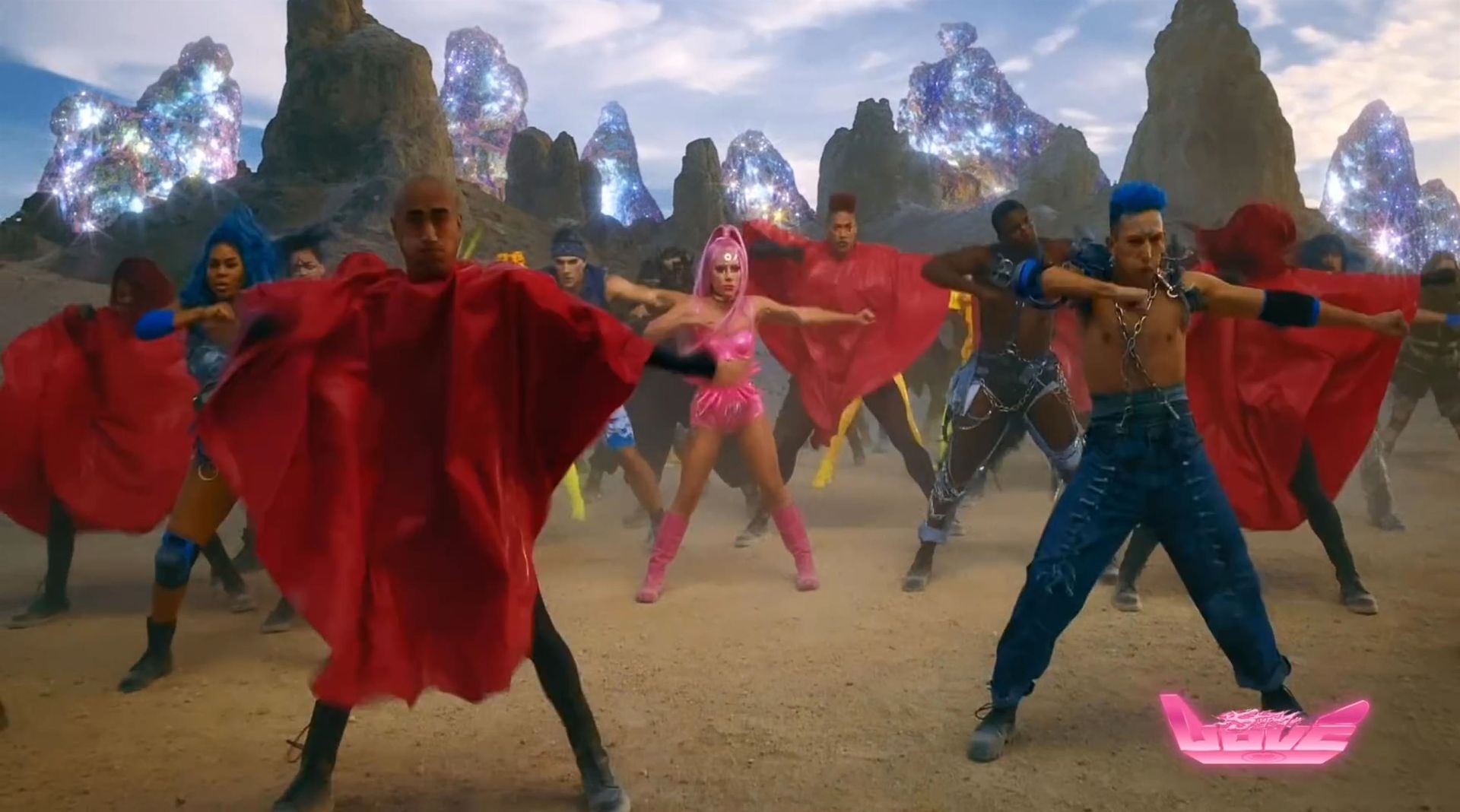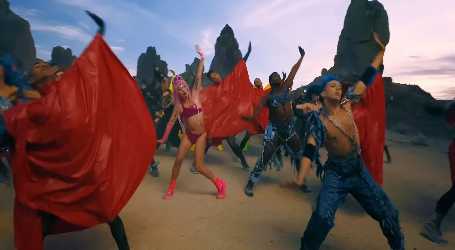 El video sigue a Gaga bailando en un desierto con un tema de otro mundo, con disfraces salvajes y un grupo de bailarines de respaldo mientras intenta unir dos tribus en guerra. Para su primer look, Gaga muestra su increíble figura con un sujetador de látex rosa fuerte y pantalones de cintura alta, con un cinturón de pinchos en la cintura. La actriz de Star Is Born complementó el llamativo disfraz con una larga peluca rosa al estilo Ariana Grande, un collar plateado y tatuajes tribales metálicos. Cuando comienza el ritmo, Gaga con cabello rosa lidera frente a sus bailarines, que también están vestidos completamente de rosa mientras realizan movimientos coreografiados. A medida que la canción avanza hacia el coro, Gaga y compañía cambian de atuendos, con la estrella en otro tono de rosa y una visera completa para los ojos, mientras sus acompañantes visten de negro. Para su tercer atuendo, Gaga se pone un bikini metálico púrpura y zapatos de plataforma, mostrando su figura esbelta.