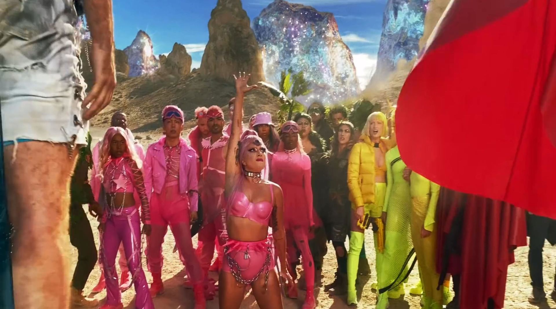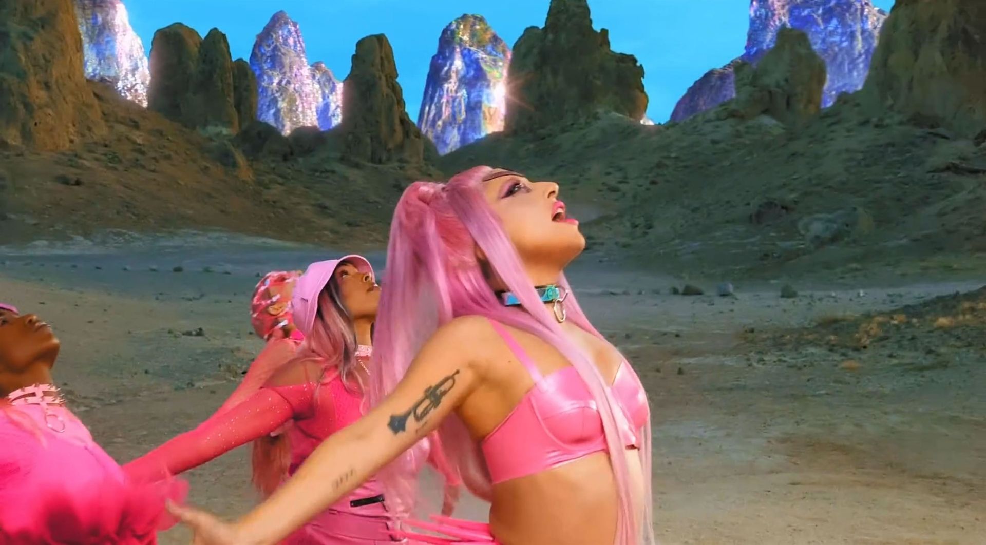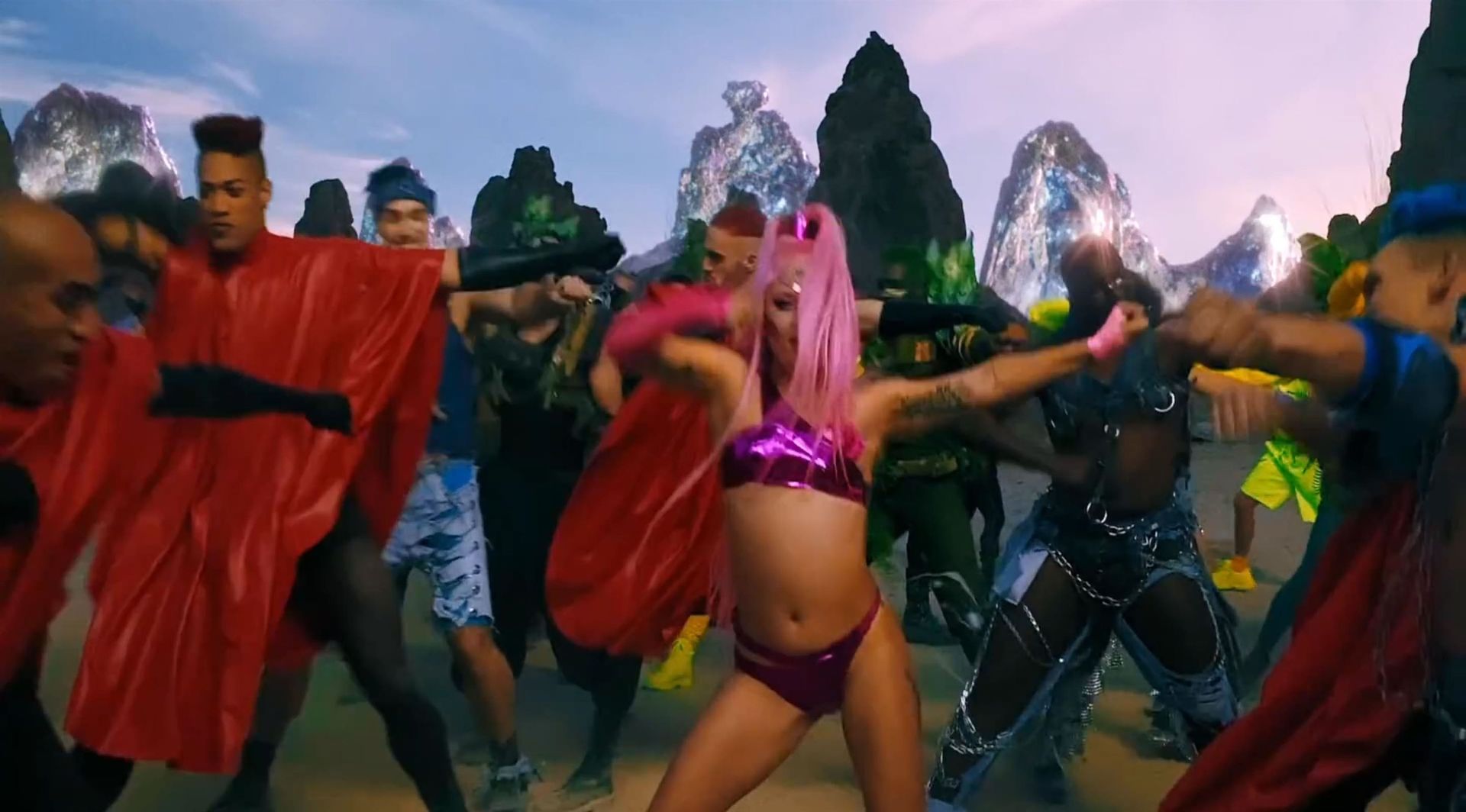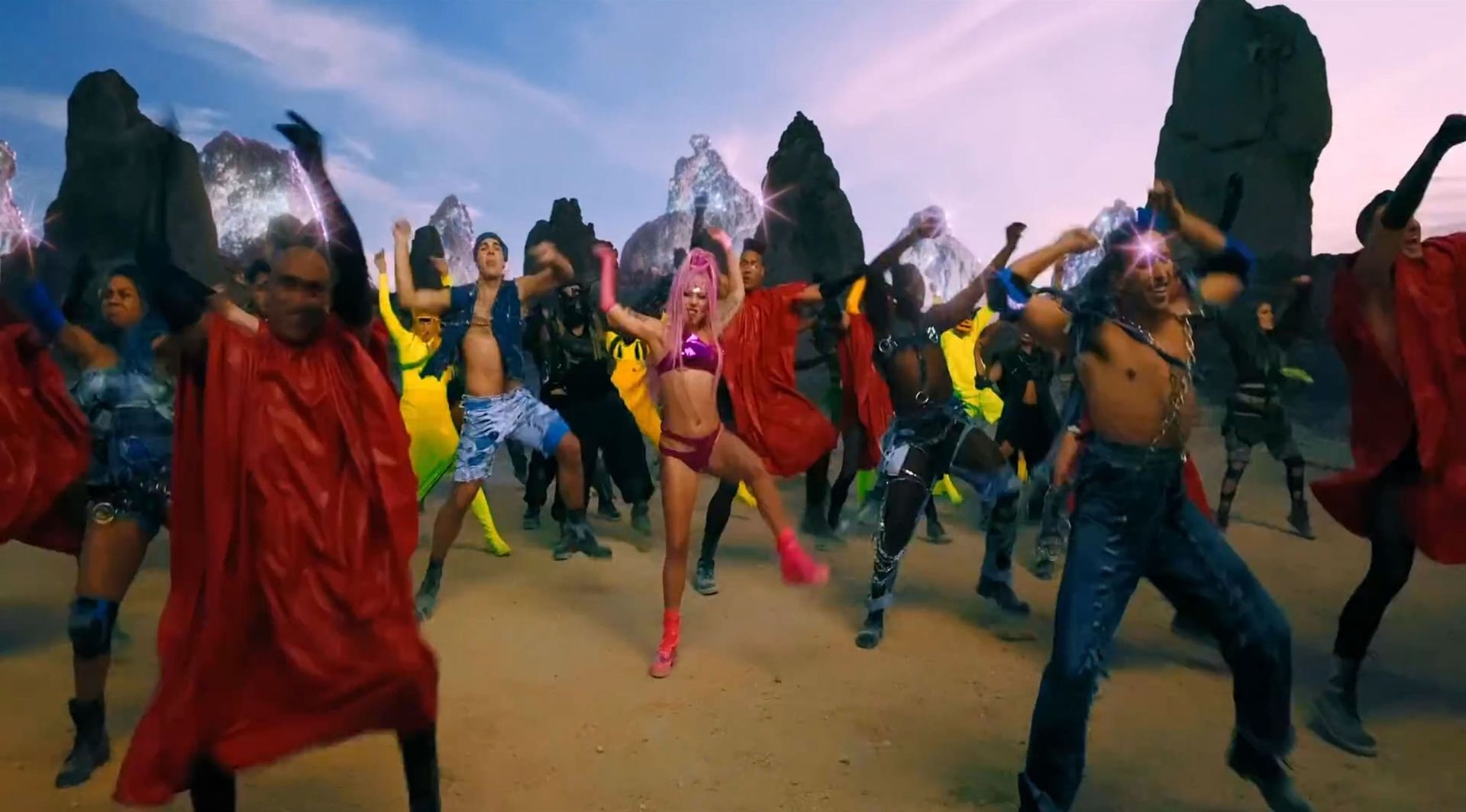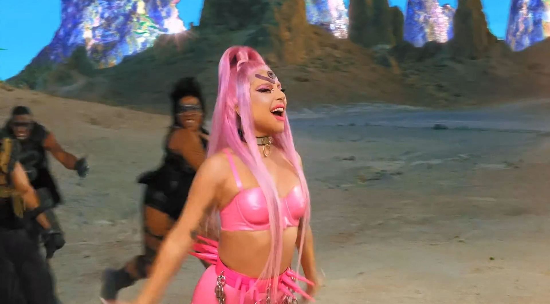 El video sigue a Gaga bailando en un desierto con un tema de otro mundo, con disfraces salvajes y un grupo de bailarines de respaldo mientras intenta unir dos tribus en guerra. Para su primer look, Gaga muestra su increíble figura con un sujetador de látex rosa fuerte y pantalones de cintura alta, con un cinturón de pinchos en la cintura. La actriz de Star Is Born complementó el llamativo disfraz con una larga peluca rosa al estilo Ariana Grande, un collar plateado y tatuajes tribales metálicos. Cuando comienza el ritmo, Gaga con cabello rosa lidera frente a sus bailarines, que también están vestidos completamente de rosa mientras realizan movimientos coreografiados. A medida que la canción avanza hacia el coro, Gaga y compañía cambian de atuendos, con la estrella en otro tono de rosa y una visera completa para los ojos, mientras sus acompañantes visten de negro. Para su tercer atuendo, Gaga se pone un bikini metálico púrpura y zapatos de plataforma, mostrando su figura esbelta.