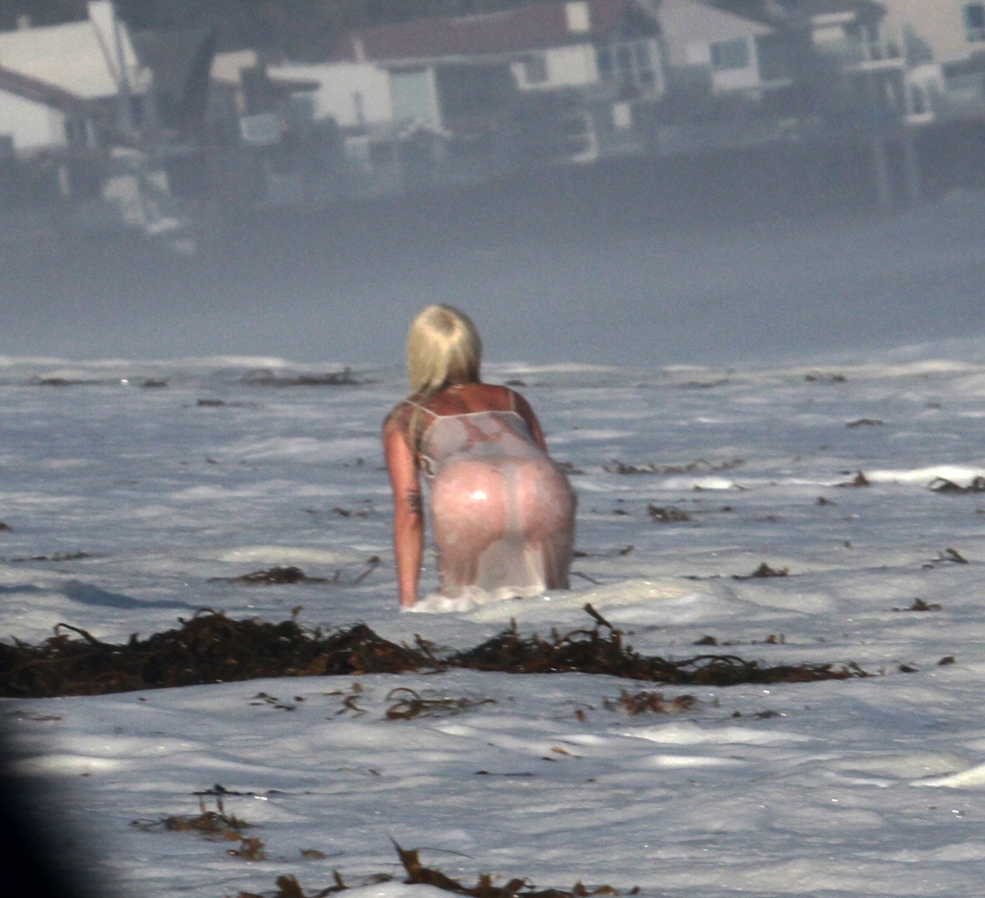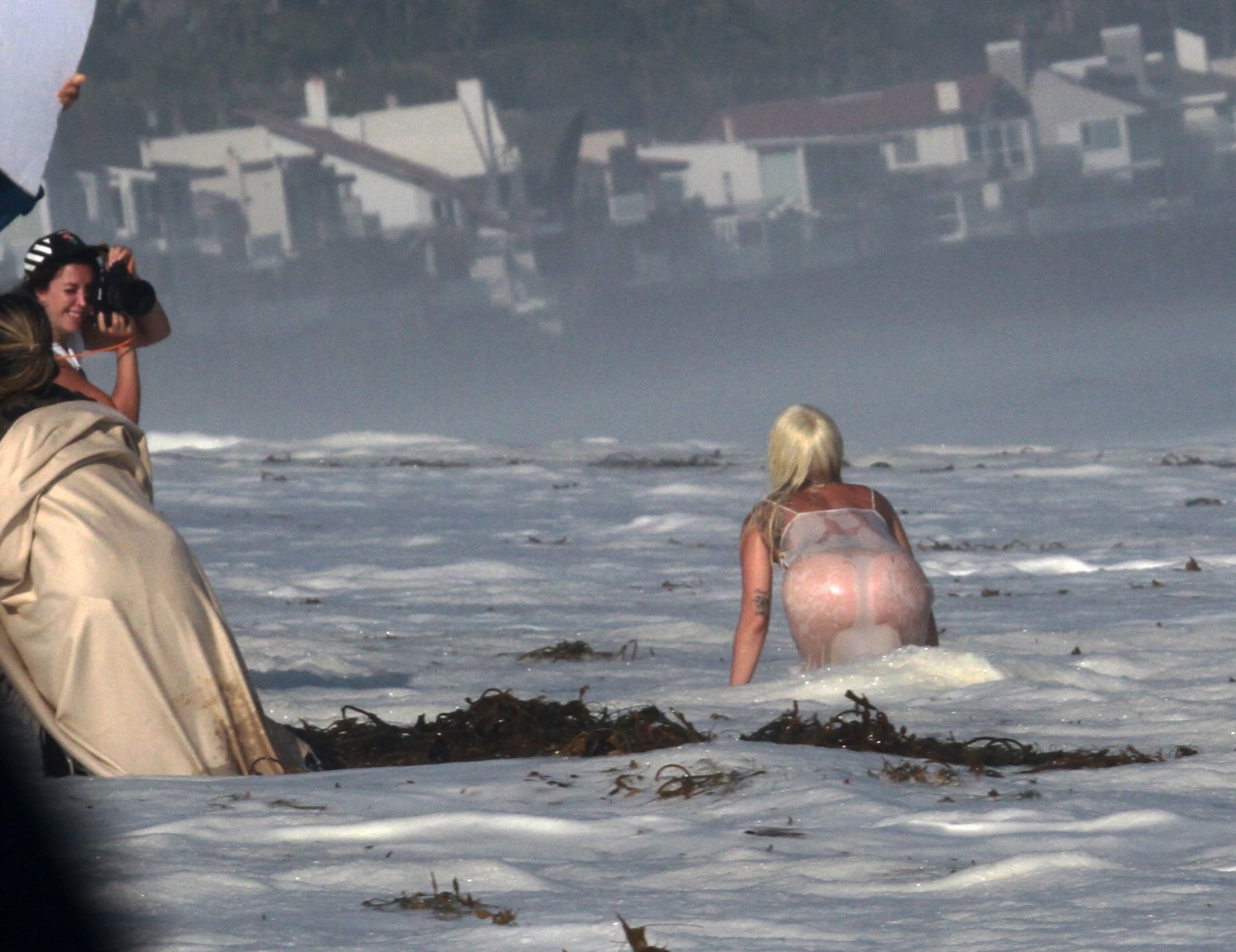 Lady Gaga fue vista sin camiseta usando un bikini y lencería tanga para una sesión de fotos espontánea en la playa de Malibu, California, 25/07/2018. Los fotógrafos y el equipo salvajes se empaparon con las grandes olas. La famosa cantante estadounidense de 32 años ha perdido peso significativamente.