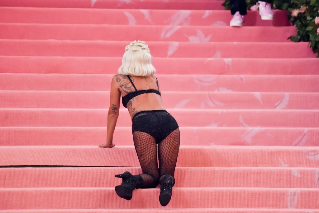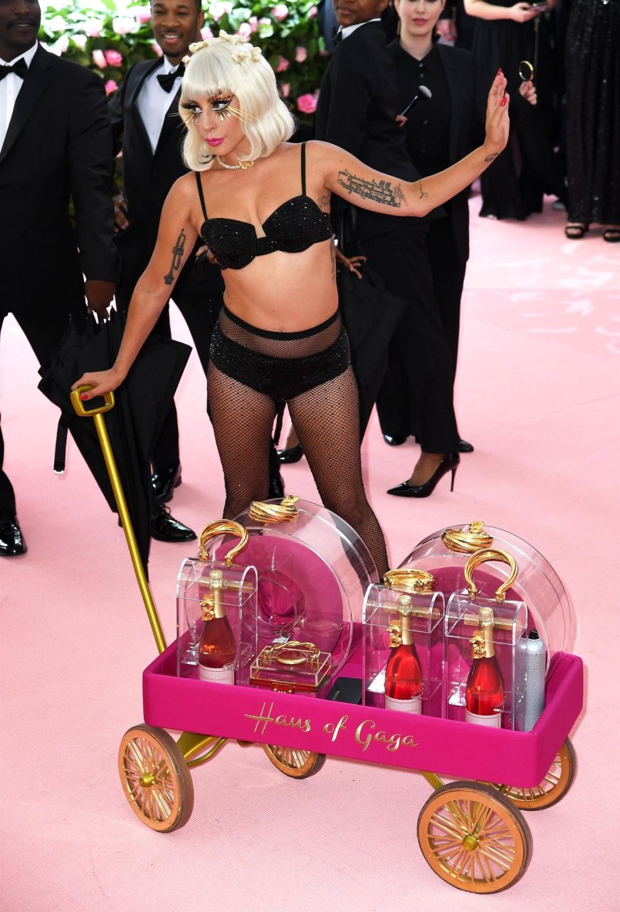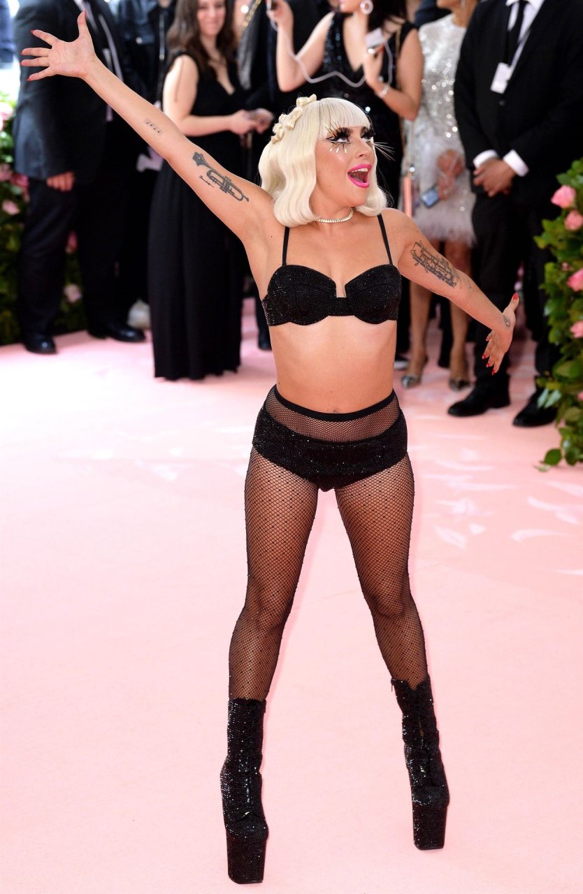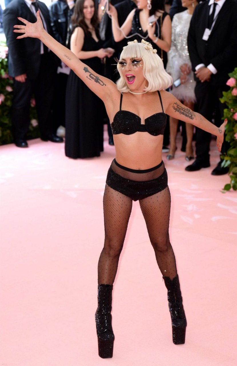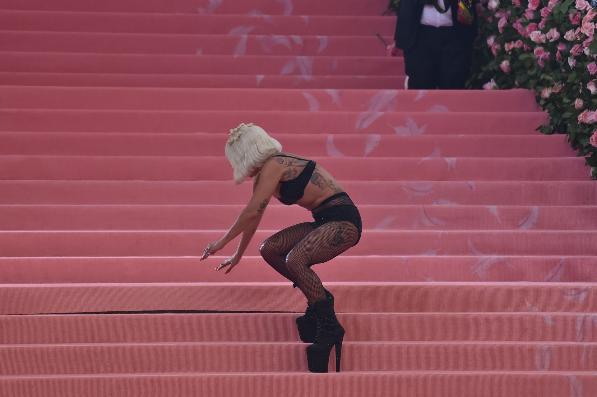 Lady Gaga llega a la alfombra rosa para la Met Gala 2019 en Nueva York, 05/06/2019. Gaga roba el espectáculo con una actuación magistral, quitándose sus vestidos hasta quedar en ropa interior.
