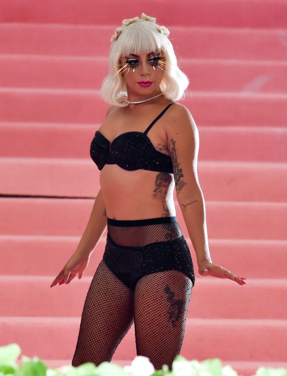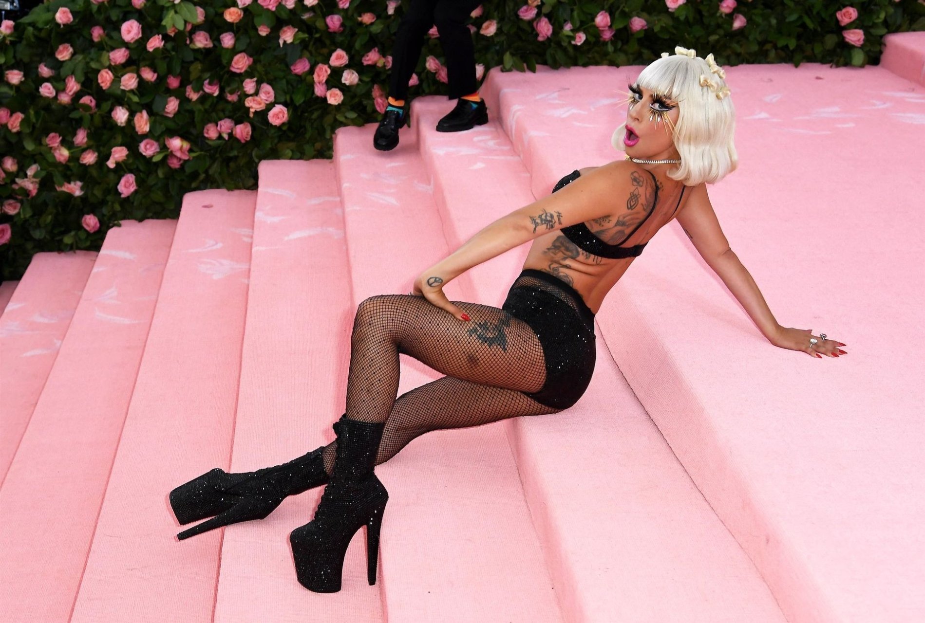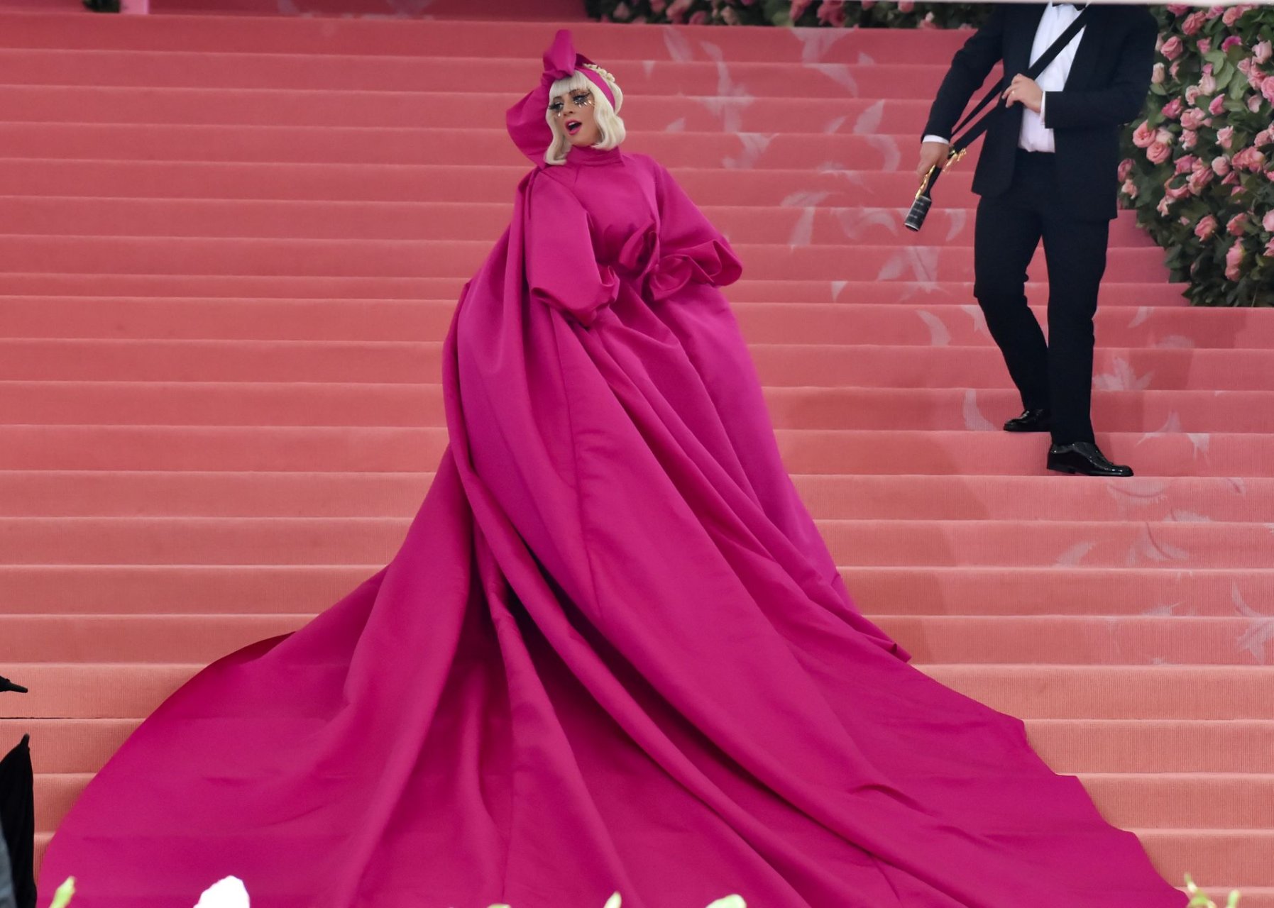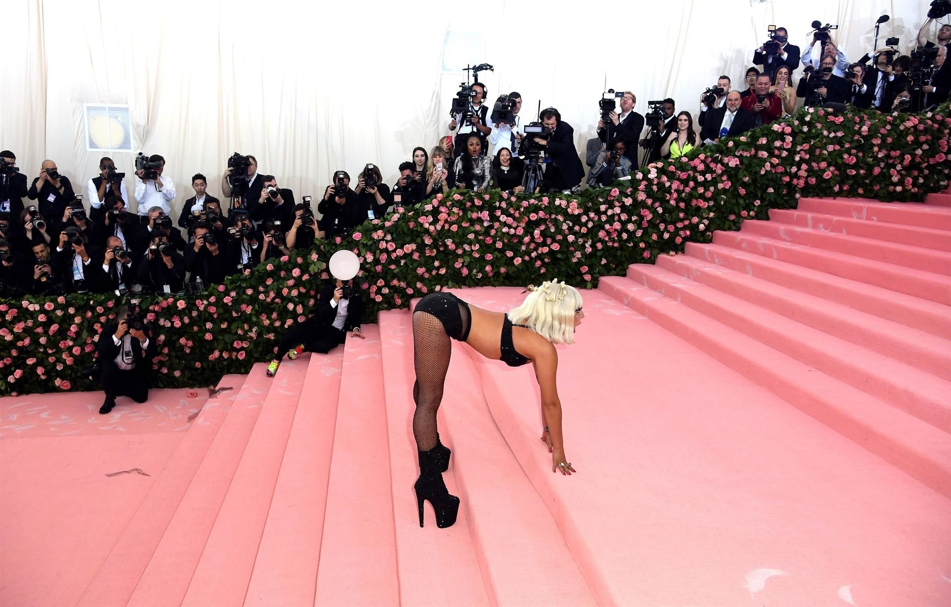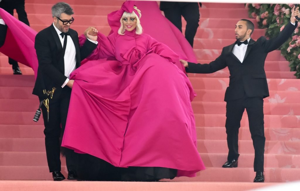 Lady Gaga llega a la alfombra rosa para la Met Gala 2019 en Nueva York, 05/06/2019. Gaga roba el espectáculo con una actuación magistral, quitándose sus vestidos hasta quedar en ropa interior.