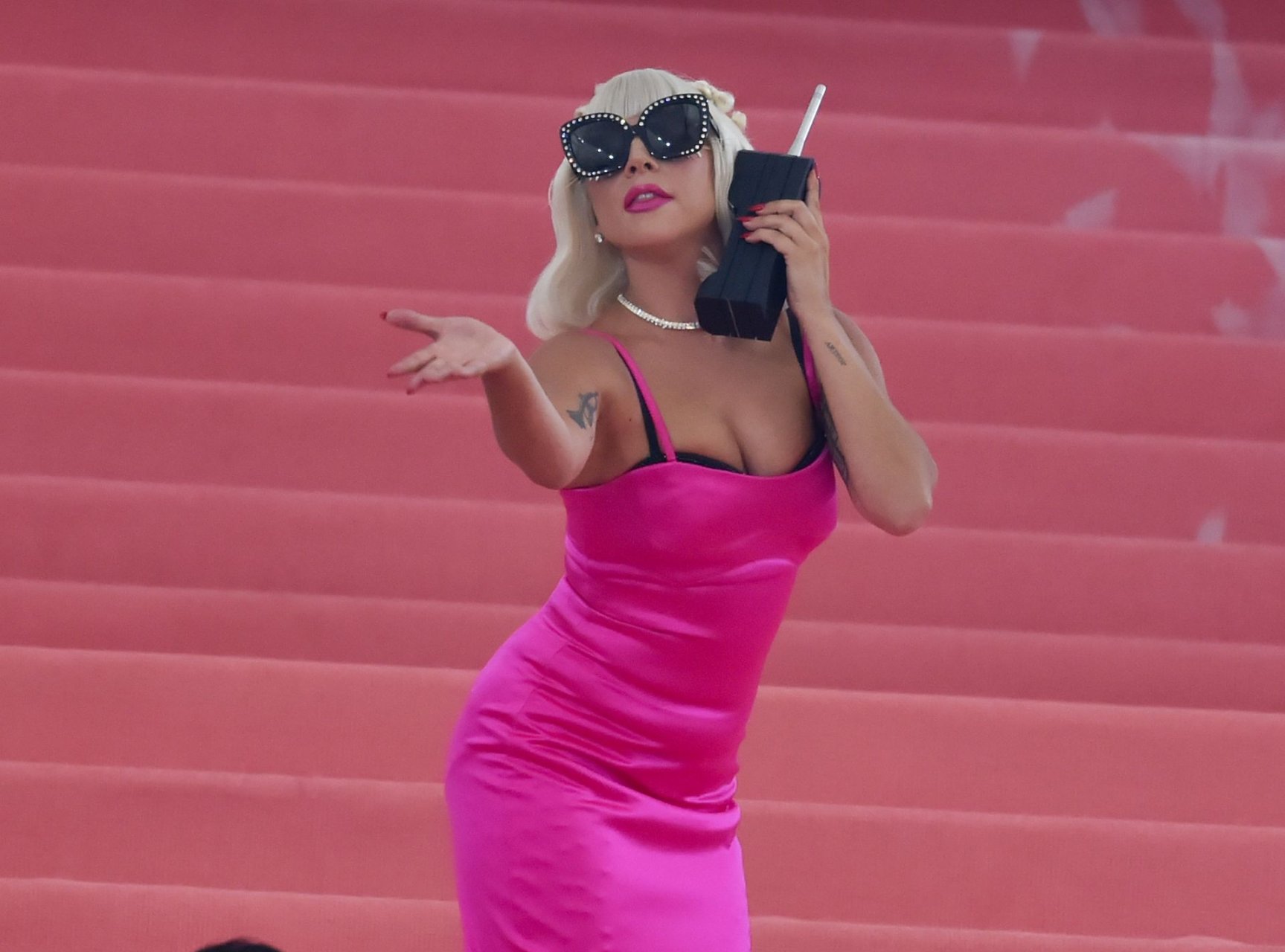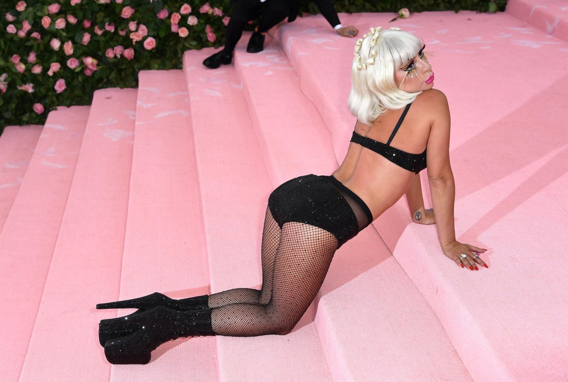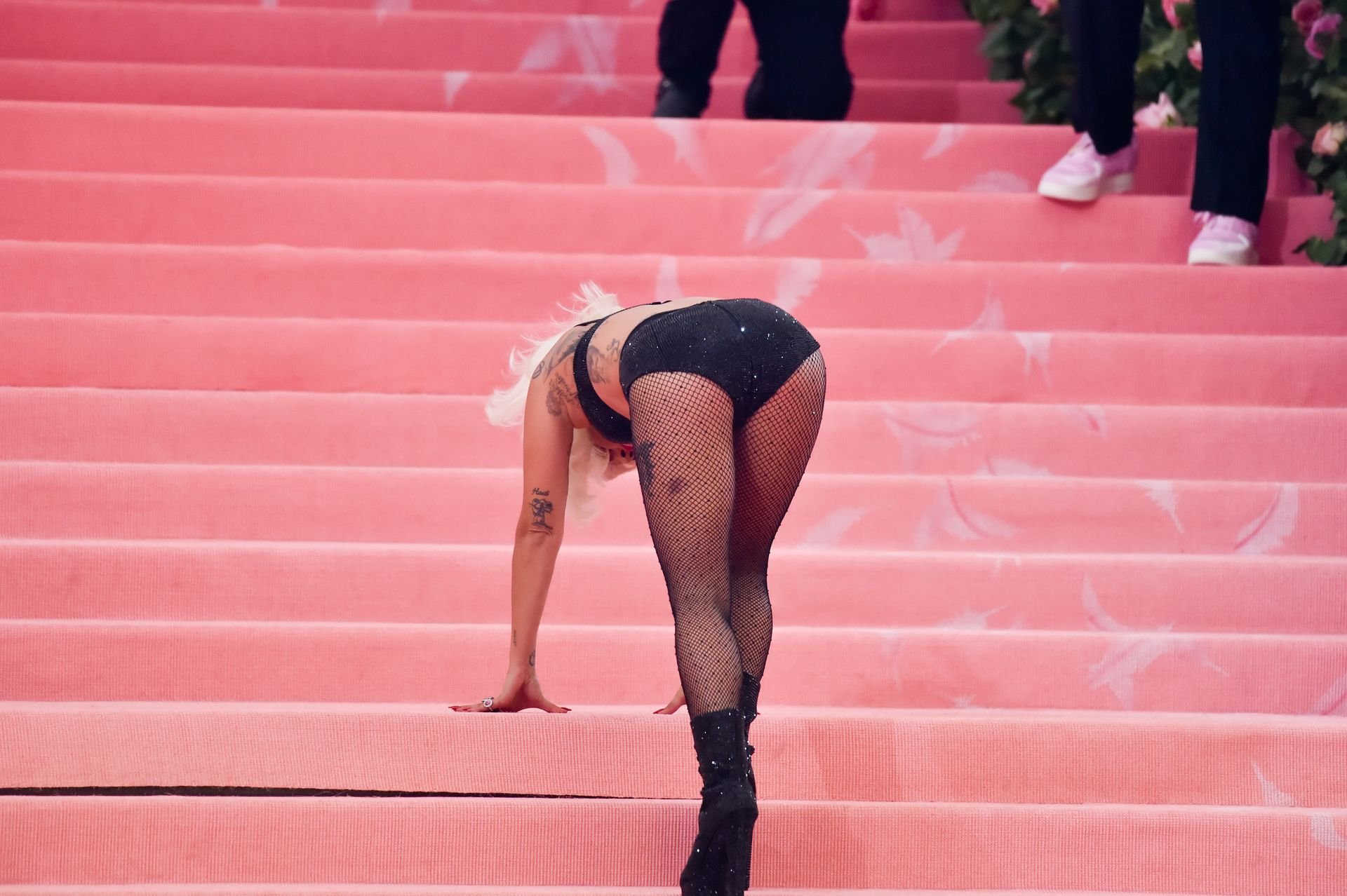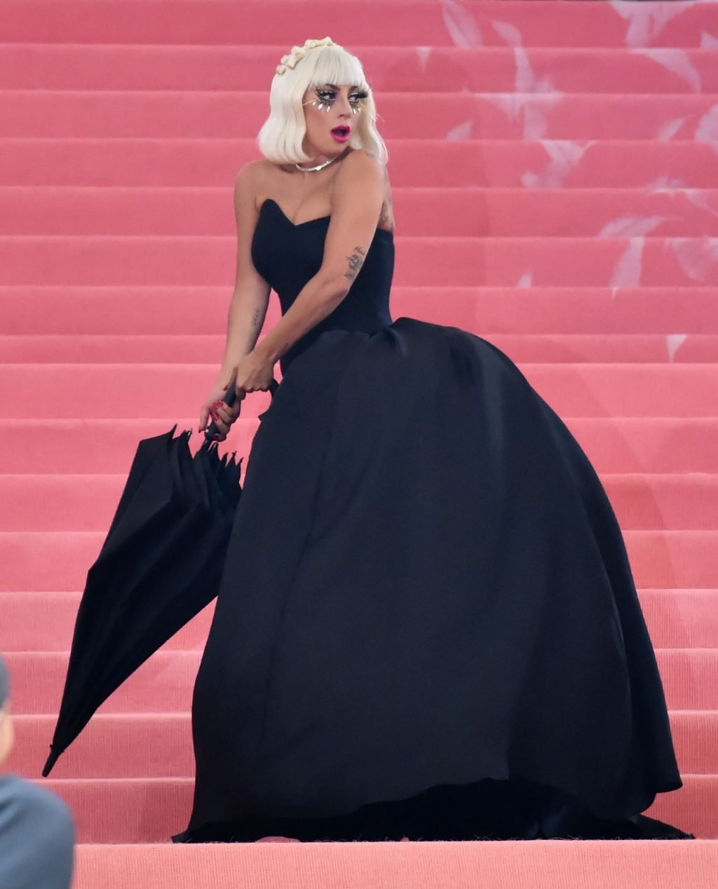 Lady Gaga llega a la alfombra rosa para la Met Gala 2019 en Nueva York, 05/06/2019. Gaga roba el espectáculo con una actuación magistral, quitándose sus vestidos hasta quedar en ropa interior.