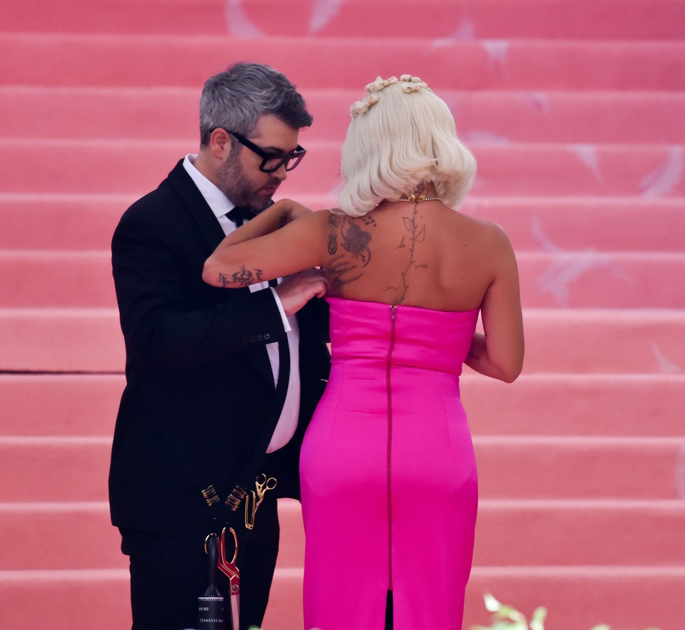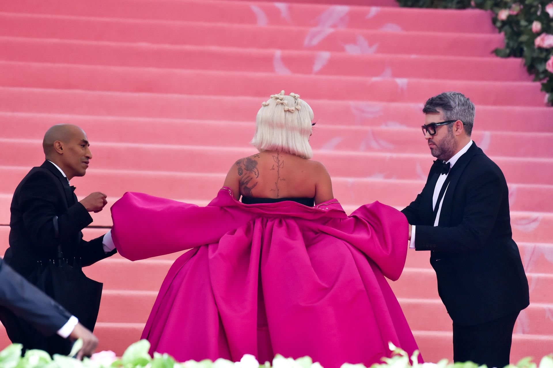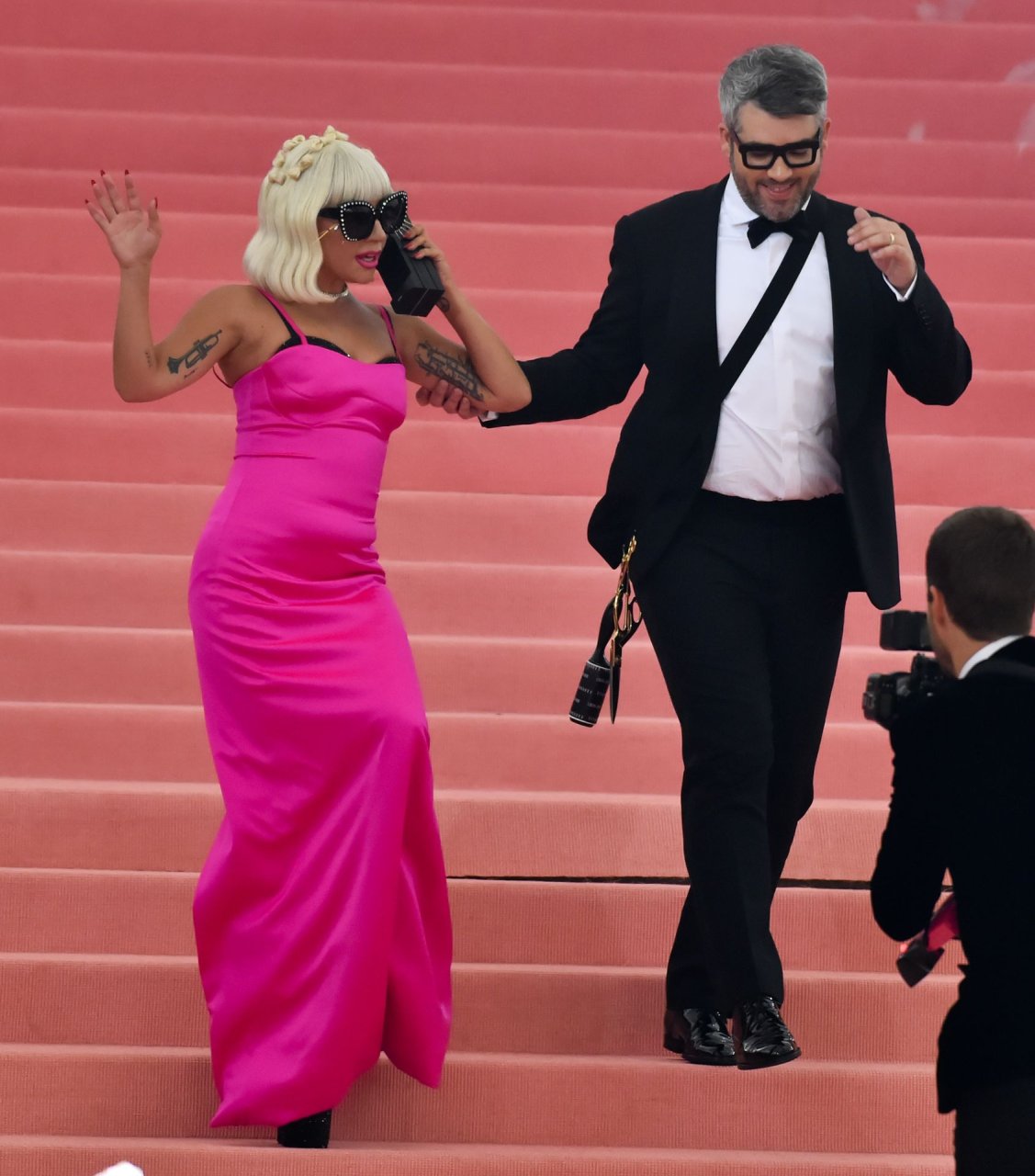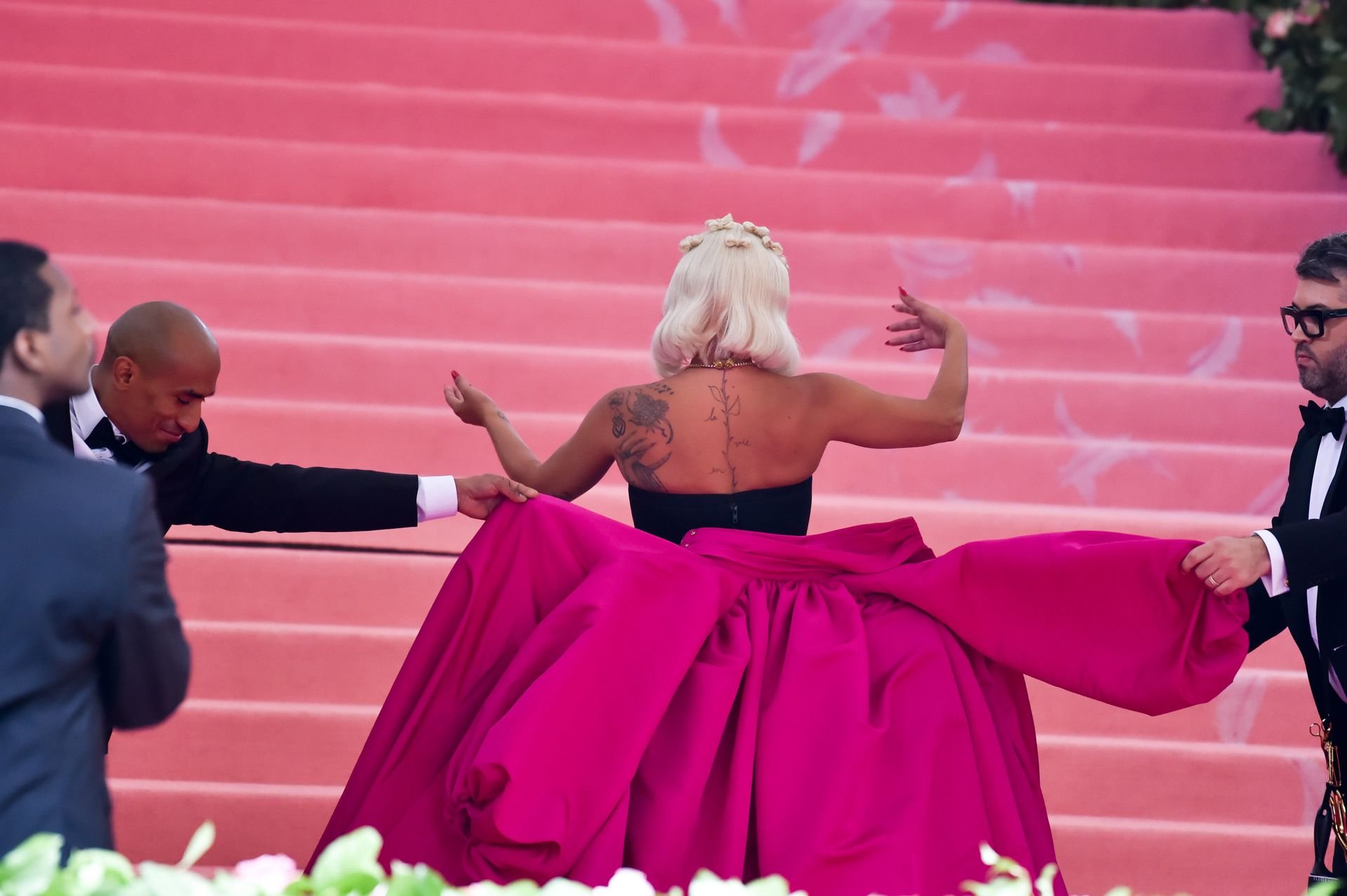 Lady Gaga llega a la alfombra rosa para la Met Gala 2019 en Nueva York, 05/06/2019. Gaga roba el espectáculo con una actuación magistral, quitándose sus vestidos hasta quedar en ropa interior.