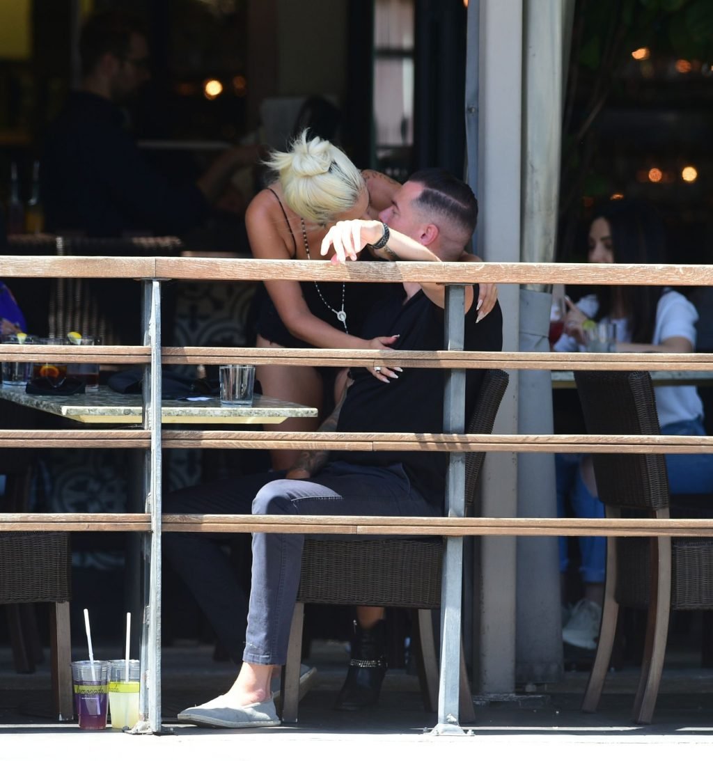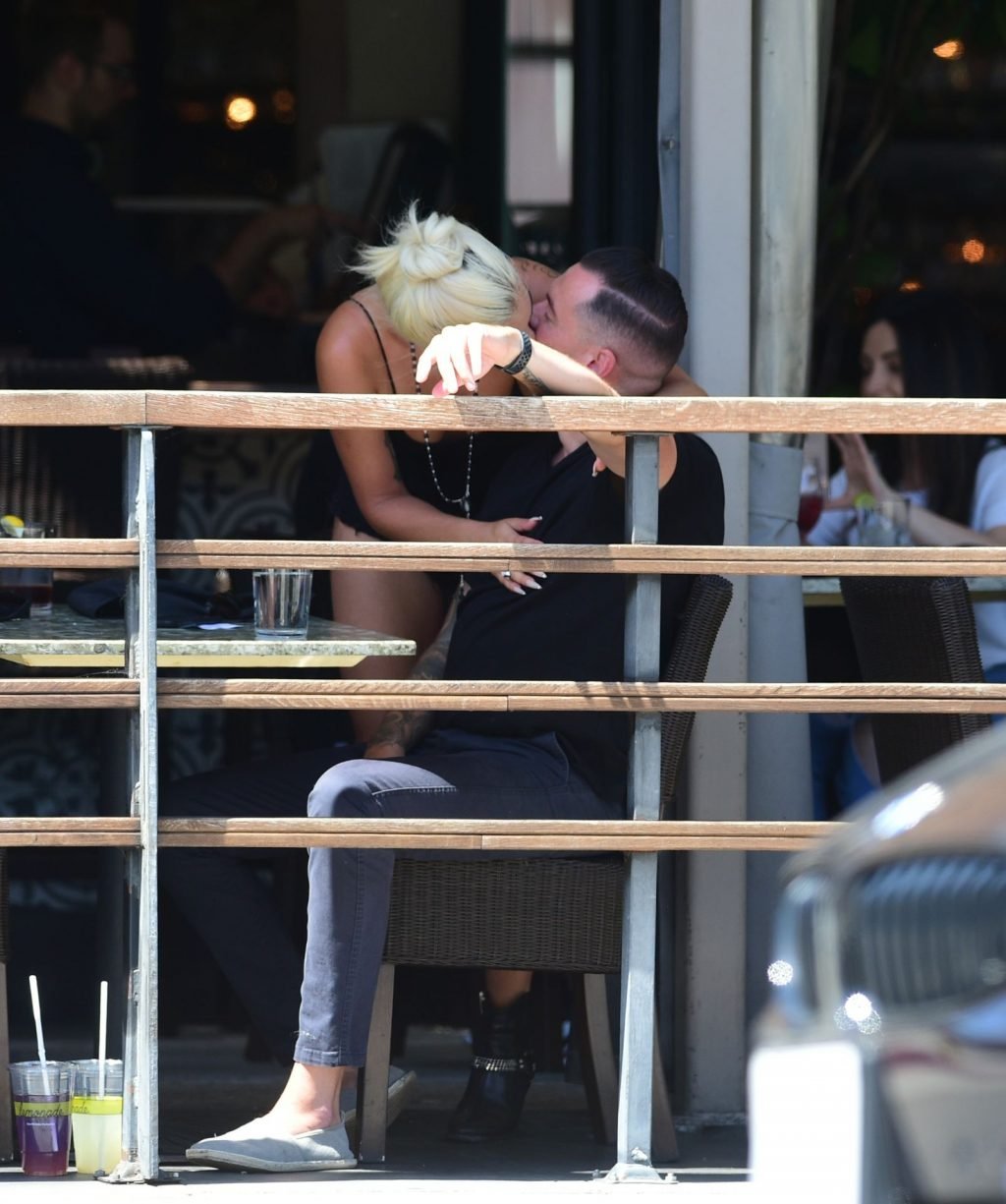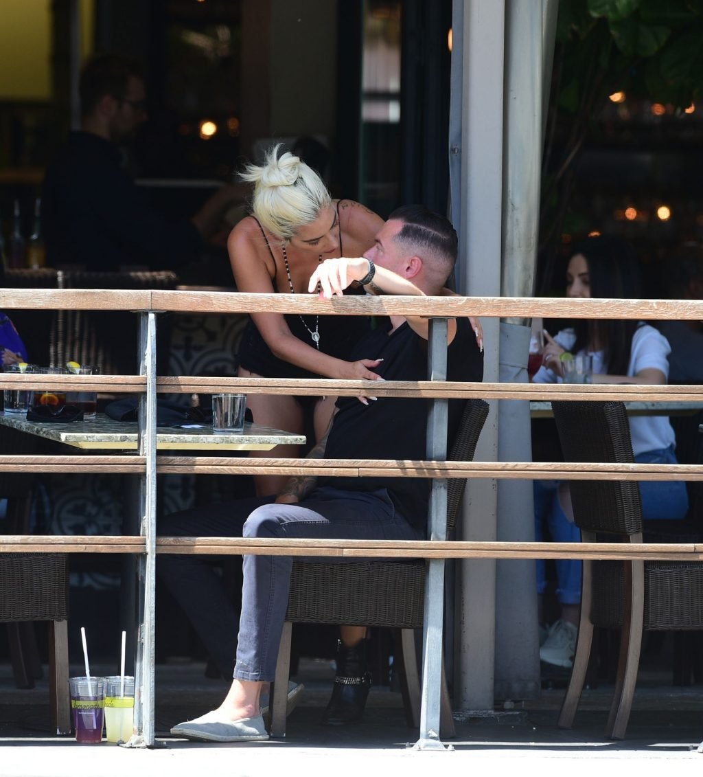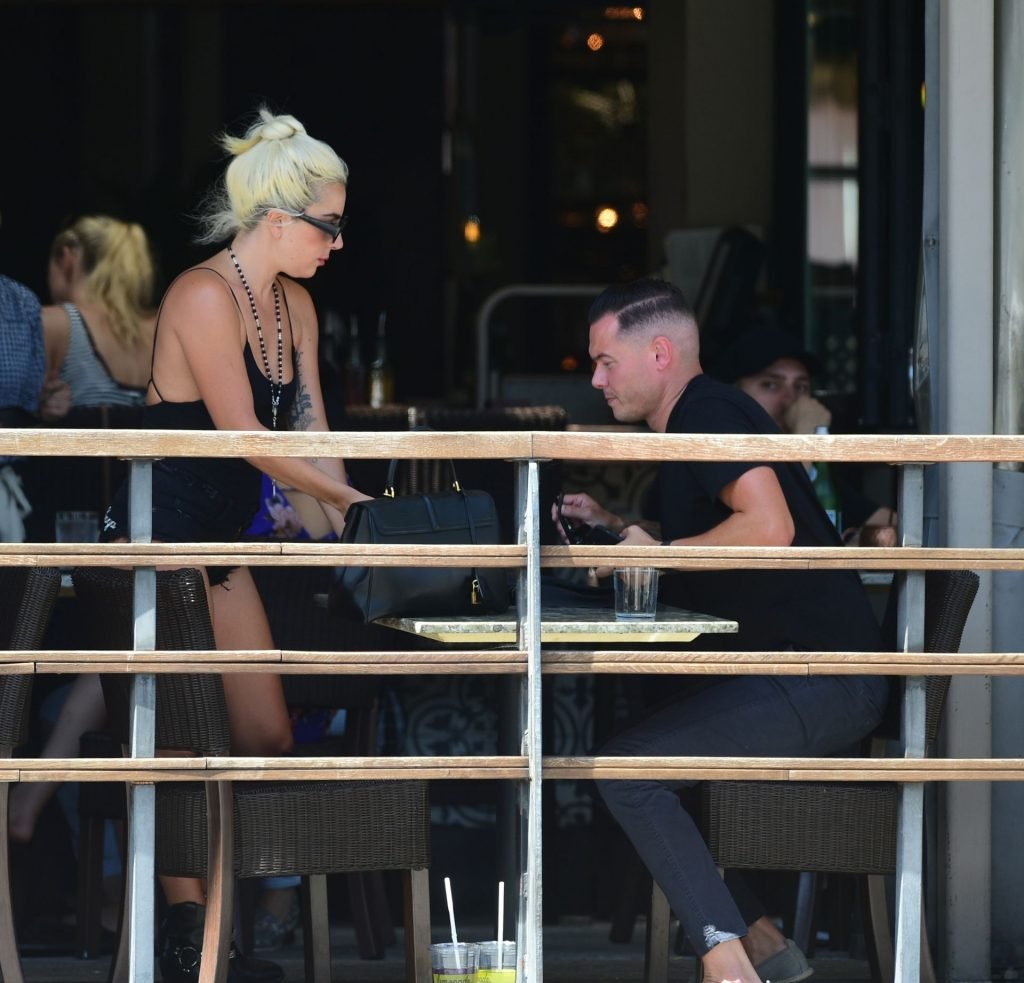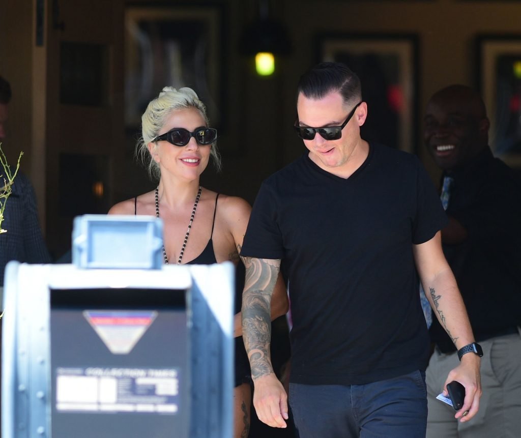 Lady Gaga muestra afecto público con el ejecutivo de la industria musical, Dan Horton, en un restaurante de Los Ángeles, 28/07/2019.