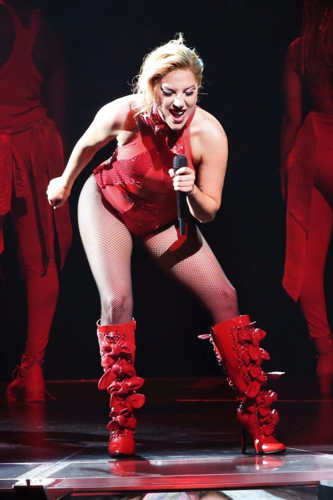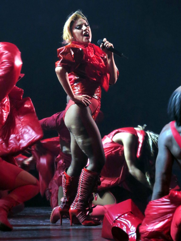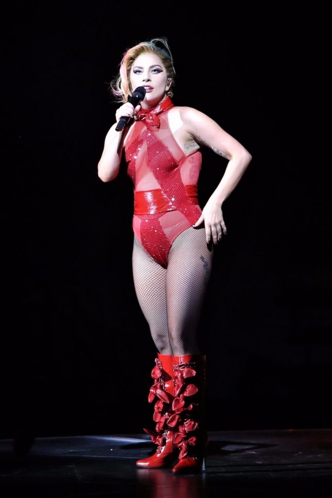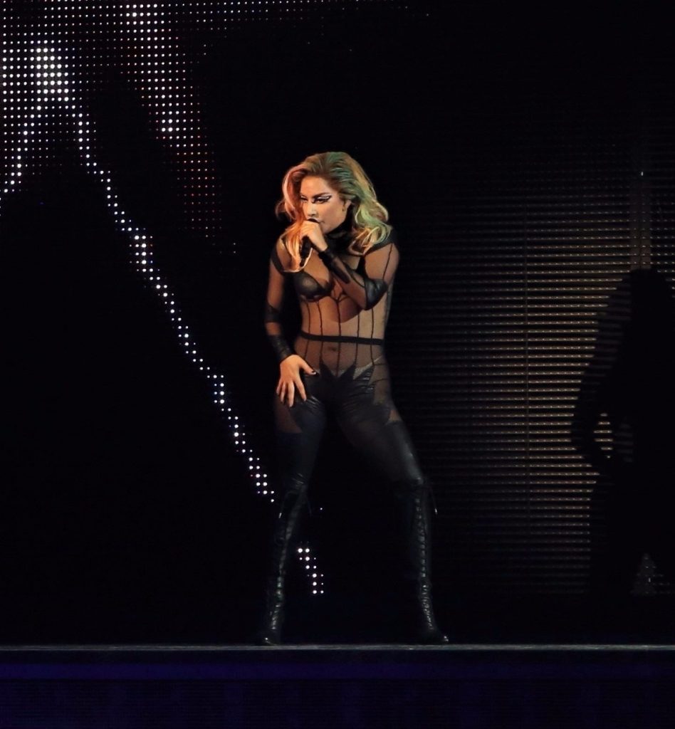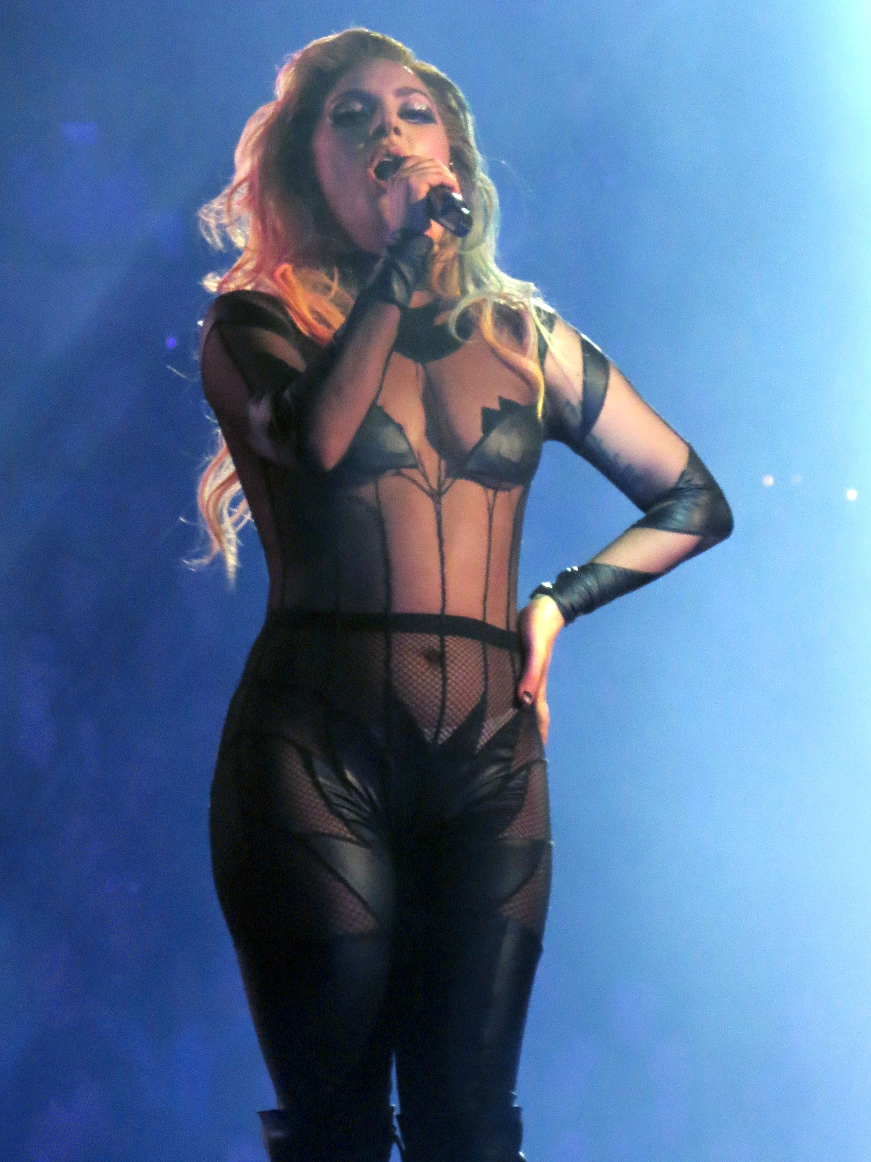 Mirándola, no puedo evitar preguntarme cómo le iría a Gaga usando una falda hasta la rodilla y un cuello de tortuga en el escenario.