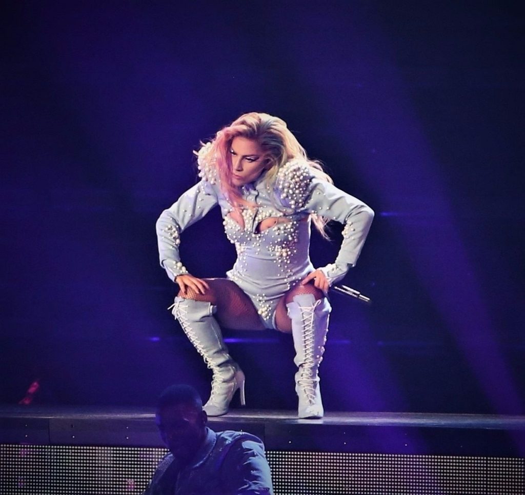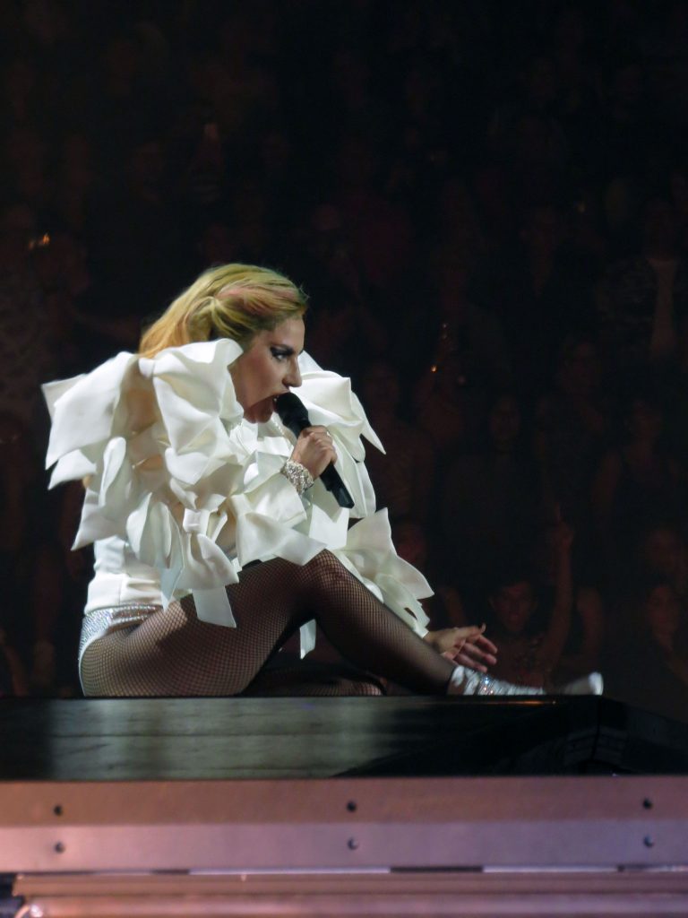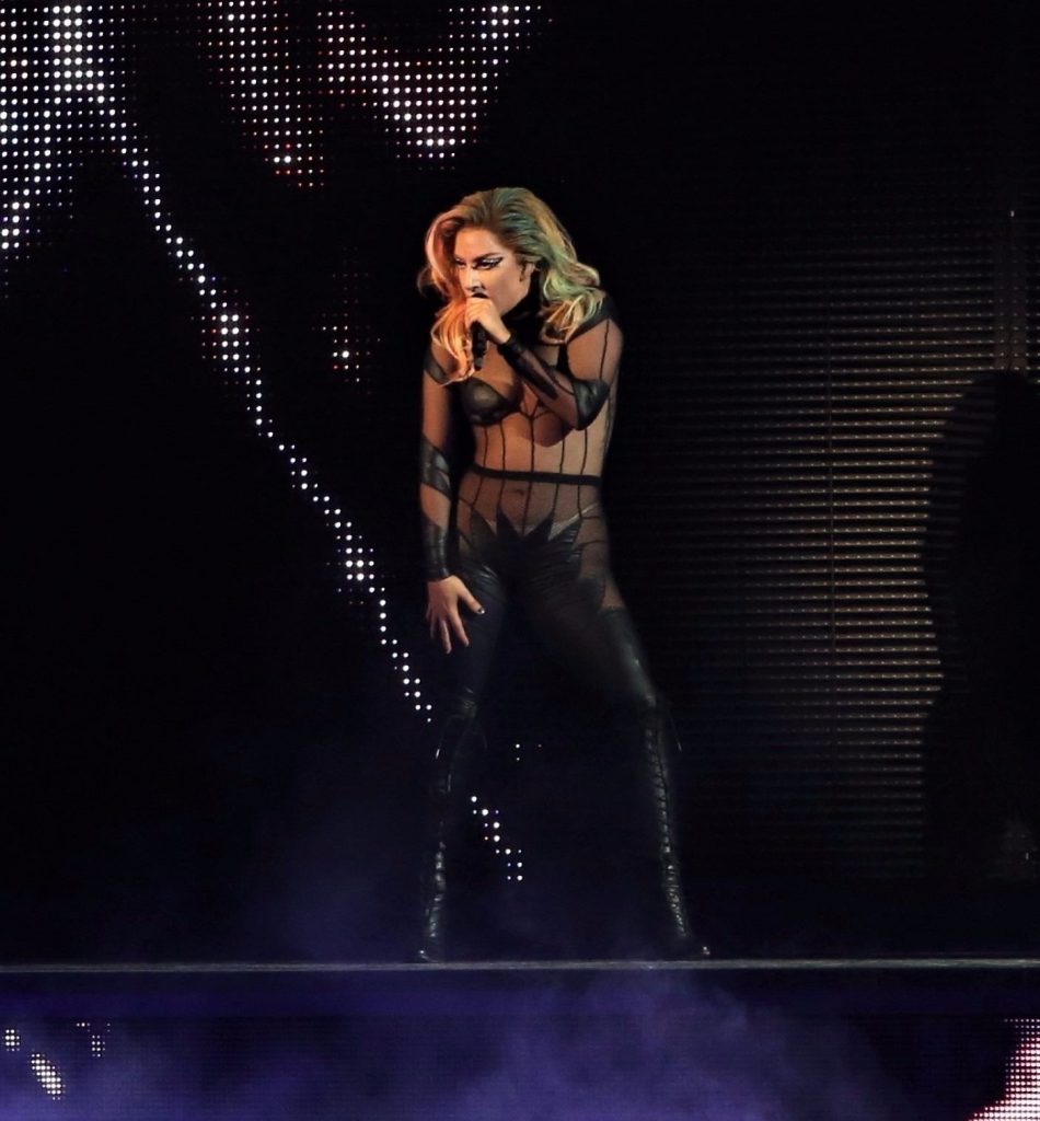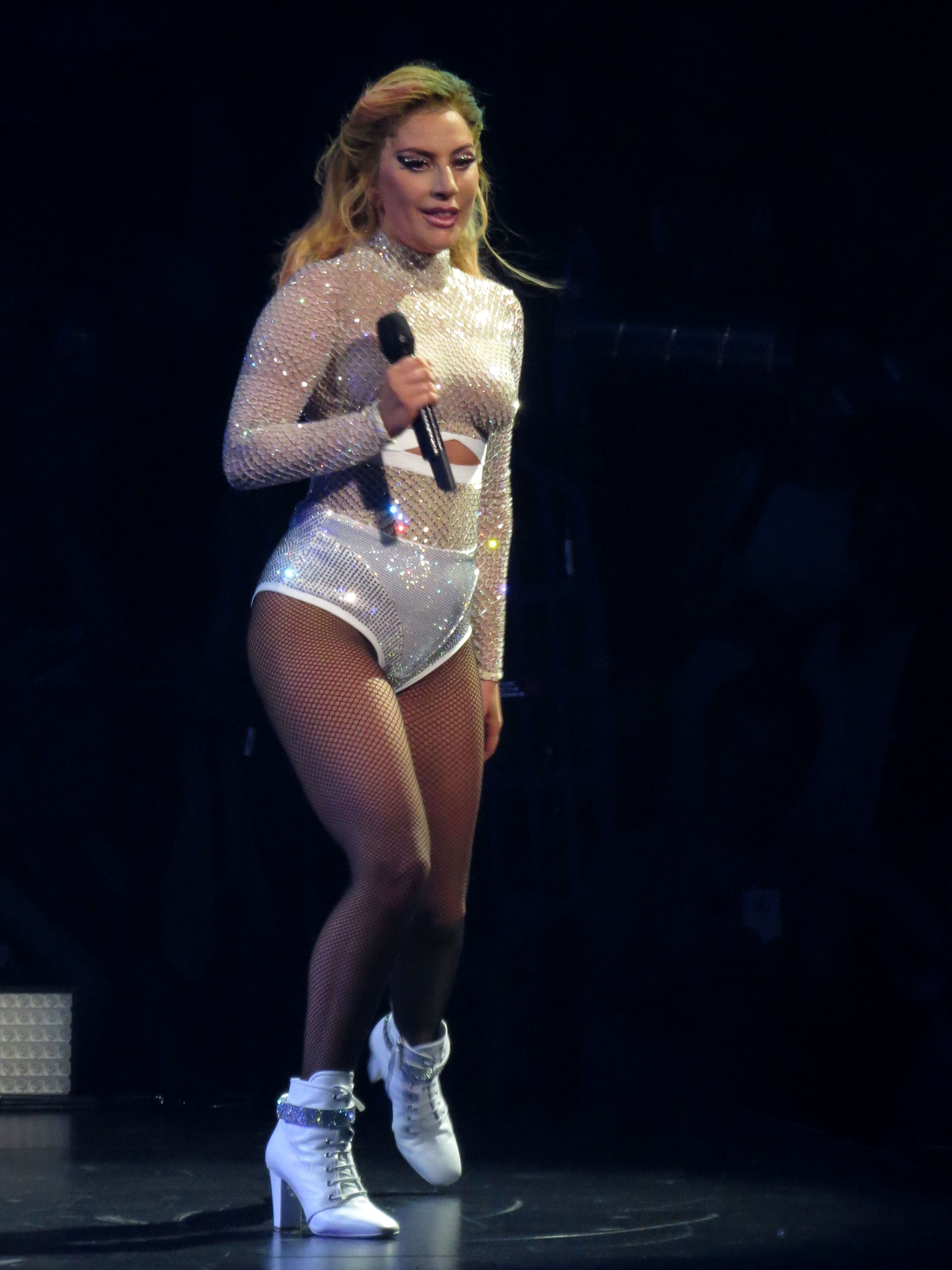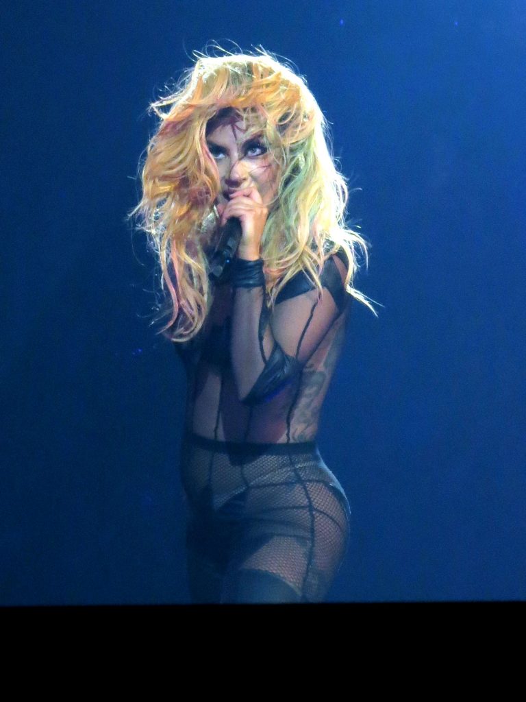 Mirándola, no puedo evitar preguntarme cómo le iría a Gaga usando una falda hasta la rodilla y un cuello de tortuga en el escenario.