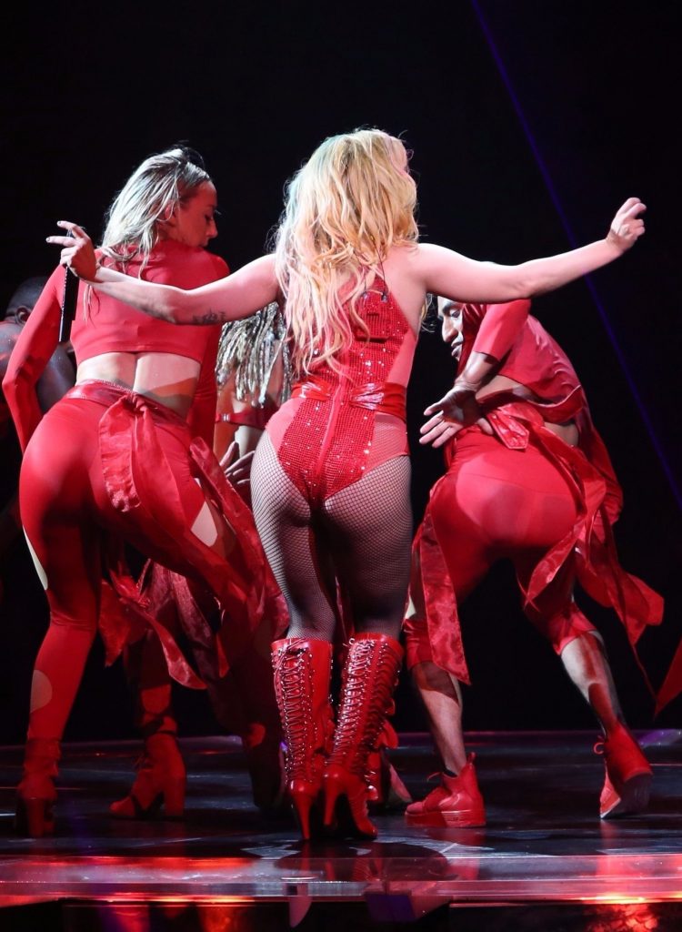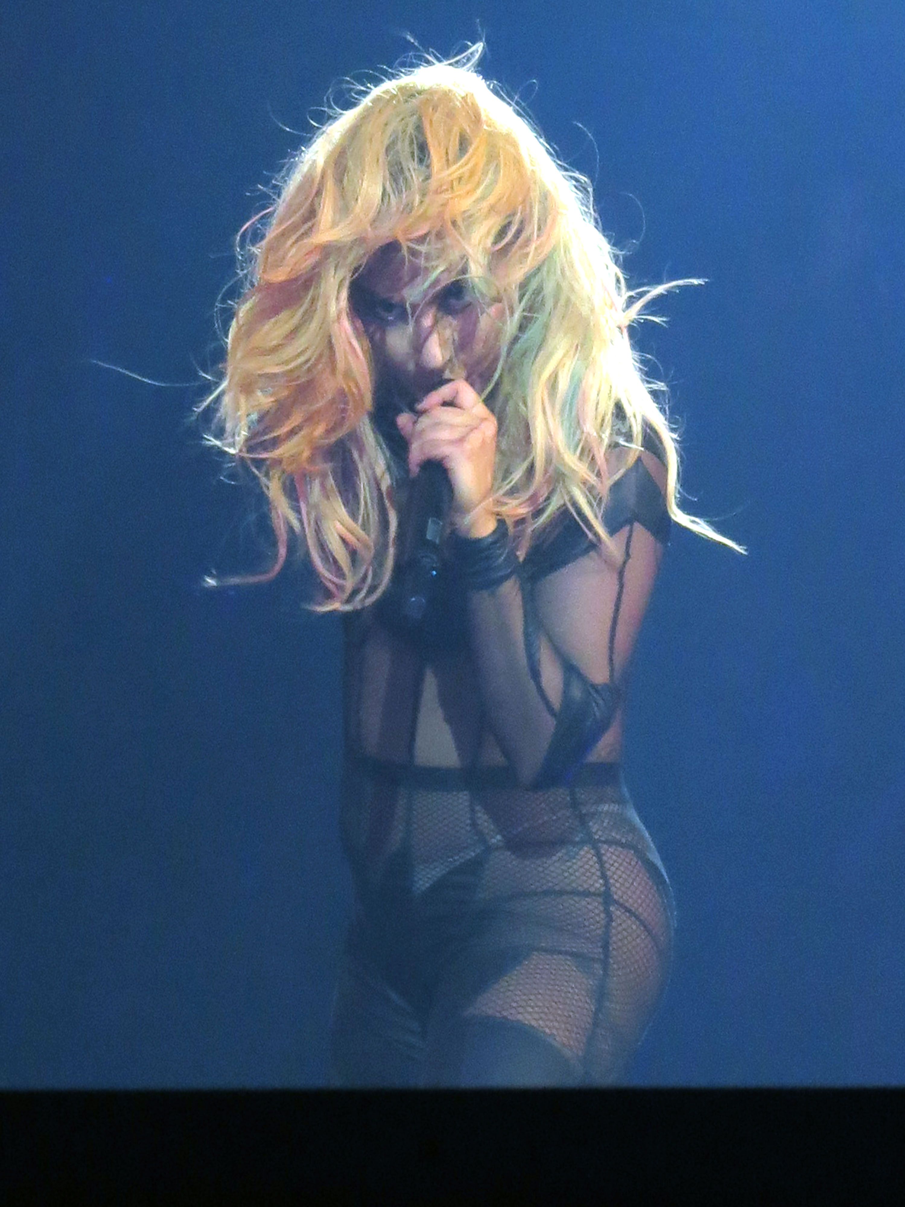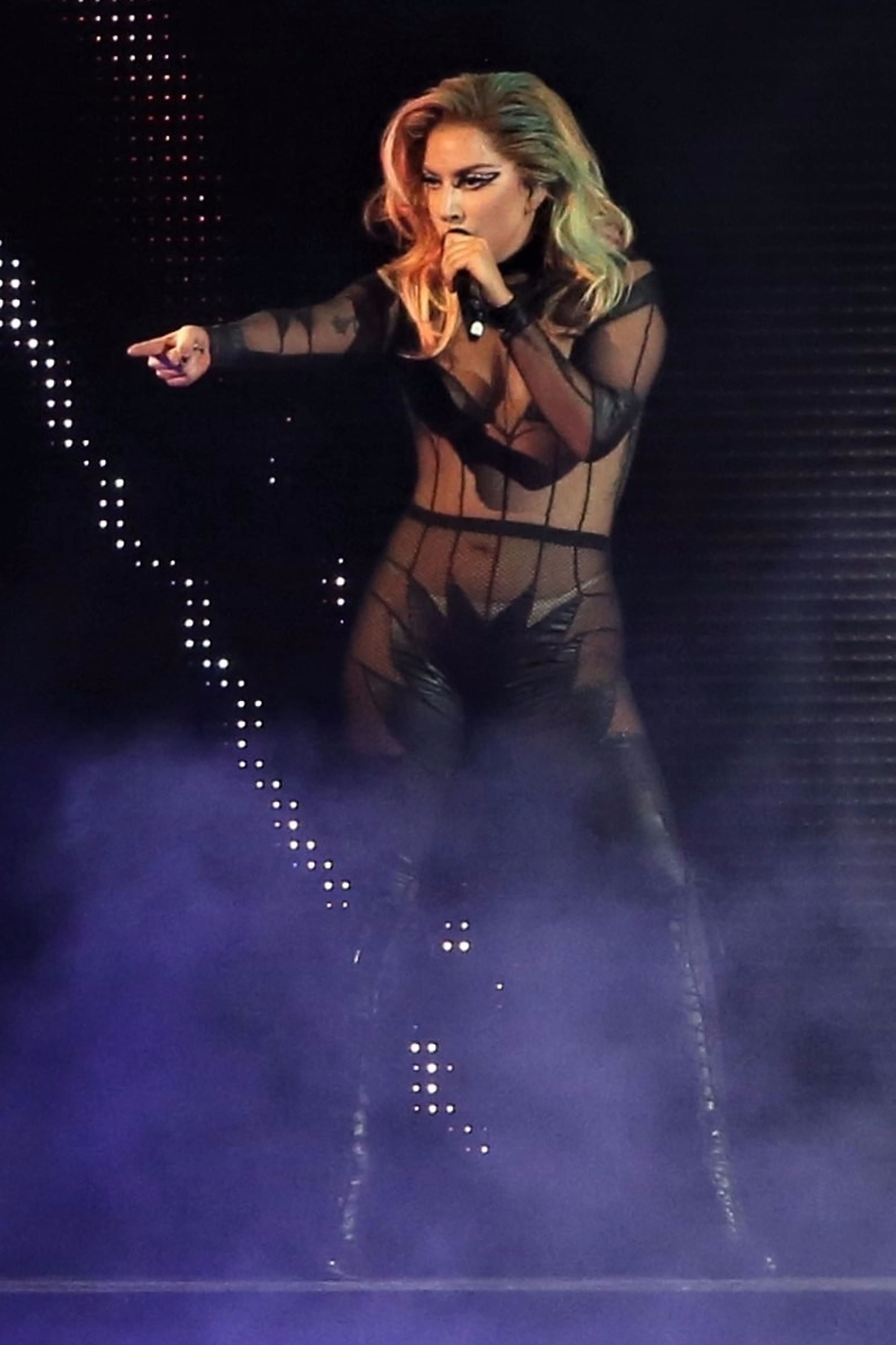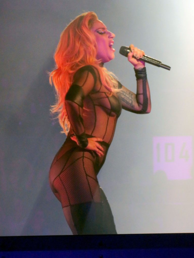 Mirándola, no puedo evitar preguntarme cómo le iría a Gaga usando una falda hasta la rodilla y un cuello de tortuga en el escenario.