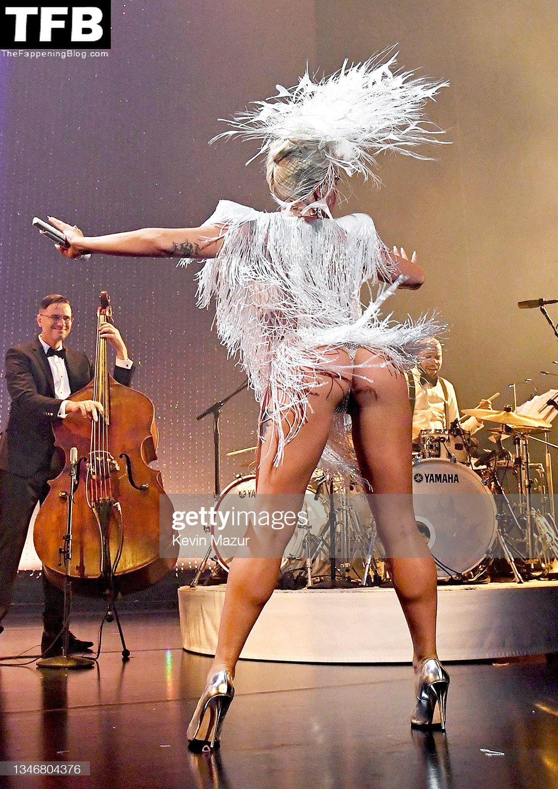 Lady Gaga muestra su sexy trasero al público vistiendo atuendos reveladores mientras actúa en Las Vegas, 14/10/2021.