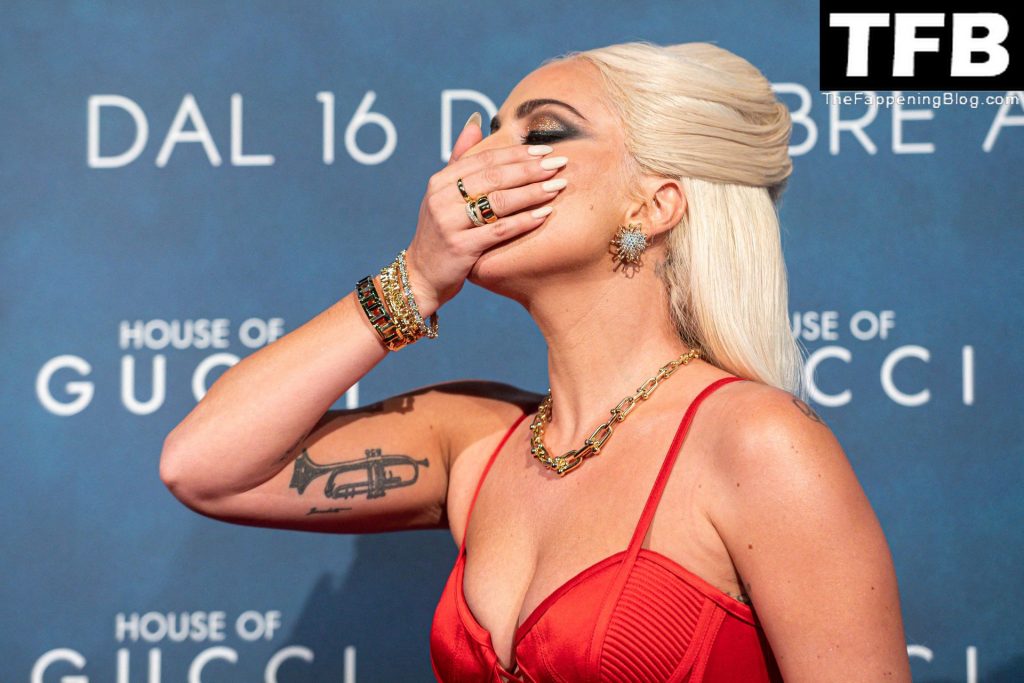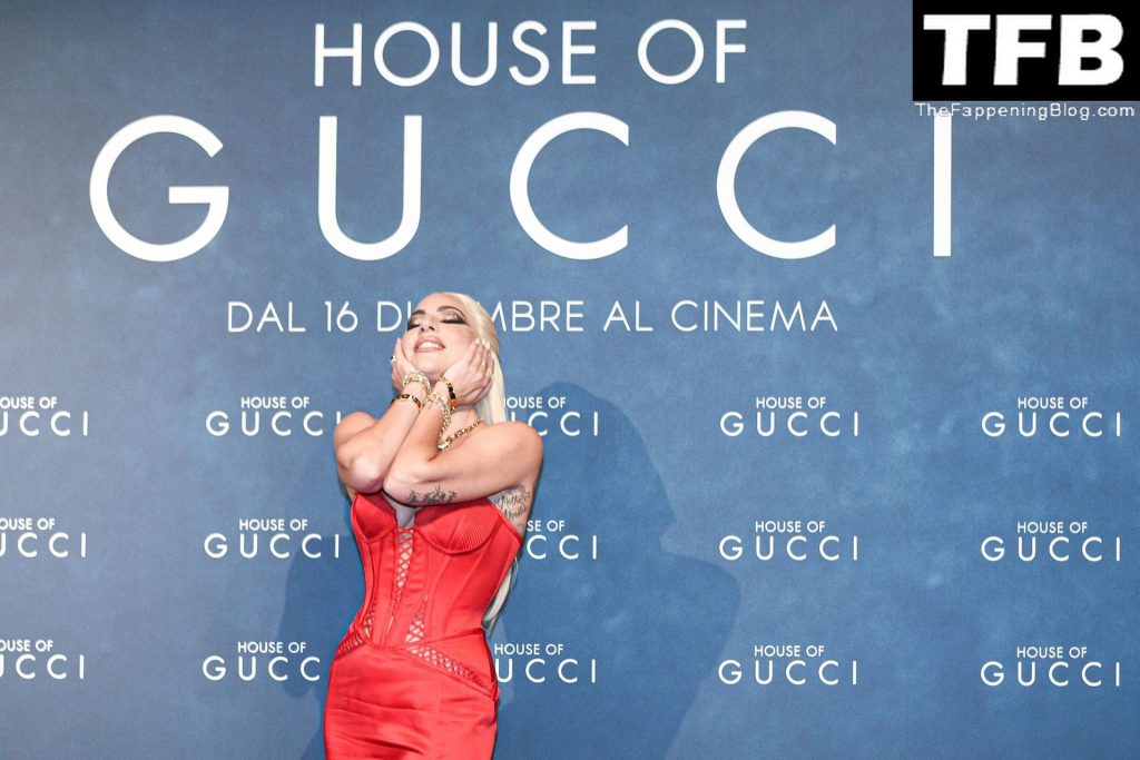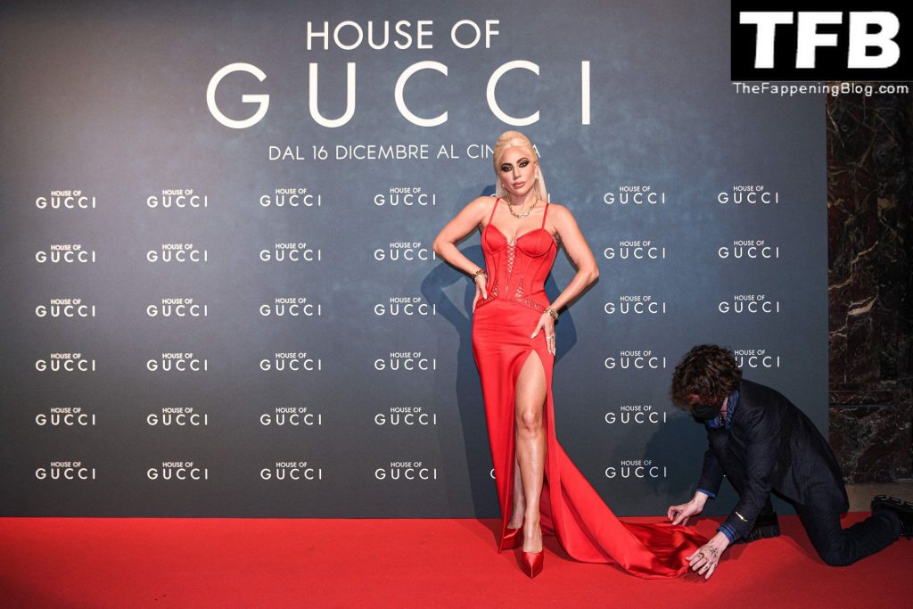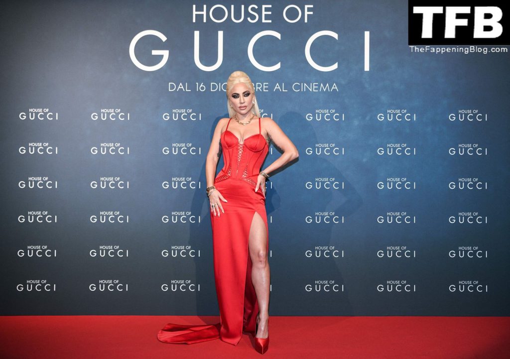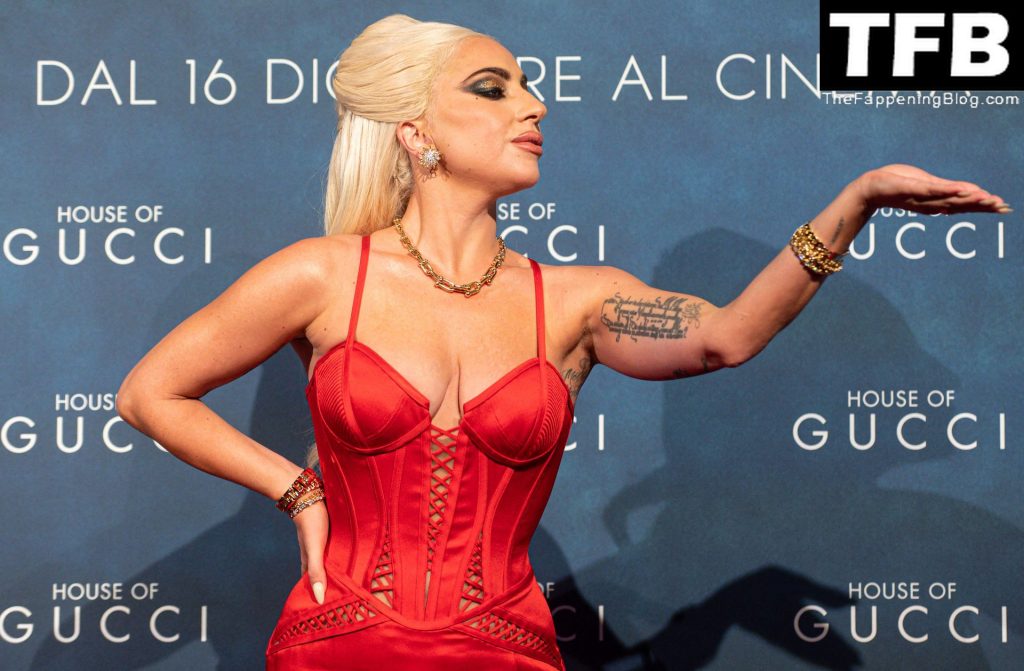 La cantante y actriz estadounidense Lady Gaga posa con un hermoso vestido en la alfombra roja antes del estreno de la película ‘House of Gucci’ en Milán, Italia, 13/11/2021.