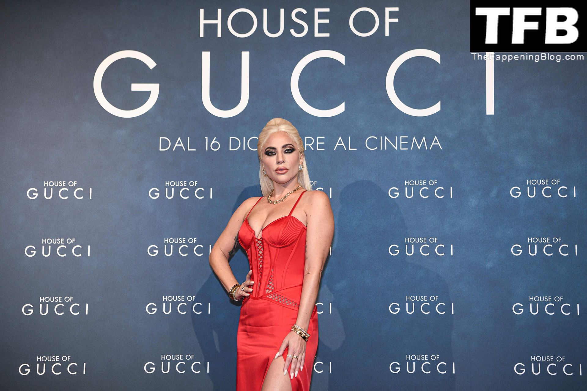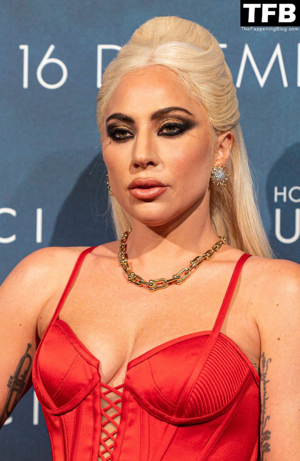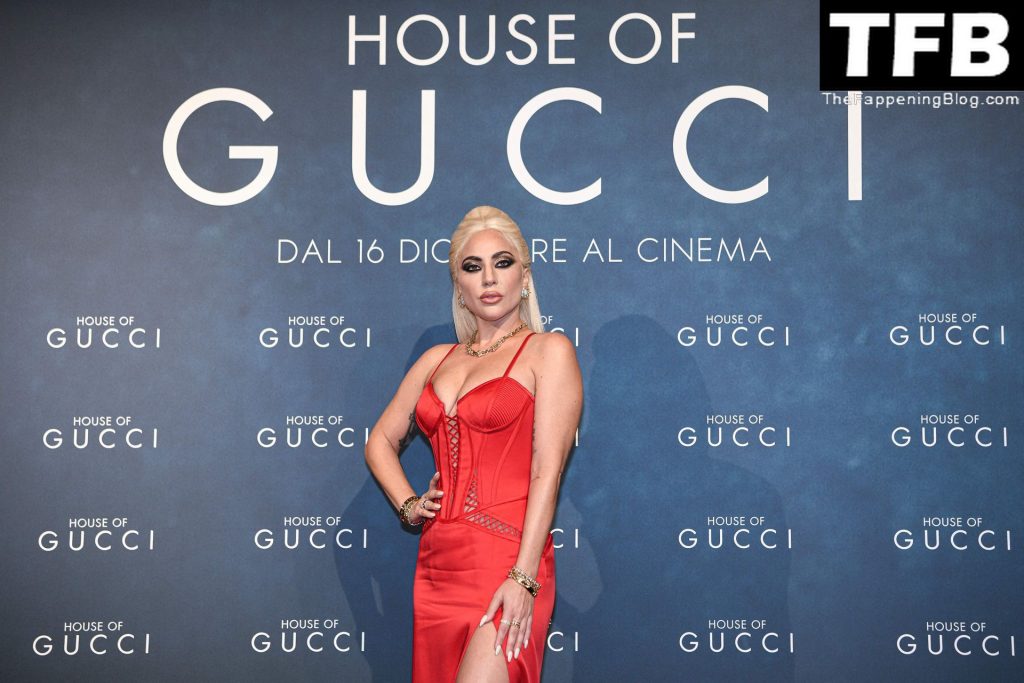 La cantante y actriz estadounidense Lady Gaga posa con un hermoso vestido en la alfombra roja antes del estreno de la película ‘House of Gucci’ en Milán, Italia, 13/11/2021.