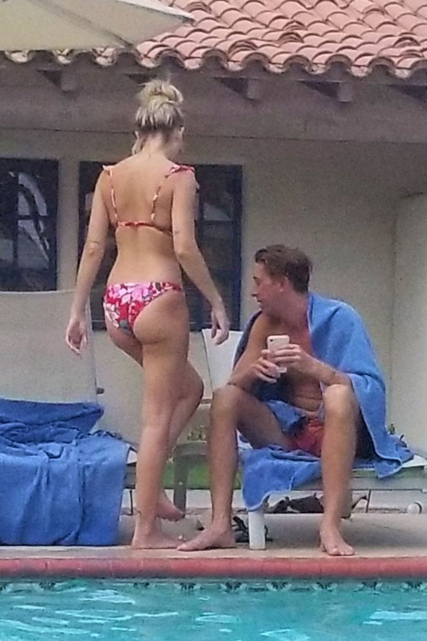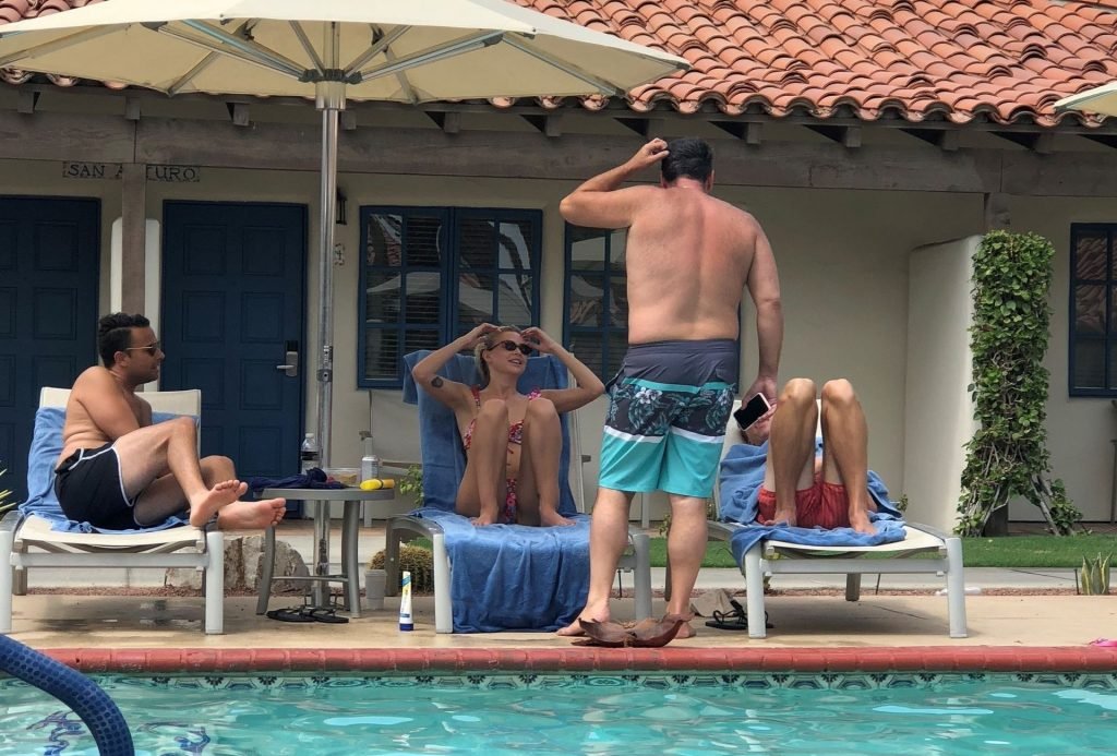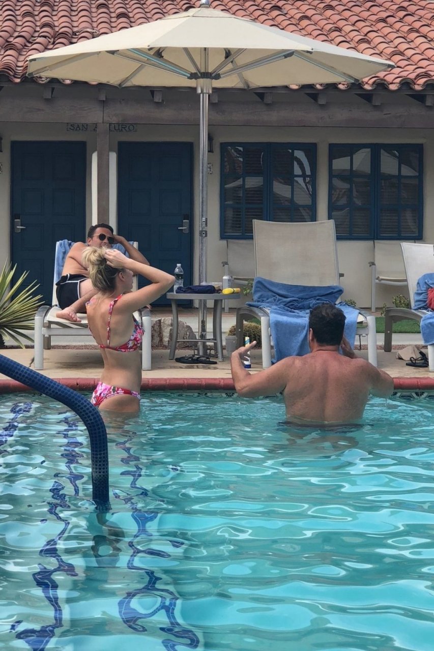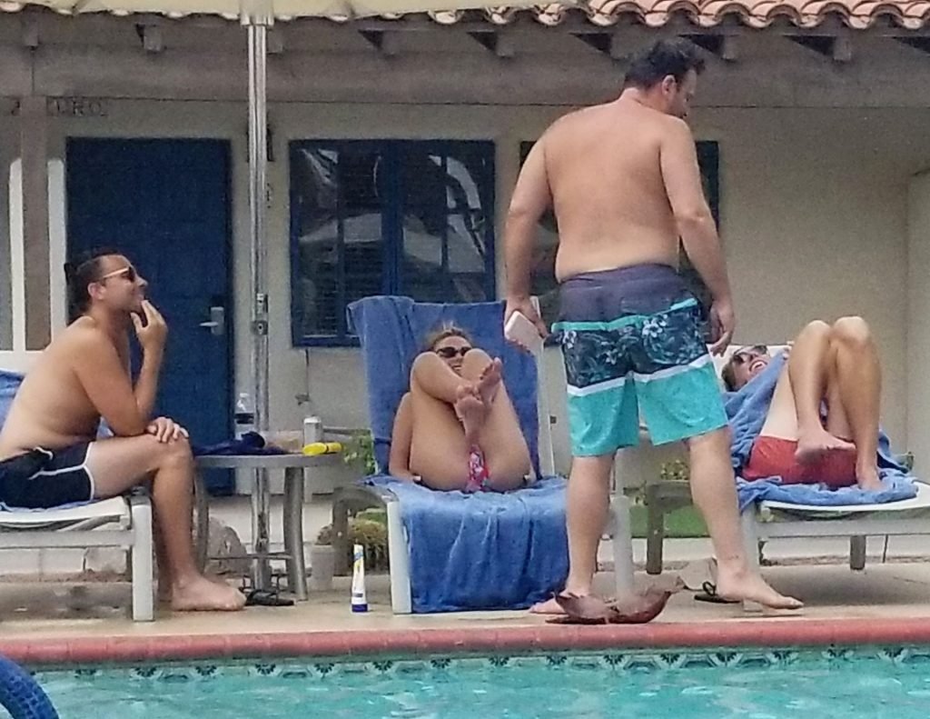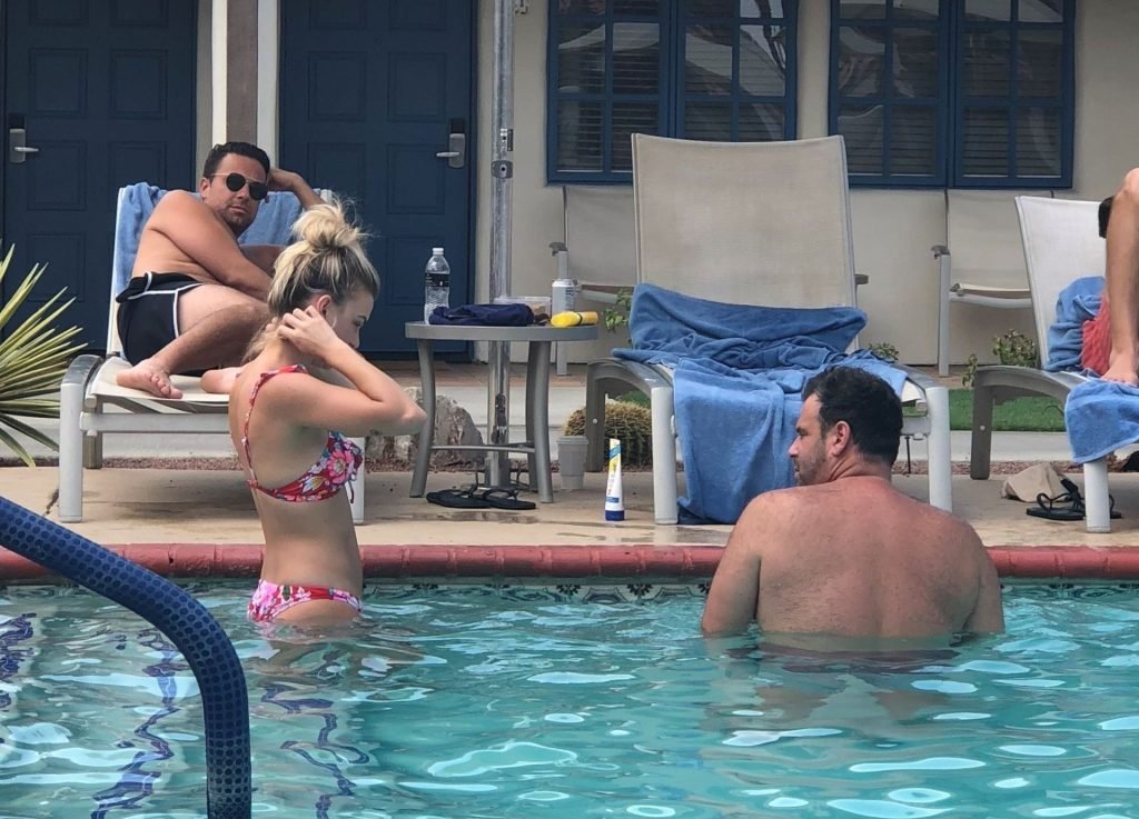 Lala Kent de “Vanderpump Rules” está junto a la piscina en unas vacaciones en el desierto con su prometido, Randall Emmett y la familia, 24/08/2019.