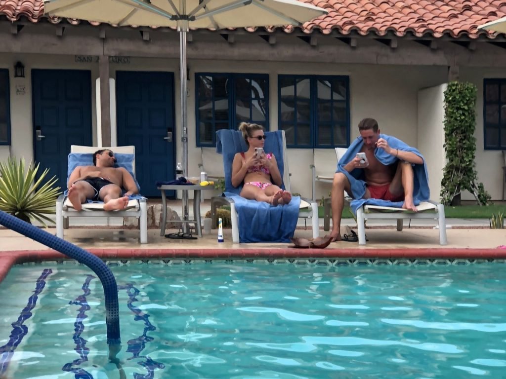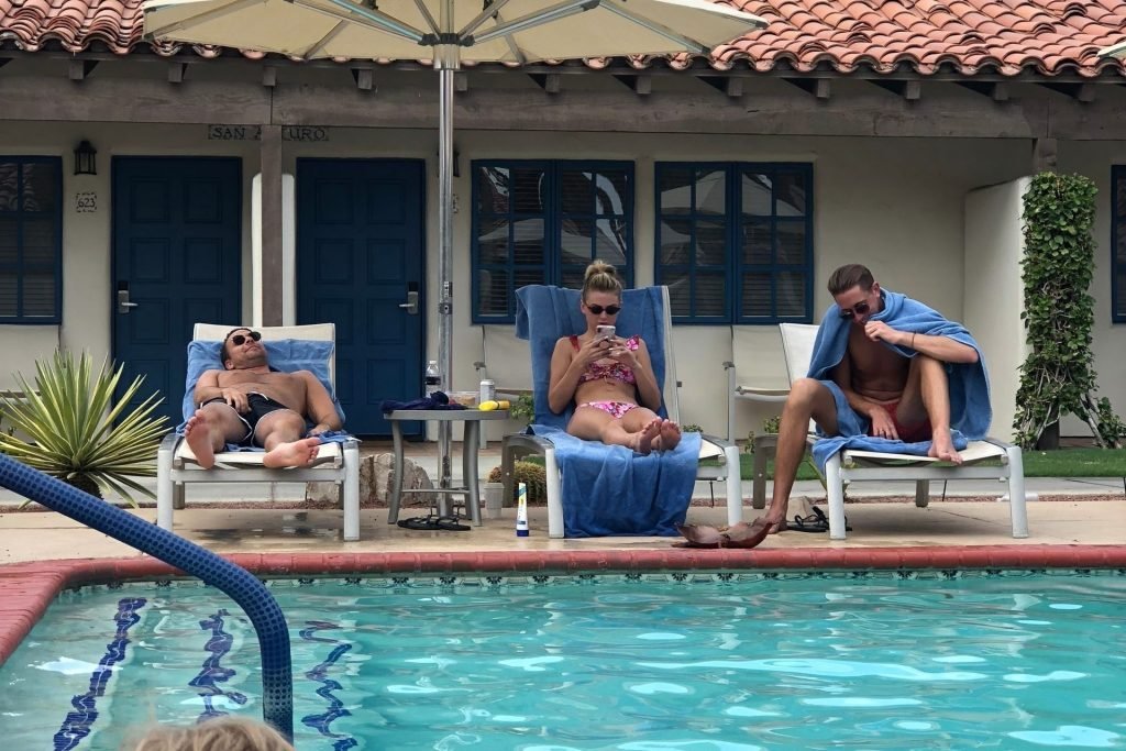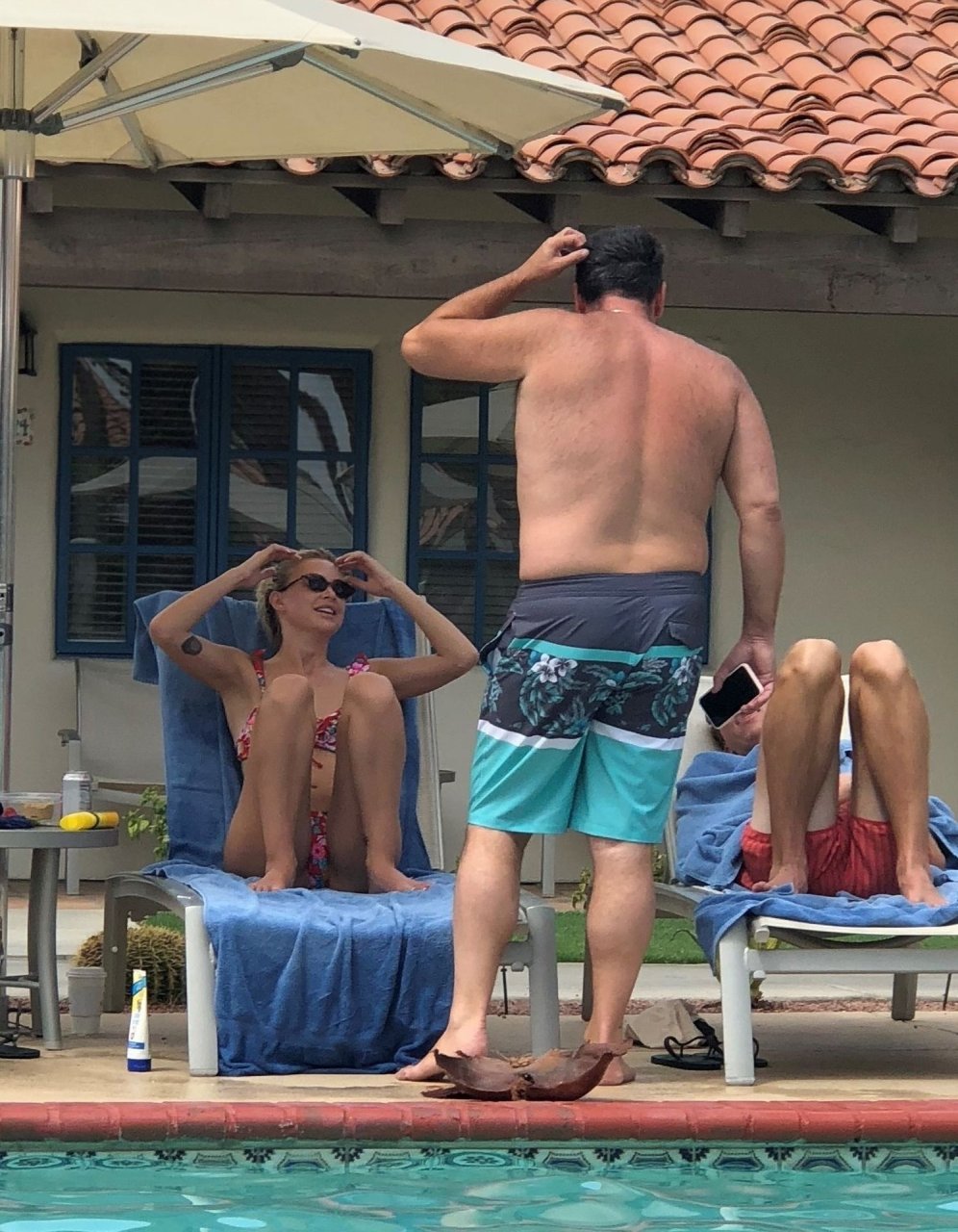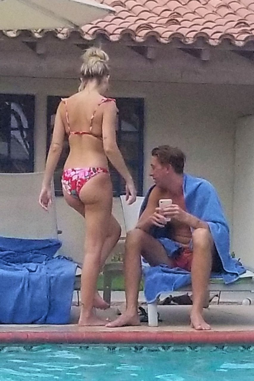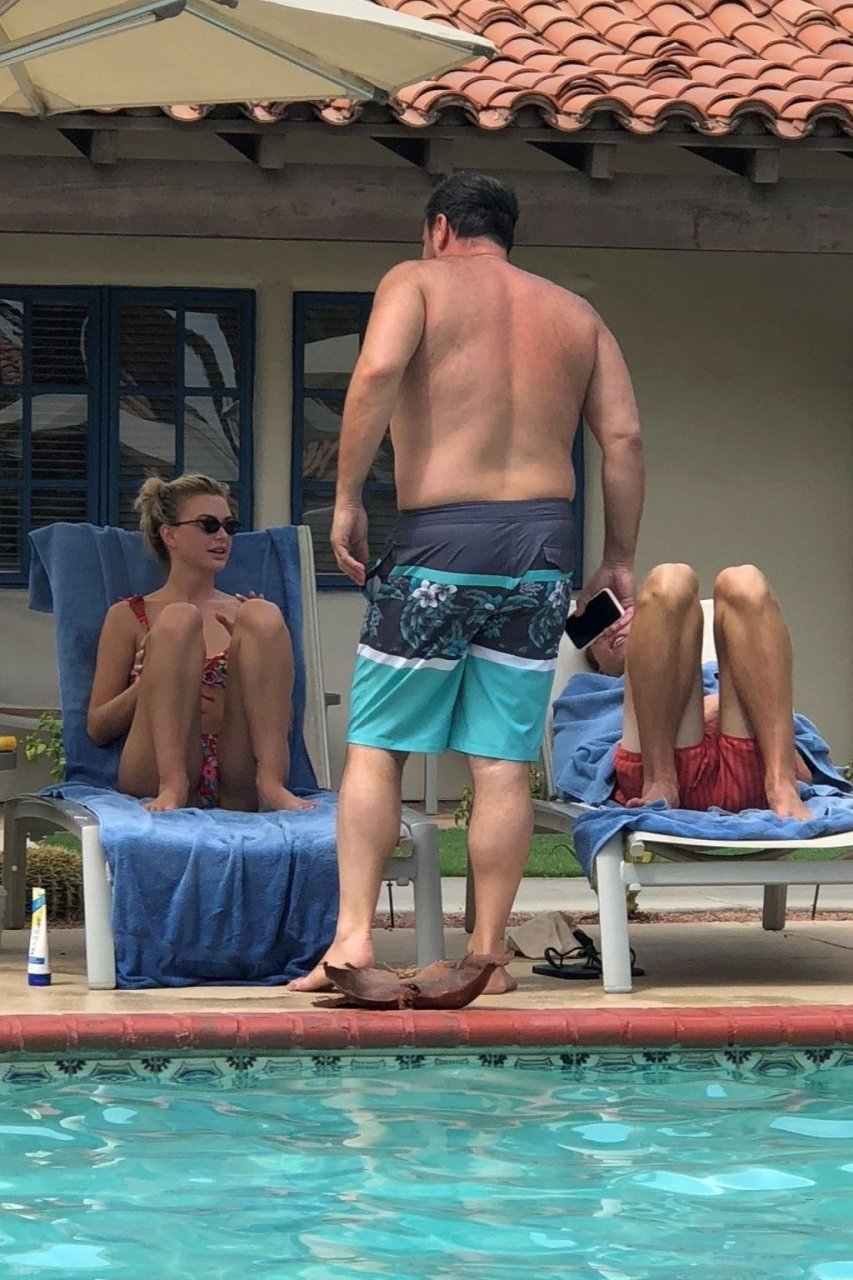 Lala Kent de “Vanderpump Rules” está junto a la piscina en unas vacaciones en el desierto con su prometido, Randall Emmett y la familia, 24/08/2019.