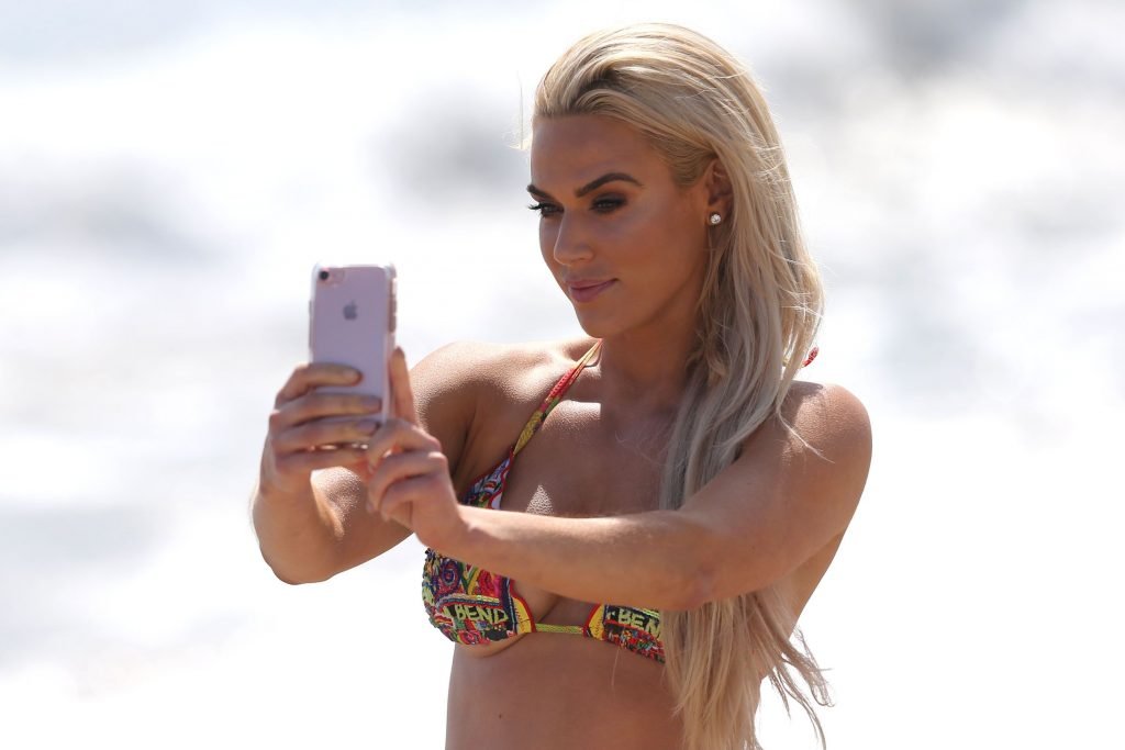 ‘Total Divas’ estrella CJ Perry se refresca en la playa en Los Ángeles, 23/10/2017. C.J. Perry es una actriz, bailarina, modelo, cantante, mánager y luchadora profesional estadounidense (WWE Lana). Edad – 32 años (nacida el 24 de marzo de 1985).