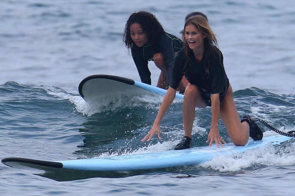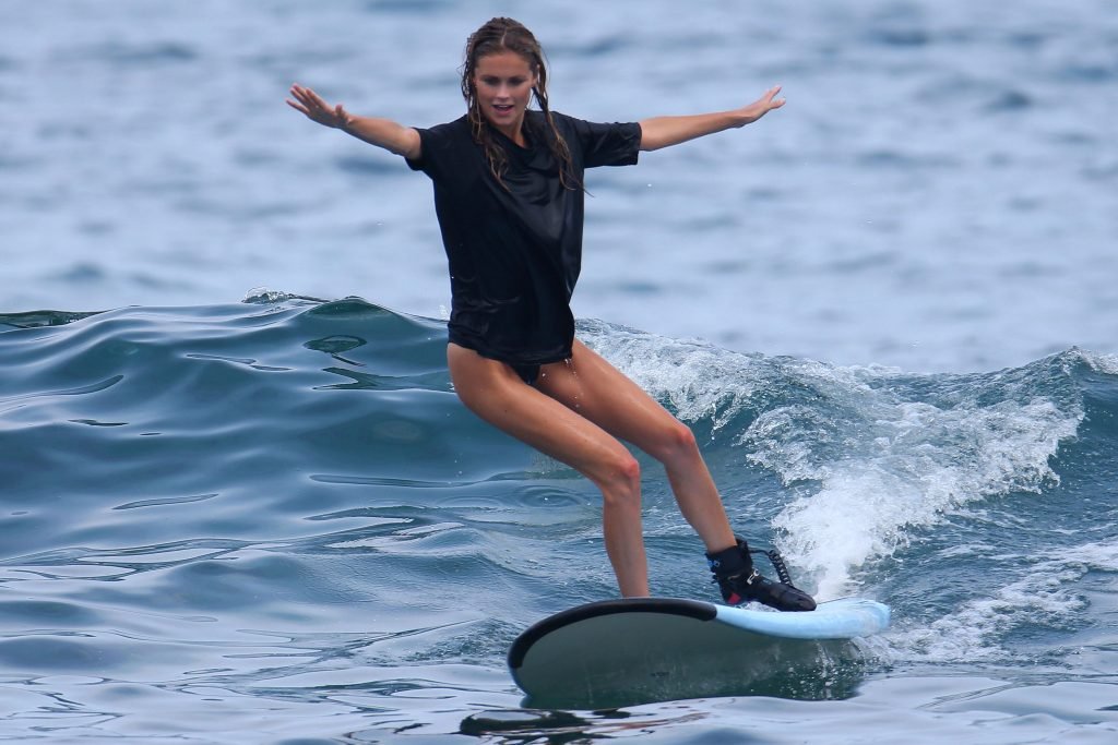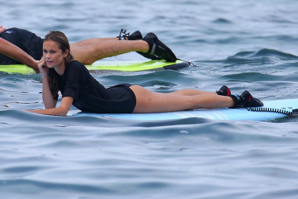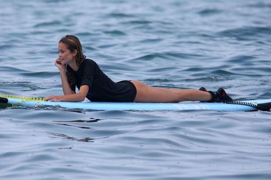 Lane Lindell fue vista tomando una clase de surf con Kona Mike’s Surf Adventures en Kailua-Kona, Hawái, 02/08/2018. Lane llevaba un bikini negro.