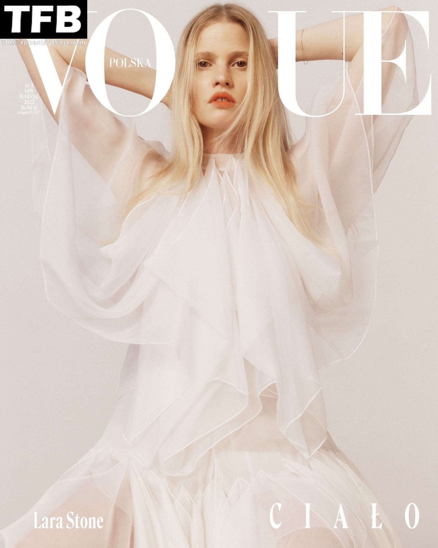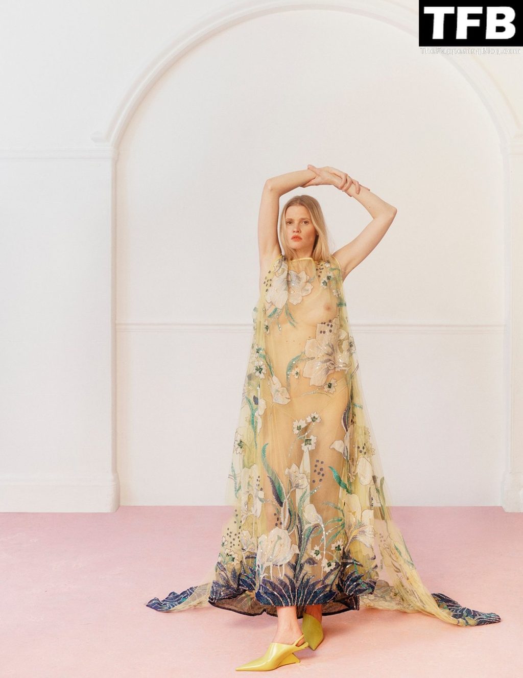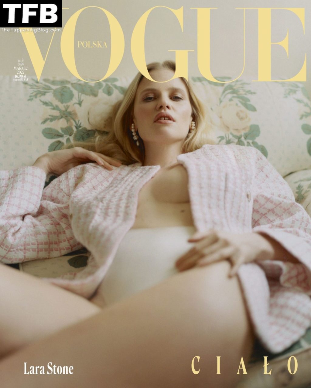 Lara Stone muestra sus grandes pechos naturales en una sesión de fotos desnuda realizada por Ina Lekiewicz & Julia Noni para la Revista Vogue (marzo 2022).