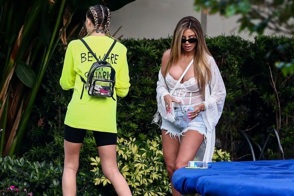 Larsa Pippen y amigos se relajan en Miami Beach, 31/03/2019. Larsa muestra sus curvas con un bikini de una pieza.