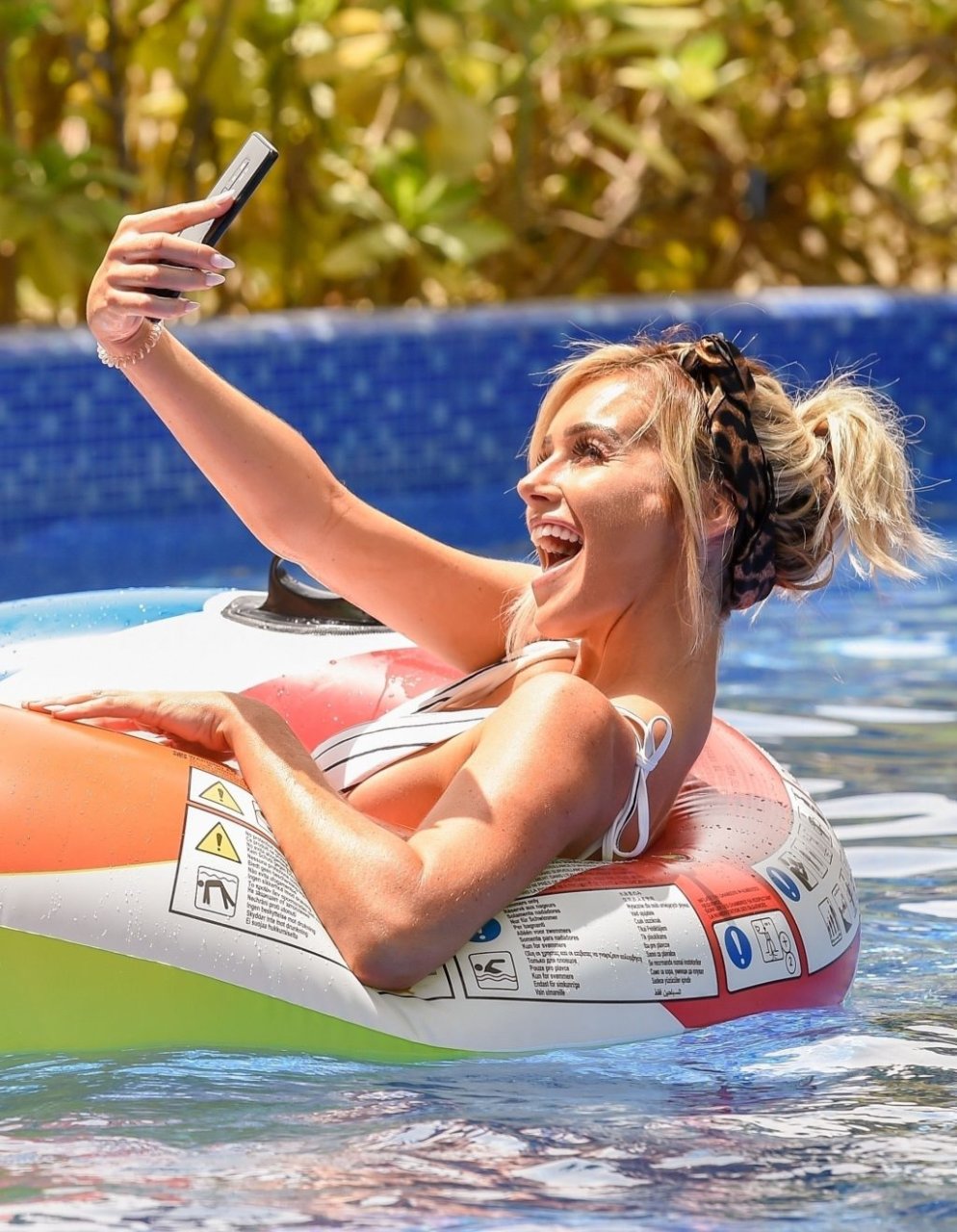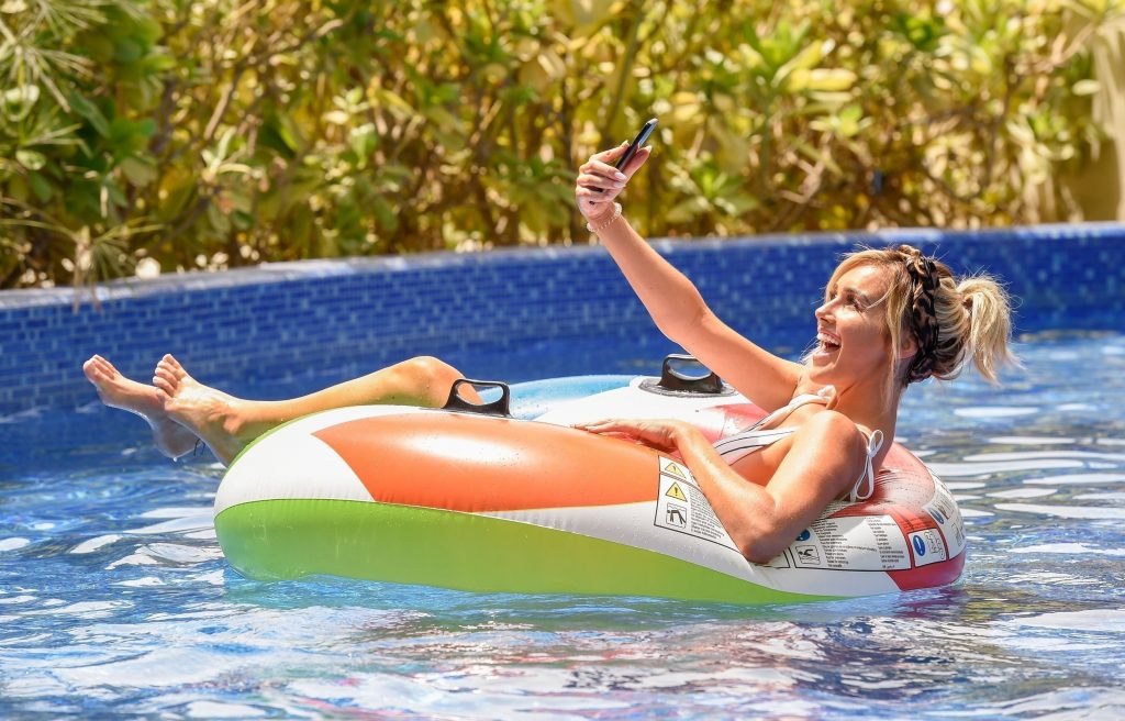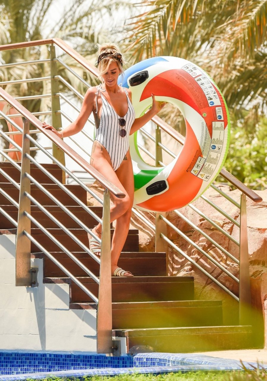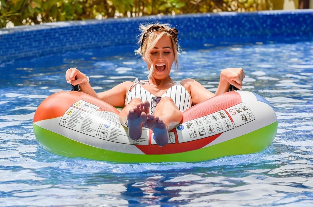Sexy estrella escocesa y subcampeona de “Love Island” Laura Anderson se muestra junto a la piscina relajándose en su inflable disfrutando del cálido sol de Emirates en Dubái, 30/08/2018. ¡Laura está actualmente de vacaciones sin Paul Knopps con quien se emparejó en el programa de ITV!