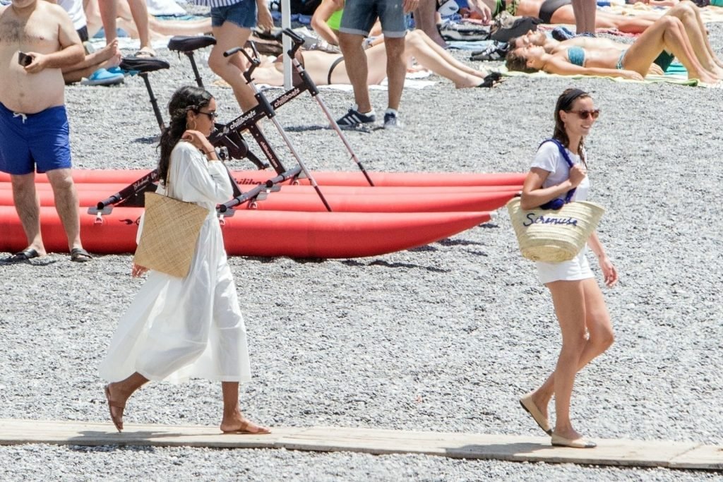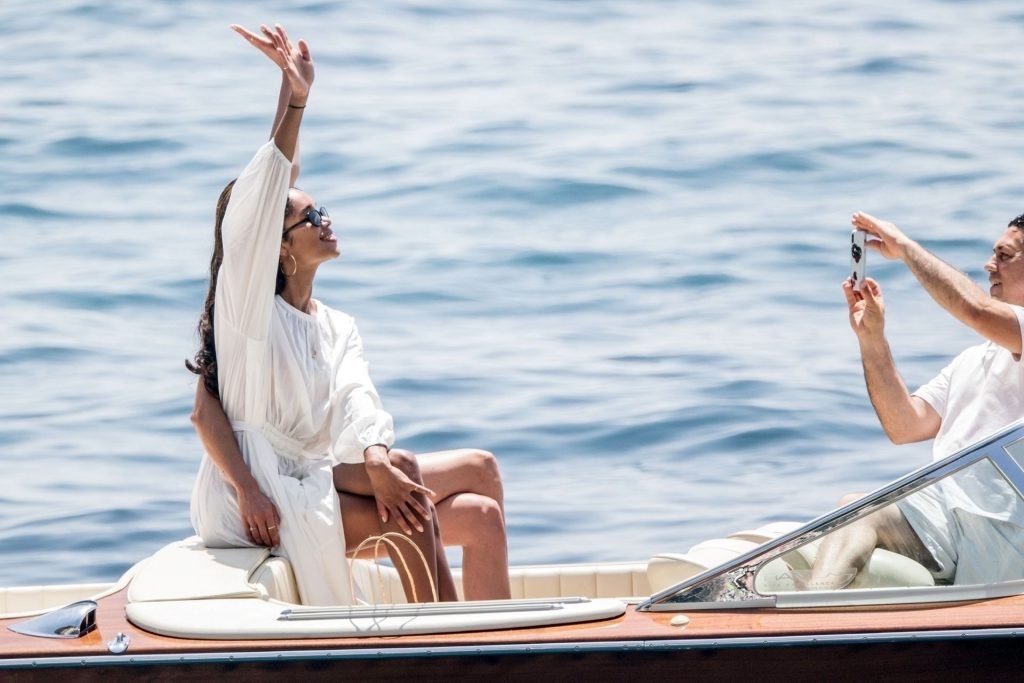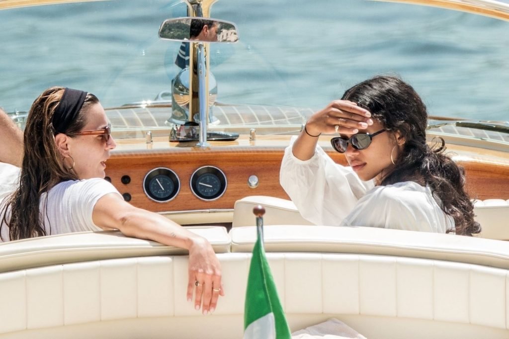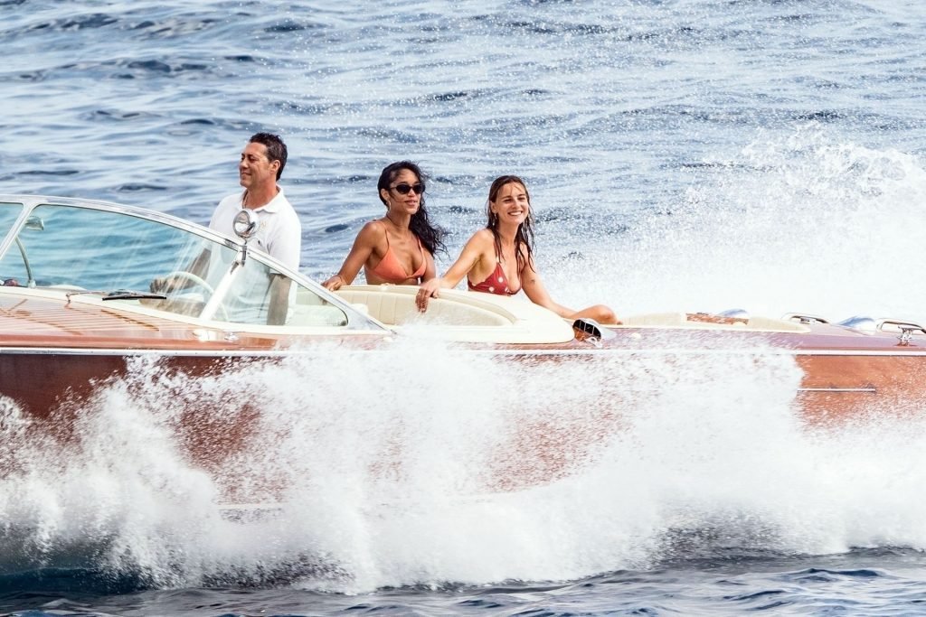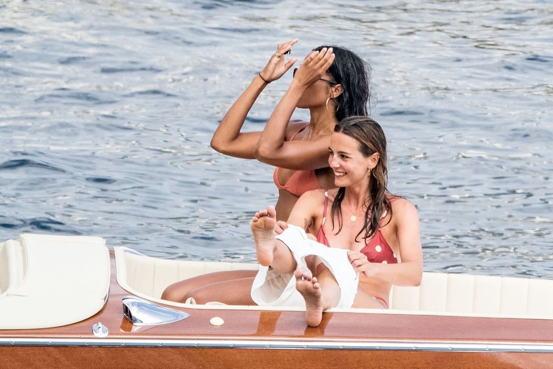 La actriz de “Spider-Man: Homecoming” Laura Harrier y Eleonore Toulin fueron fotografiadas pasando un gran momento durante un paseo en bote mientras estaban de vacaciones en Positano, 17/06/2019.