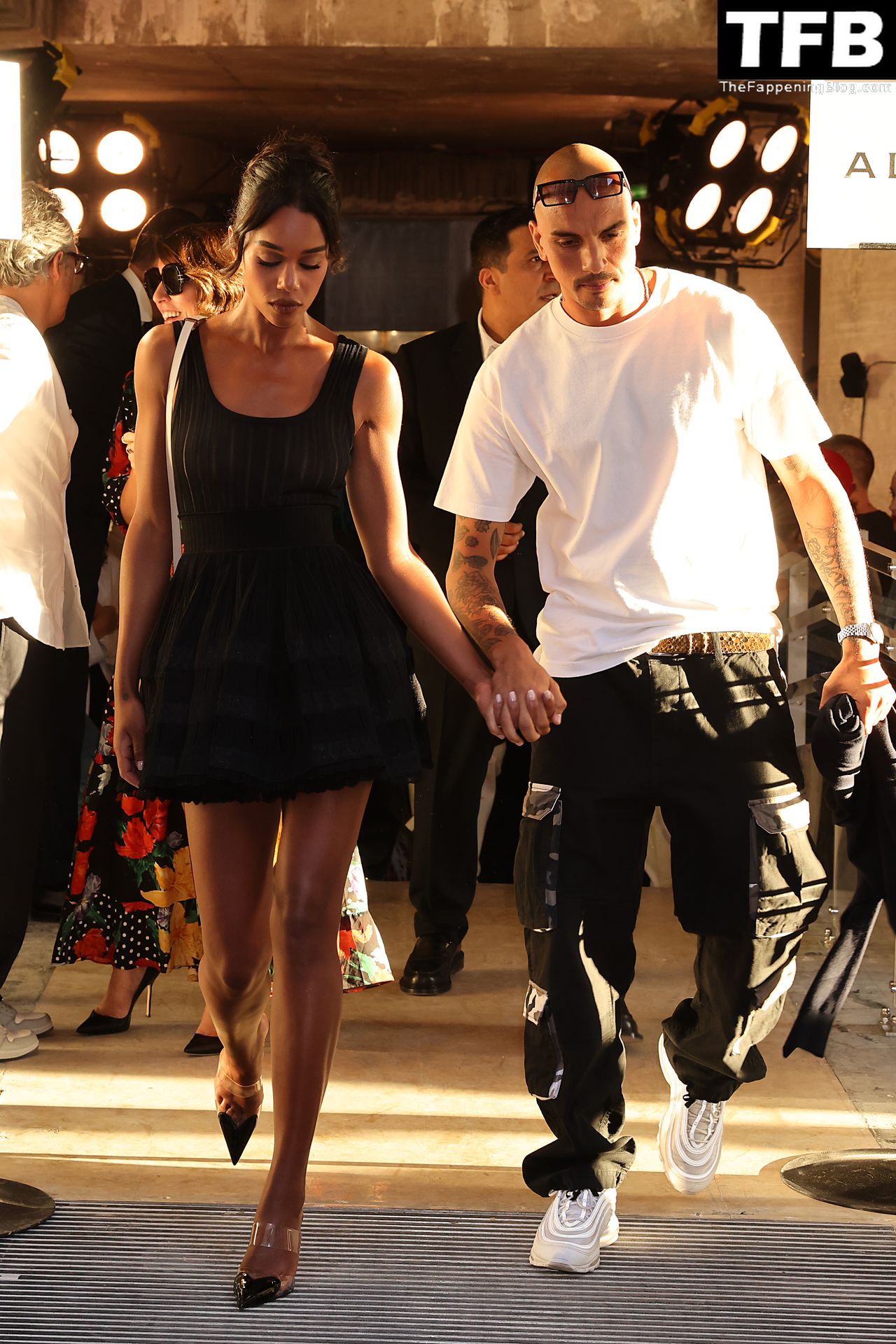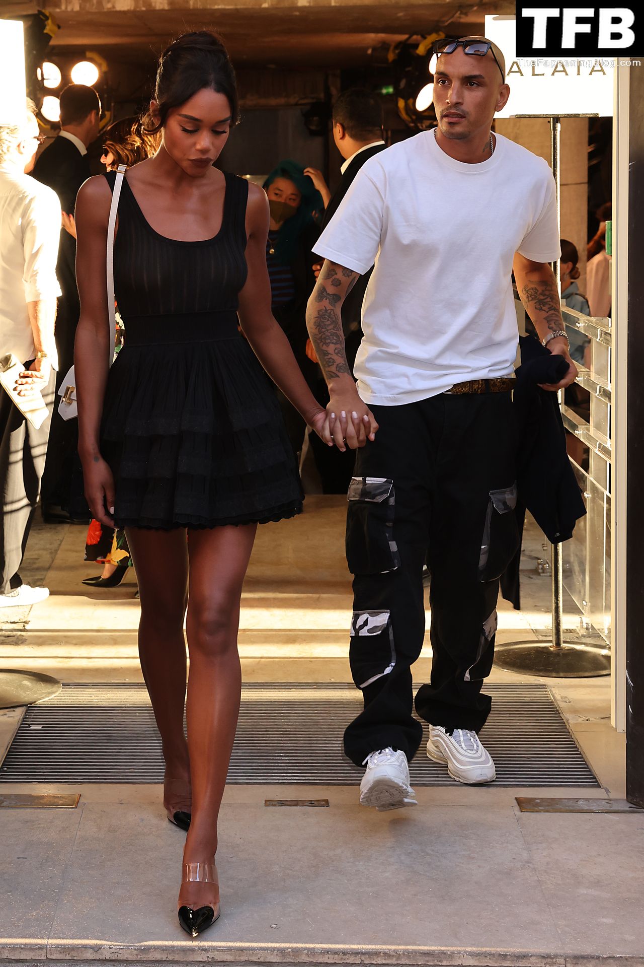 La estrella de The Fappening Laura Harrier y su novio Sam Jarou fueron vistos saliendo del desfile de Alaia durante la Semana de la Moda de París, 07/03/2022.