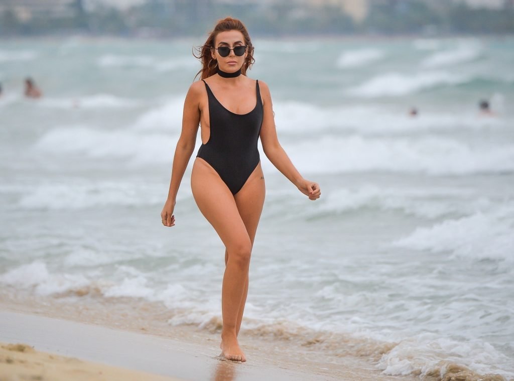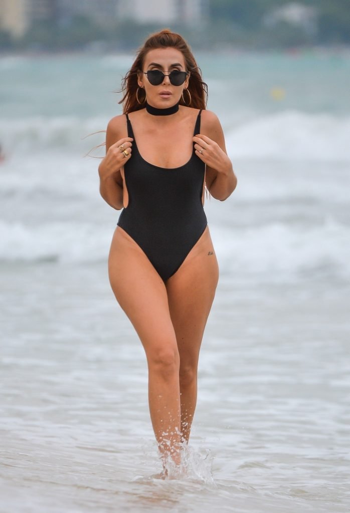 Forma de cuerpo extraña, con piernas largas y torso corto. Mal maquillaje y cirugía de senos. Me recuerda un poco a Snooki. Para tener 29 años, parece que tiene 40.