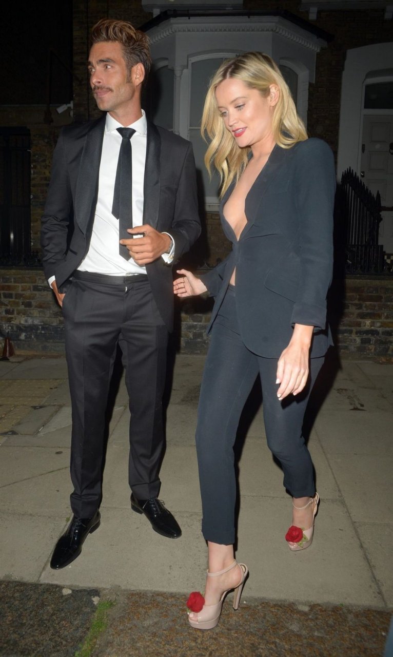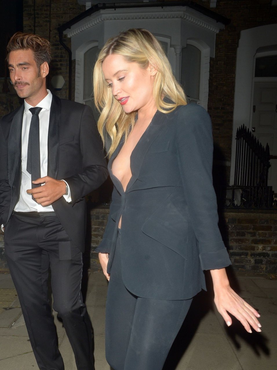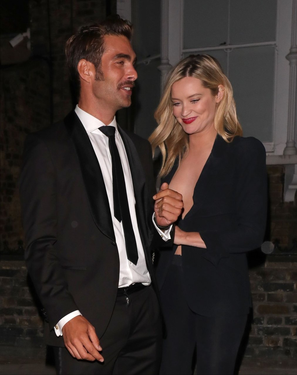 Laura Whitmore sin sostén fue vista en la fiesta no oficial posterior a los premios GQ 2019 de Matthew Freud en Londres, 09/04/2019.
