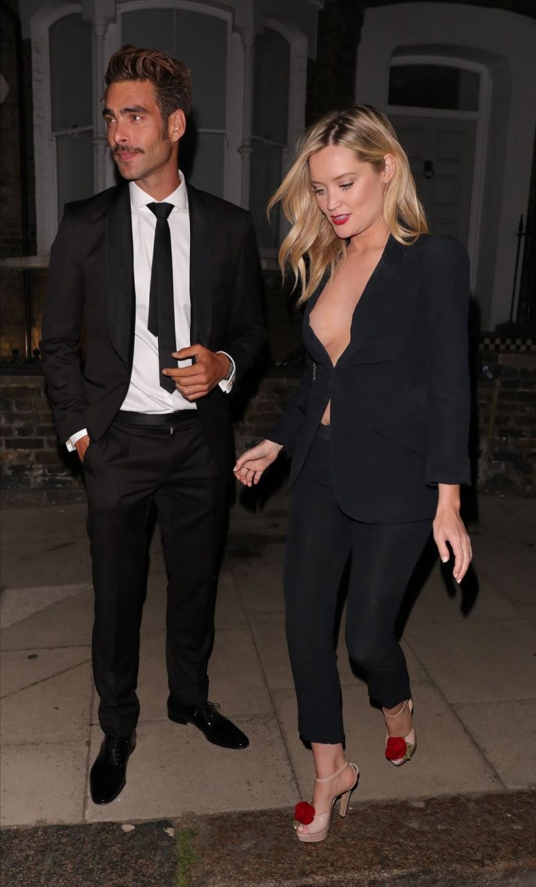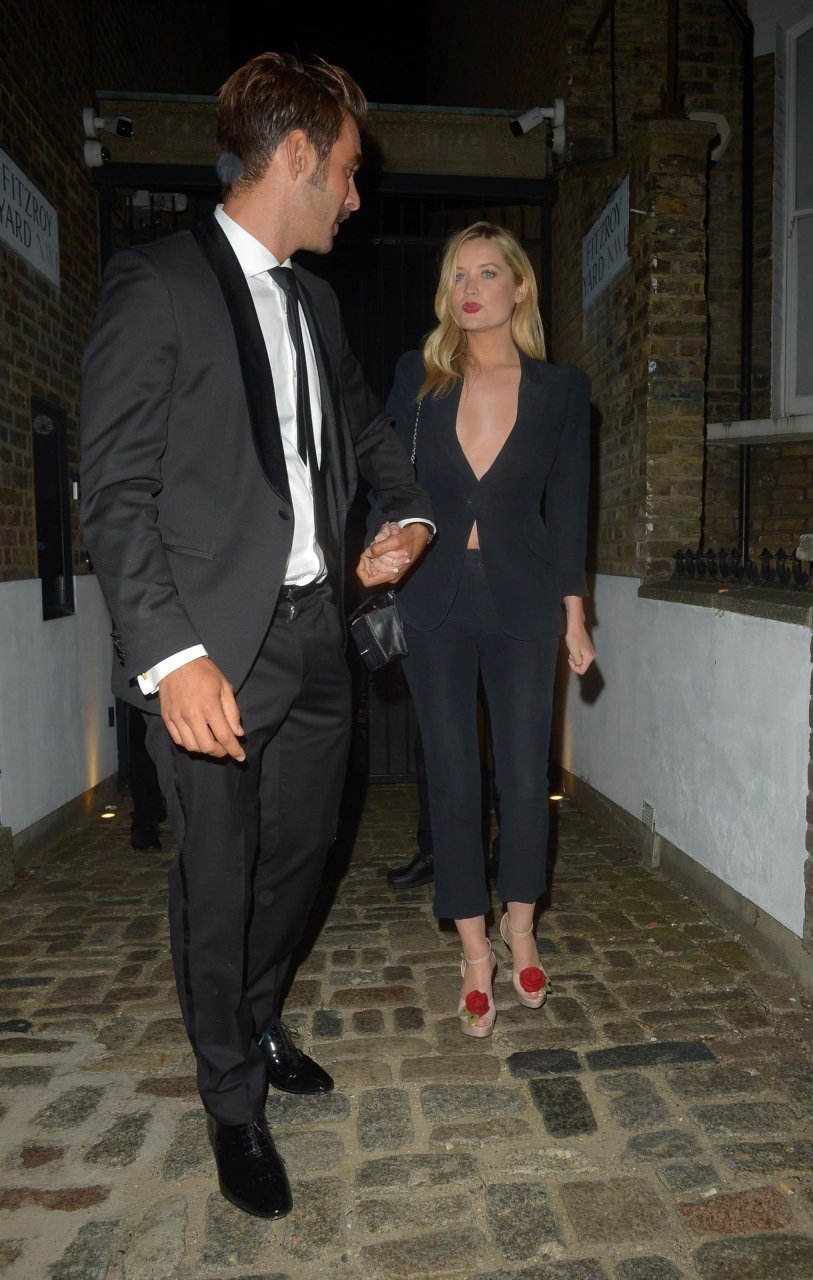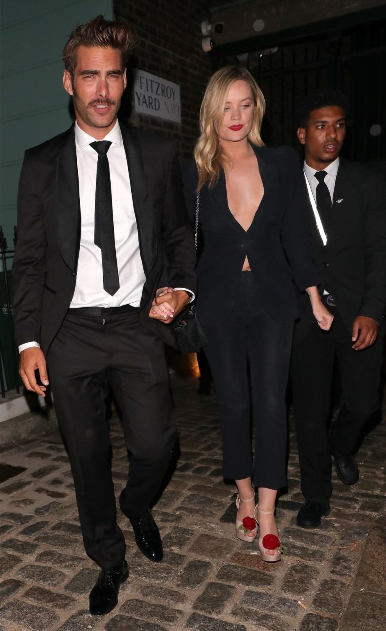 Laura Whitmore sin sostén fue vista en la fiesta no oficial posterior a los premios GQ 2019 de Matthew Freud en Londres, 09/04/2019.