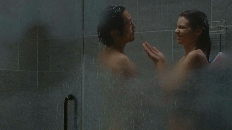 From time to time, Lauren Cohan’s sex scene appears, but not too often! Down below we can see Lauren with an Asian guy inside the shower. They are kissing, touching, and the man is washing her butt. I am horny folks, as I’m watching Lauren moaning and waiting for him to finger her! In the meantime, they are enjoying it!