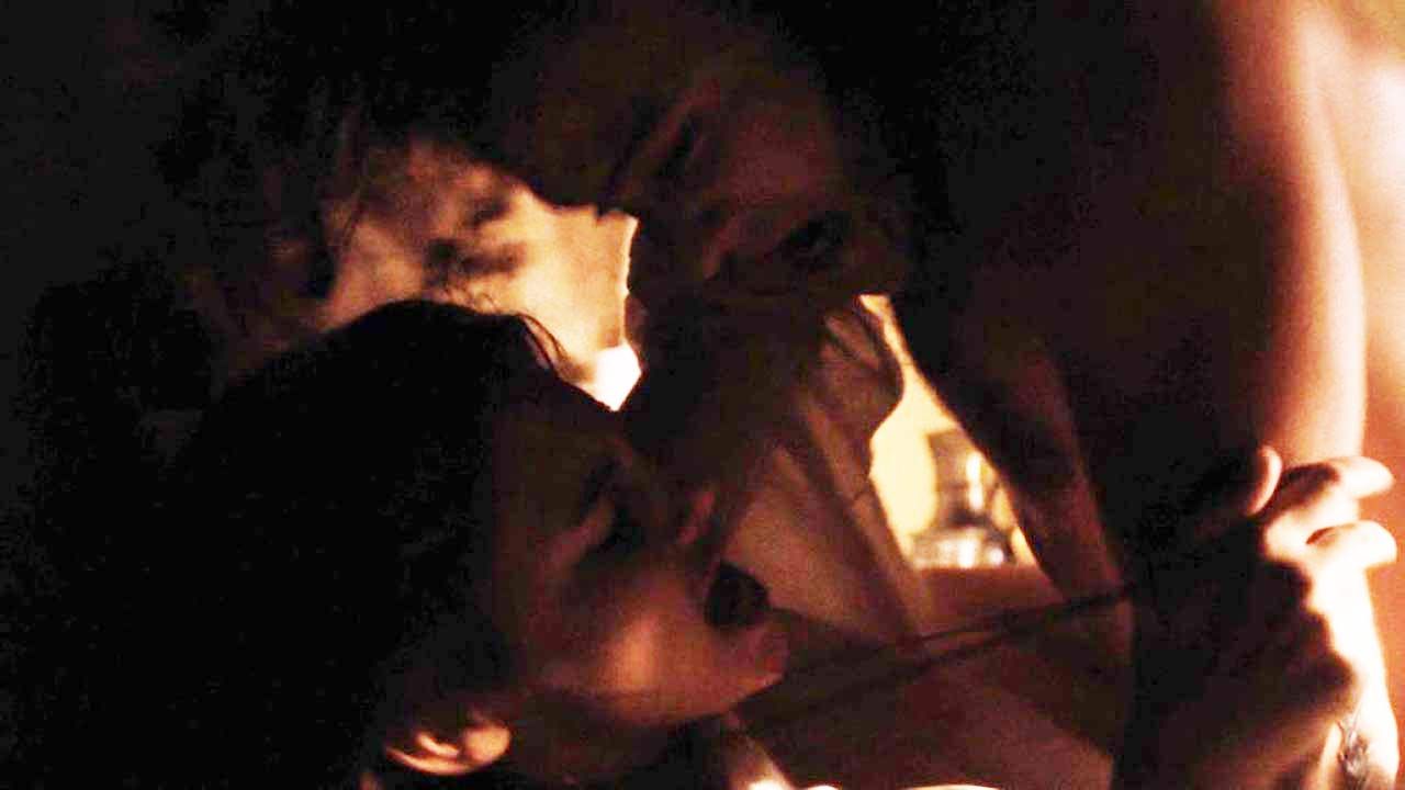 After the showering scene, we have Lauren Cohan and the same boyfriend in passionately sex scene from the same series. In the center of the scene, Lauren is wearing a black bra and a tank top, while the man is on top of her. They are making out, as he is taking her panties off to fuck her. Eventually, the scene is zooming out, and we see them on the table.