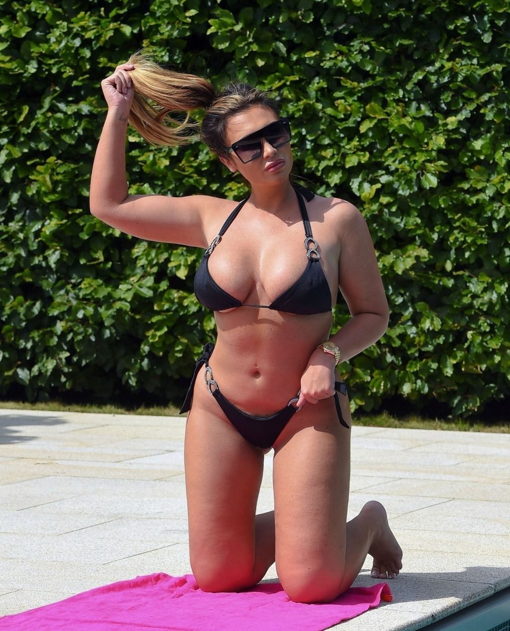 La estrella de reality Lauren Goodger muestra su figura esbelta con un bikini negro mientras está de vacaciones en España, 23/08/2019. Lauren, quien recientemente protagonizó “Celebs Go Dating”, resalta su trasero en forma con un bikini fruncido. Lauren publicó recientemente en su Instagram que quiere perder peso después de 3 meses de grabación.