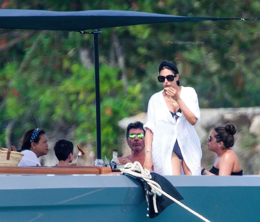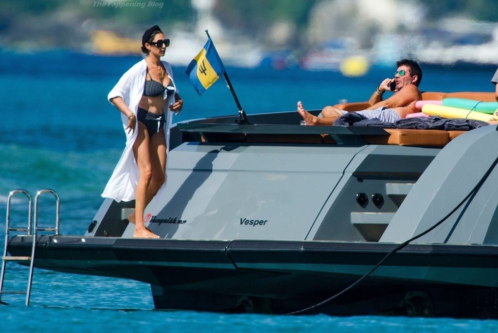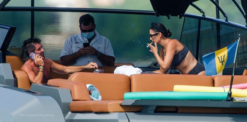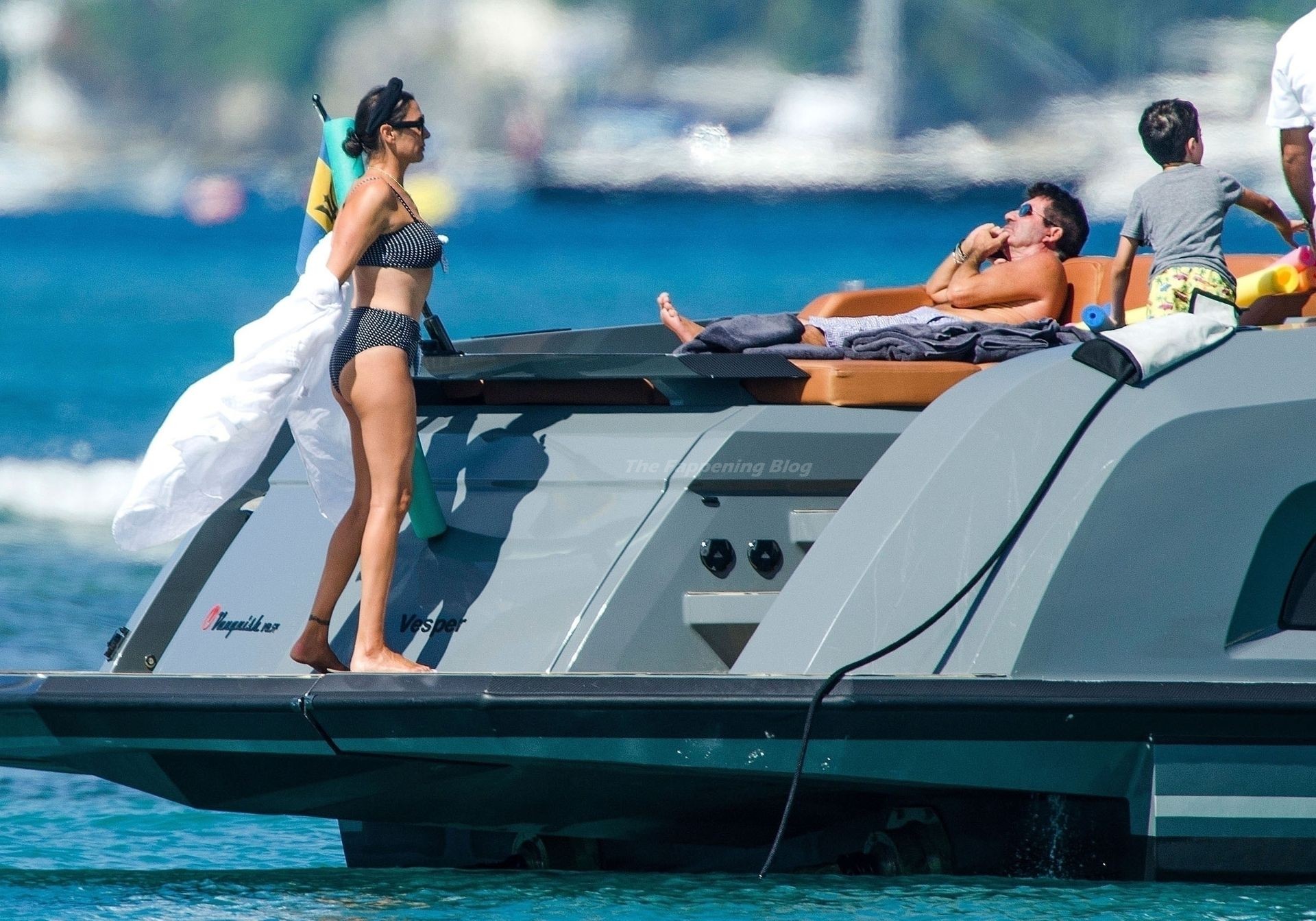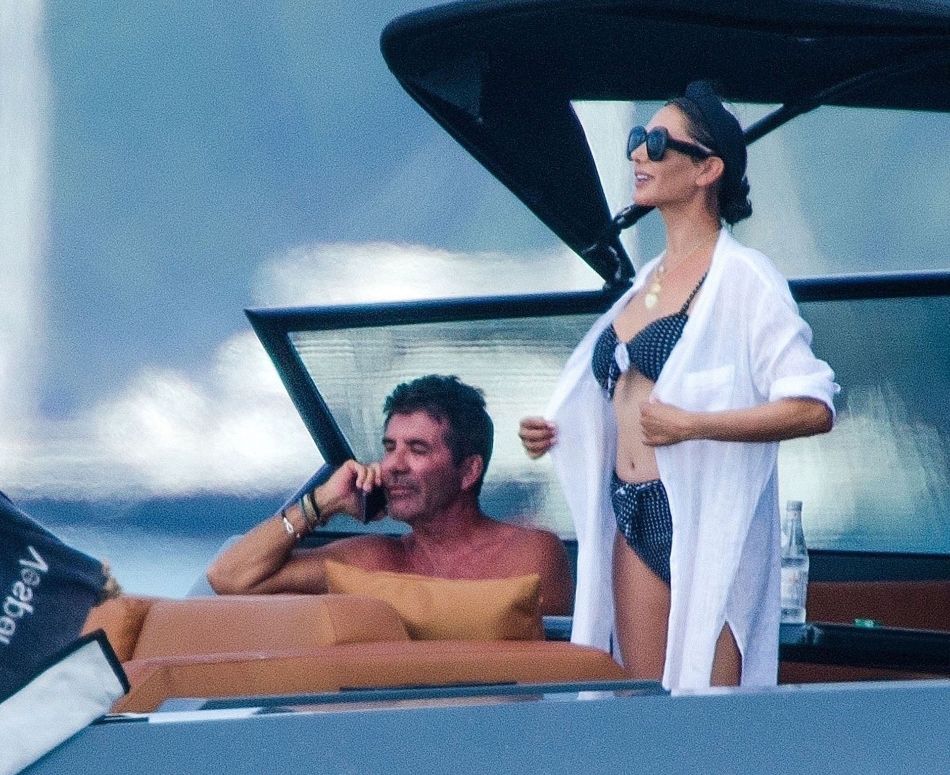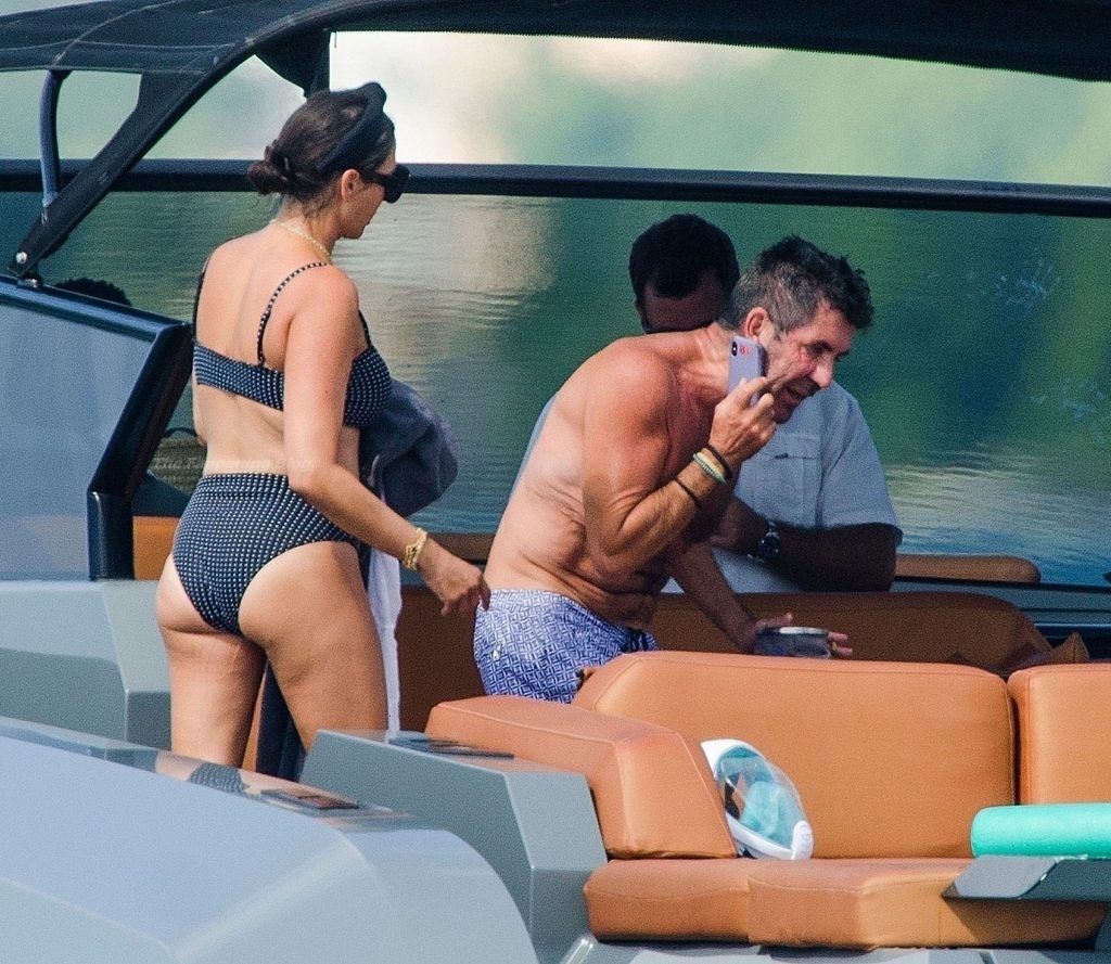 Simon se aseguró de divertirse durante su descanso surfeando algunas olas en su moto acuática mientras su pareja Lauren Silverman se relajaba con un cigarrillo en la boca, mostrando su elegante figura con su pequeño y escaso bikini.
