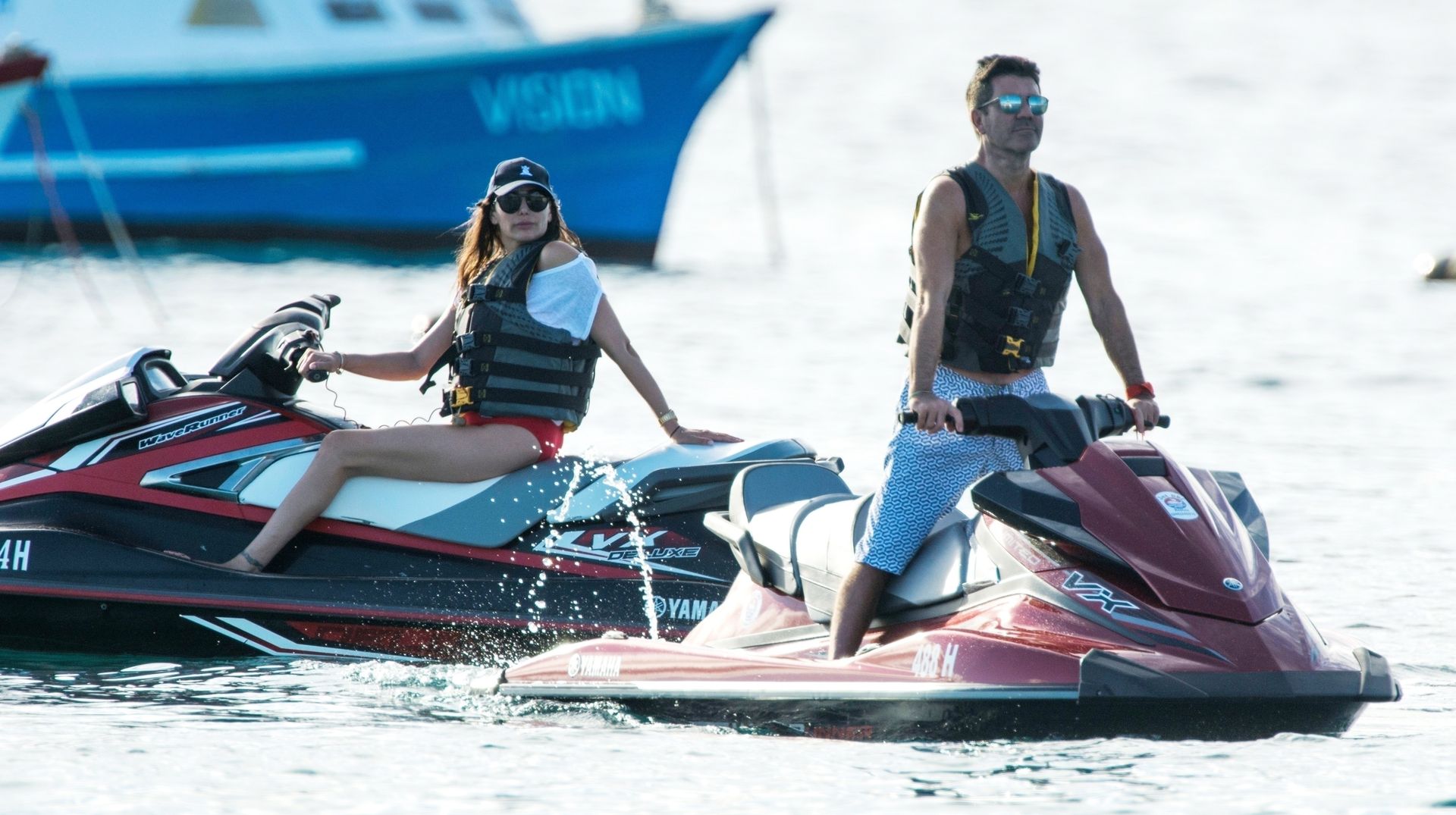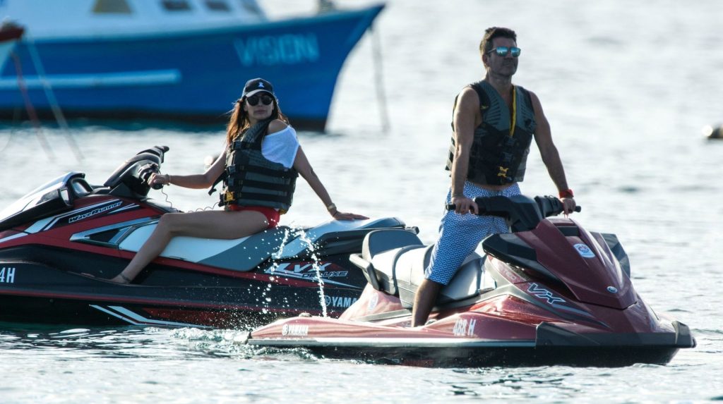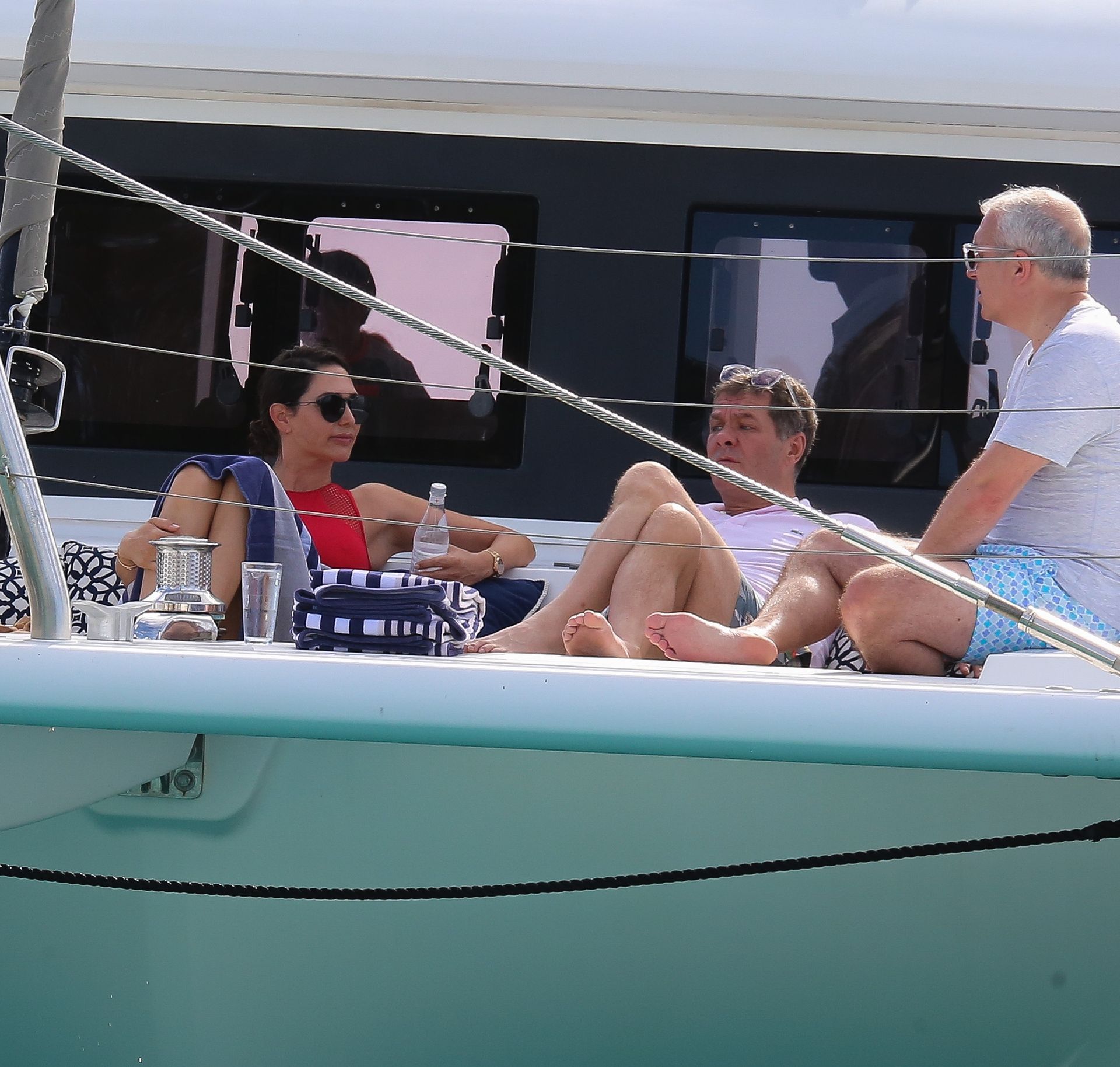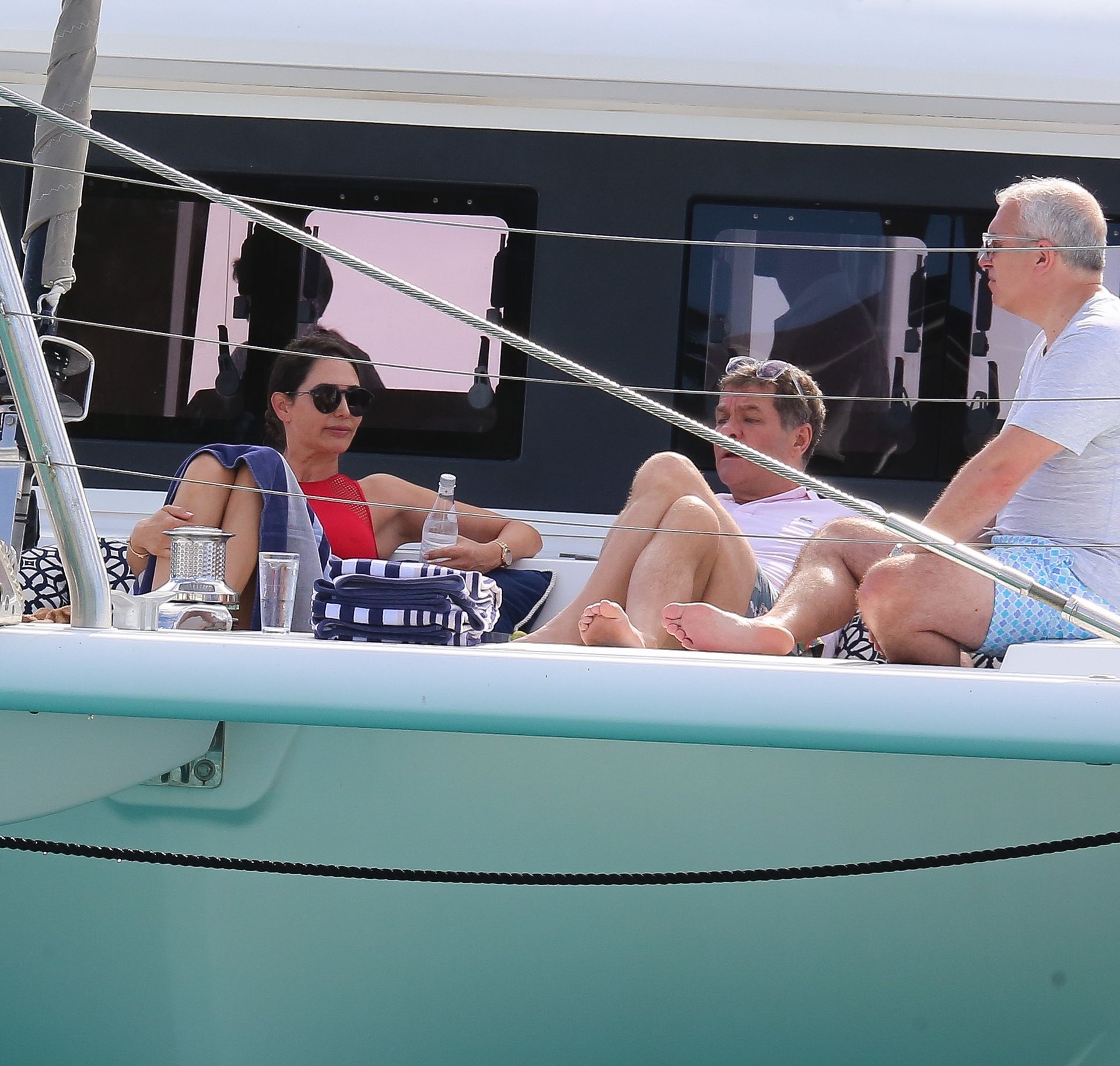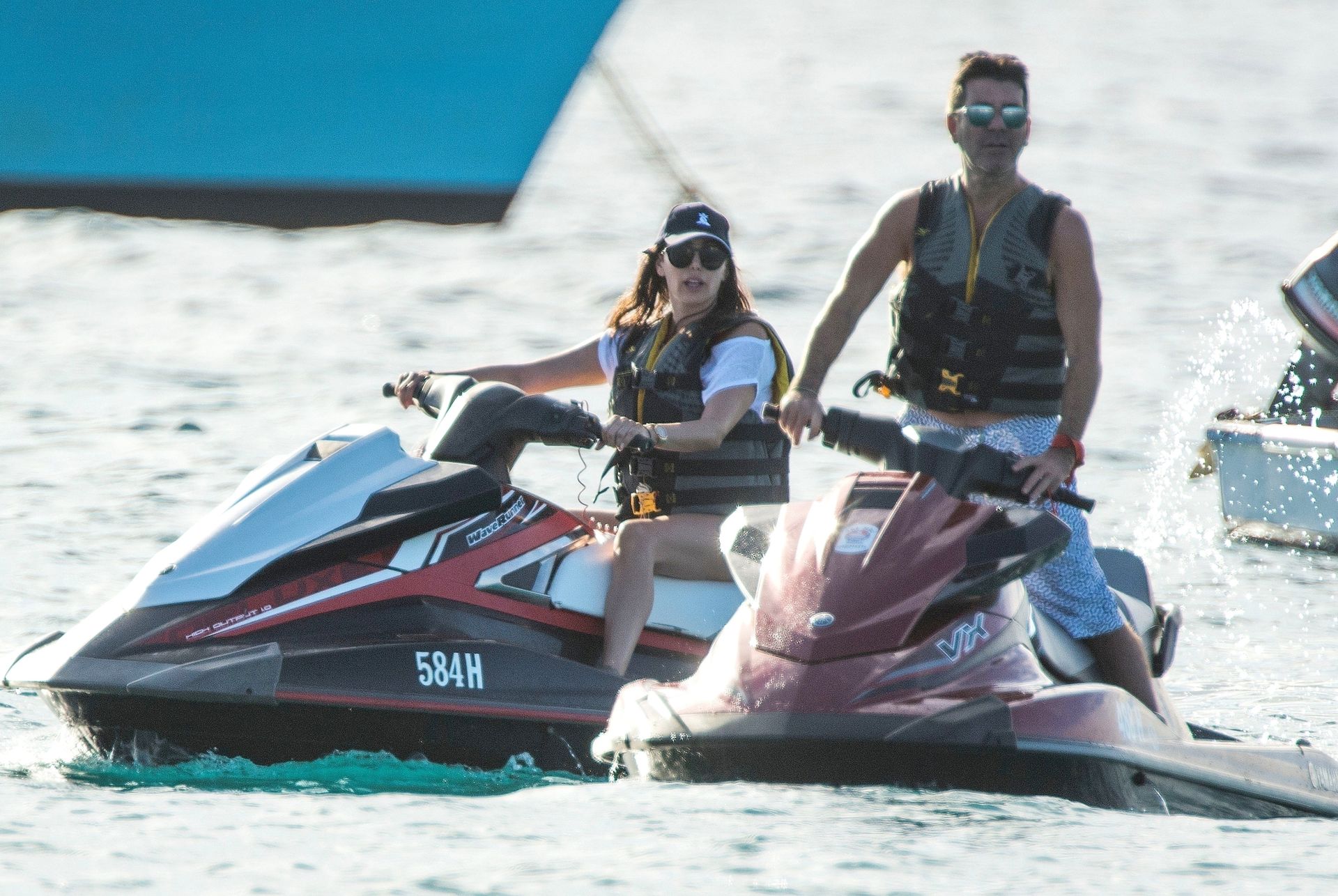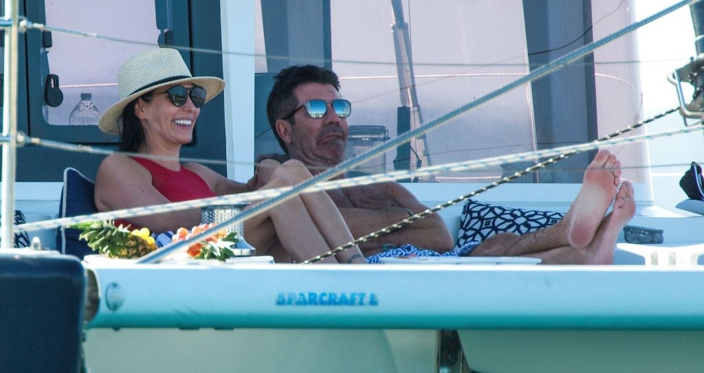 Music mogul Simon Cowell and his partner Lauren Silverman disfrutan de un día relajante en el mar a bordo de un barco en Barbados, 01/03/2020.
