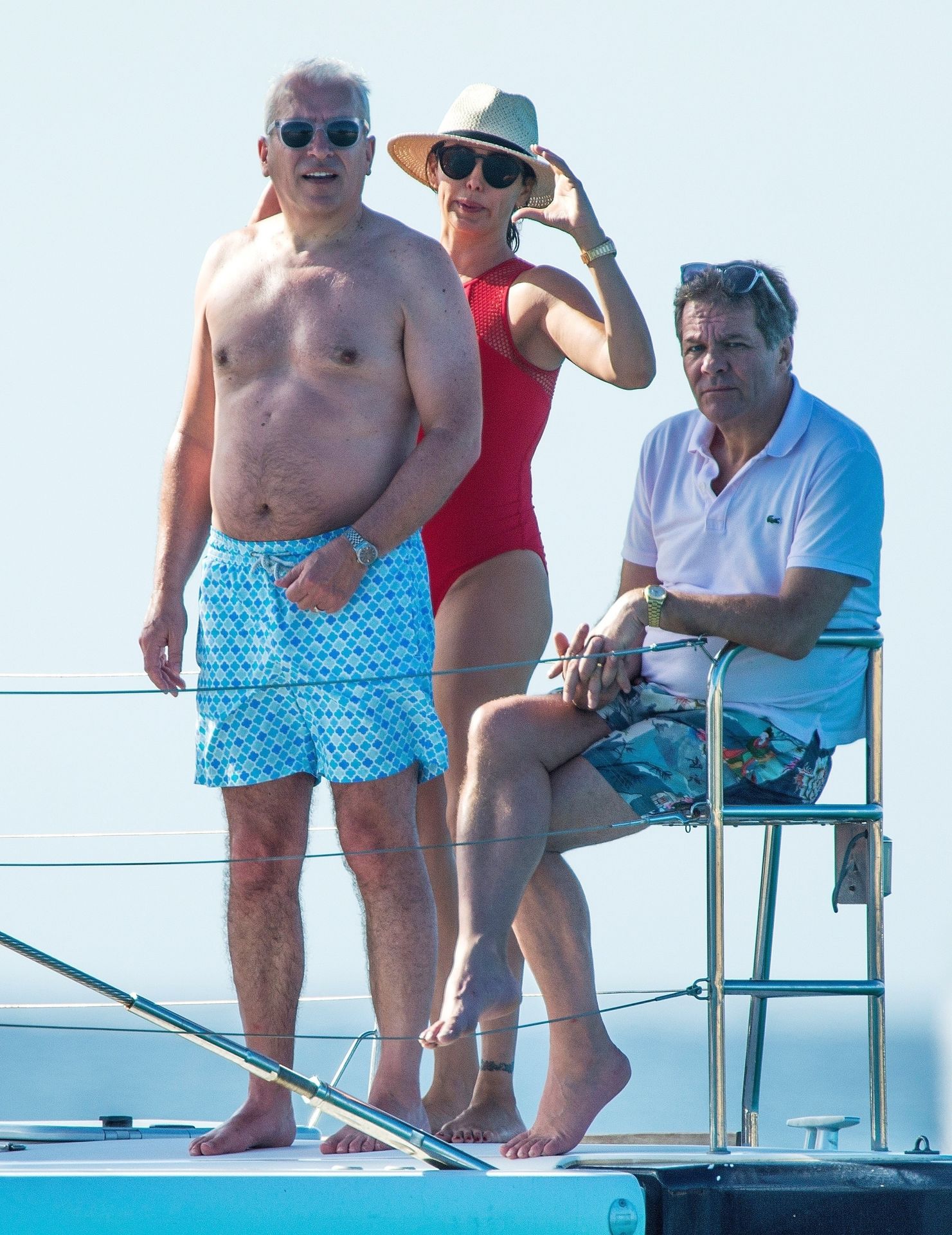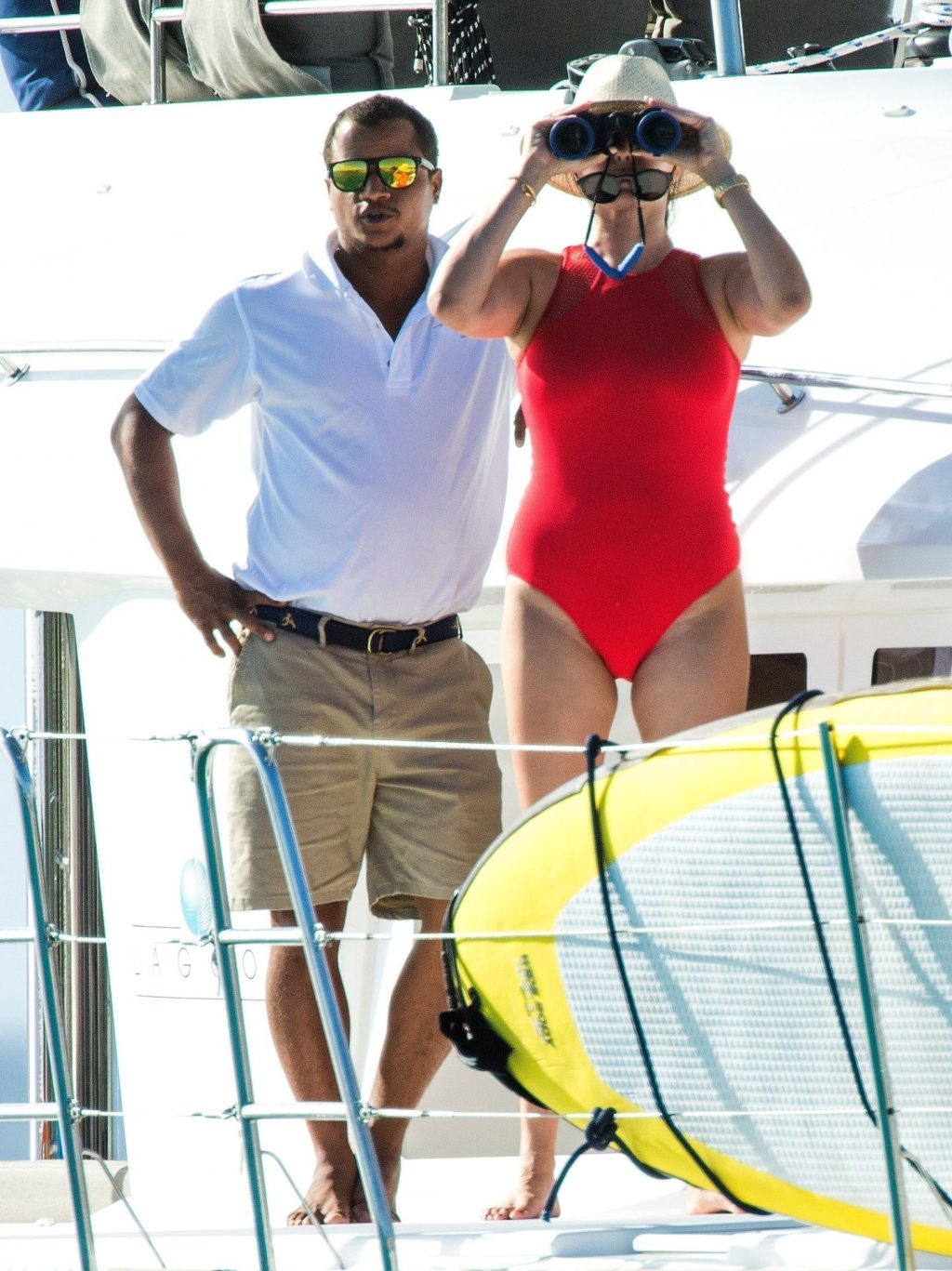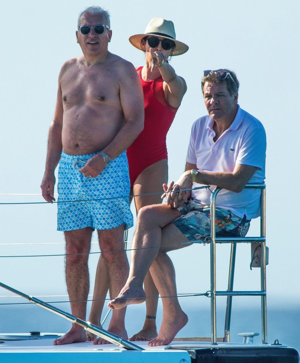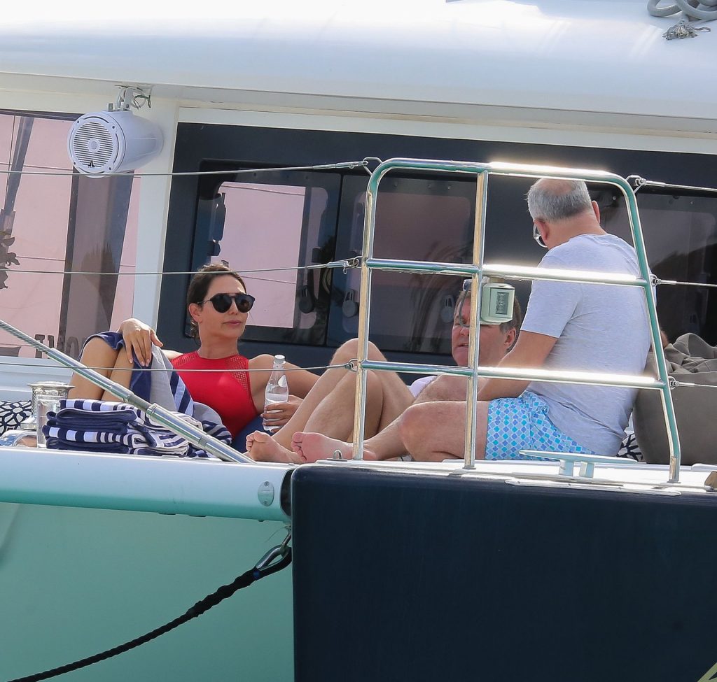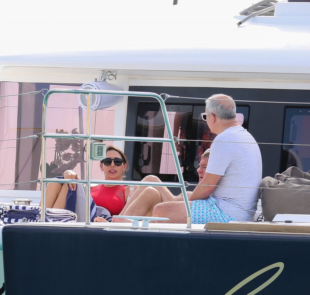 Music mogul Simon Cowell and his partner Lauren Silverman disfrutan de un día relajante en el mar a bordo de un barco en Barbados, 01/03/2020.