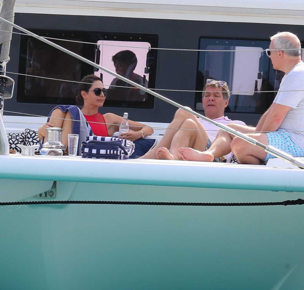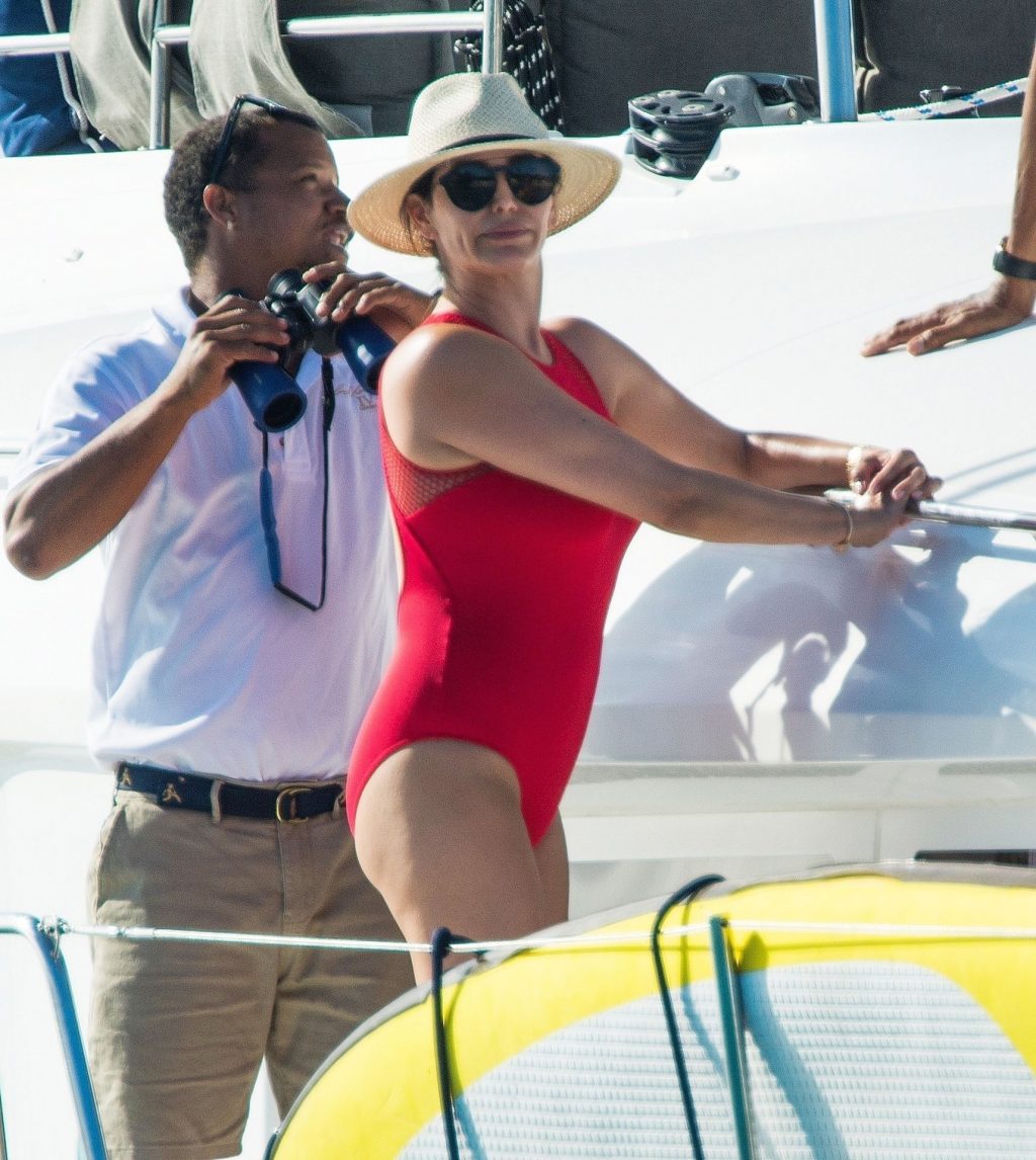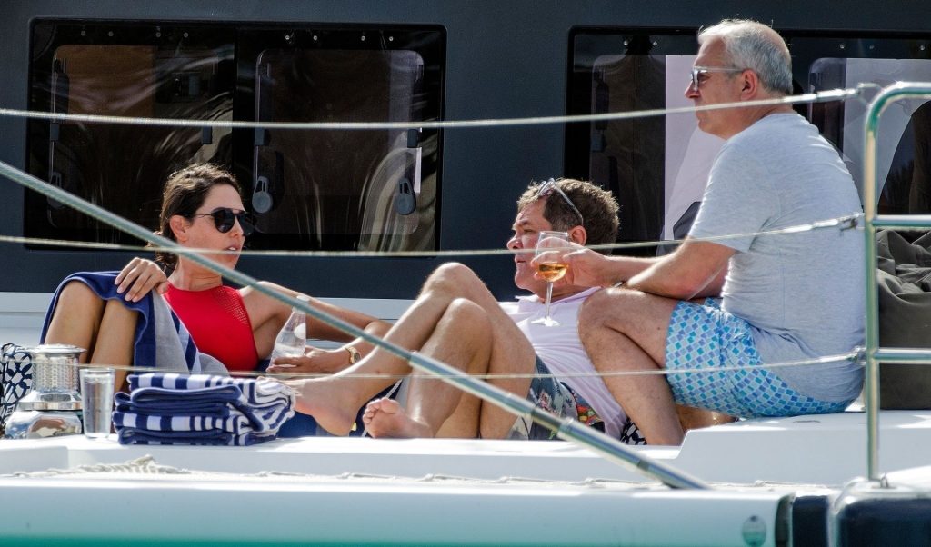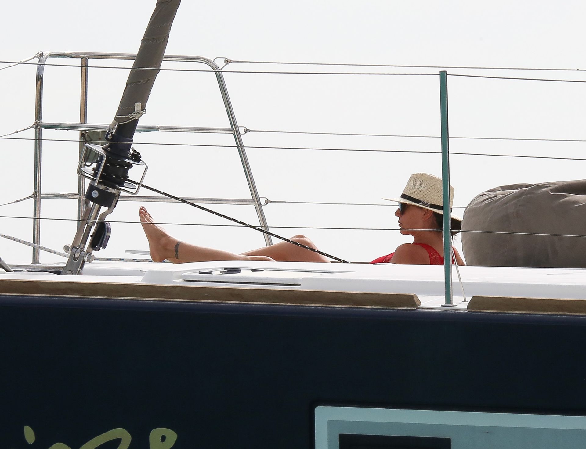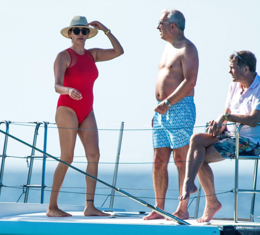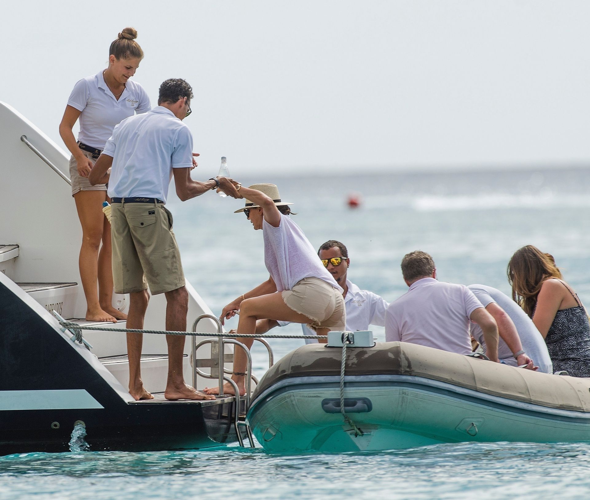 Music mogul Simon Cowell and his partner Lauren Silverman disfrutan de un día relajante en el mar a bordo de un barco en Barbados, 01/03/2020.