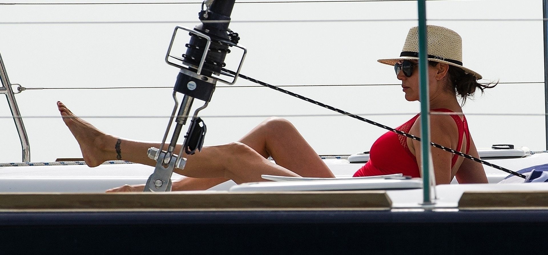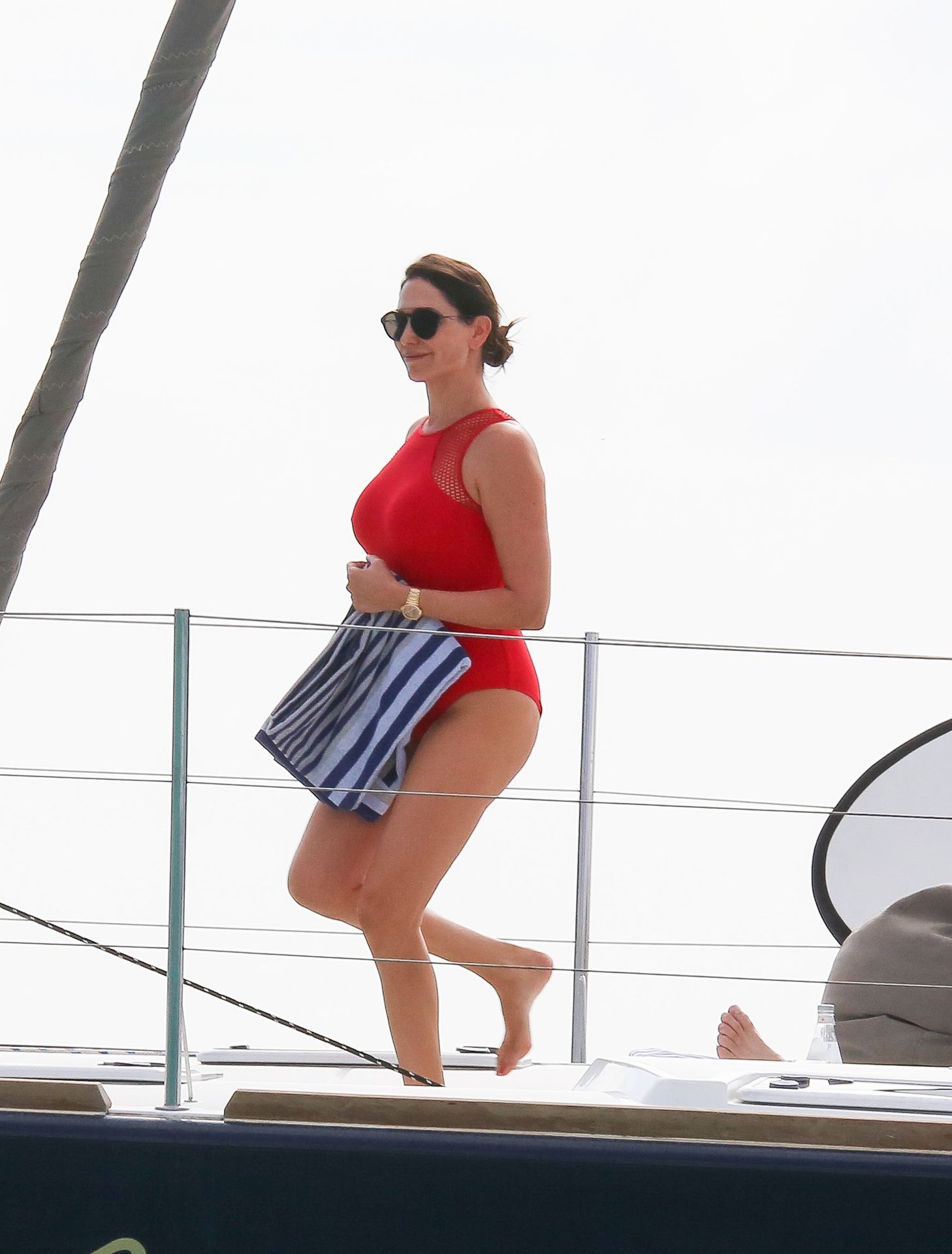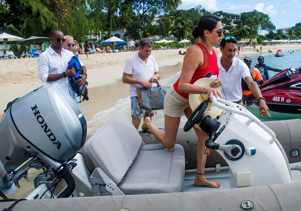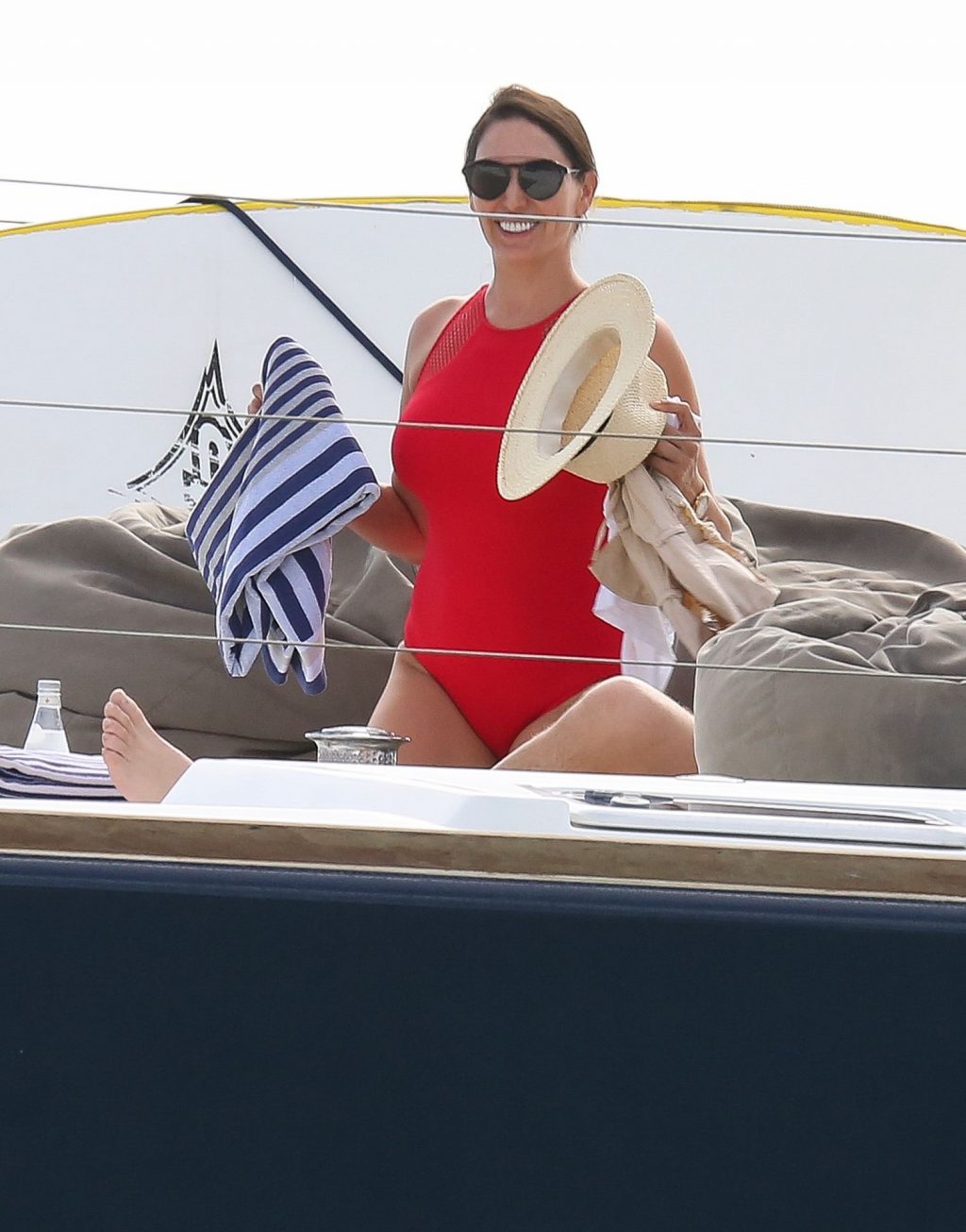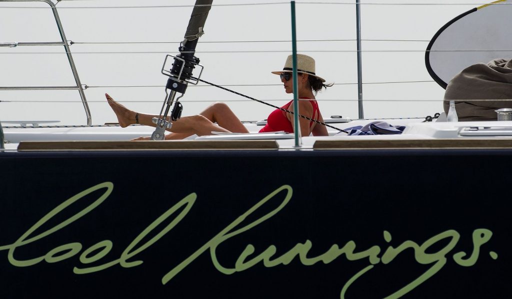 Music mogul Simon Cowell and his partner Lauren Silverman disfrutan de un día relajante en el mar a bordo de un barco en Barbados, 01/03/2020.