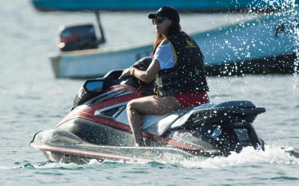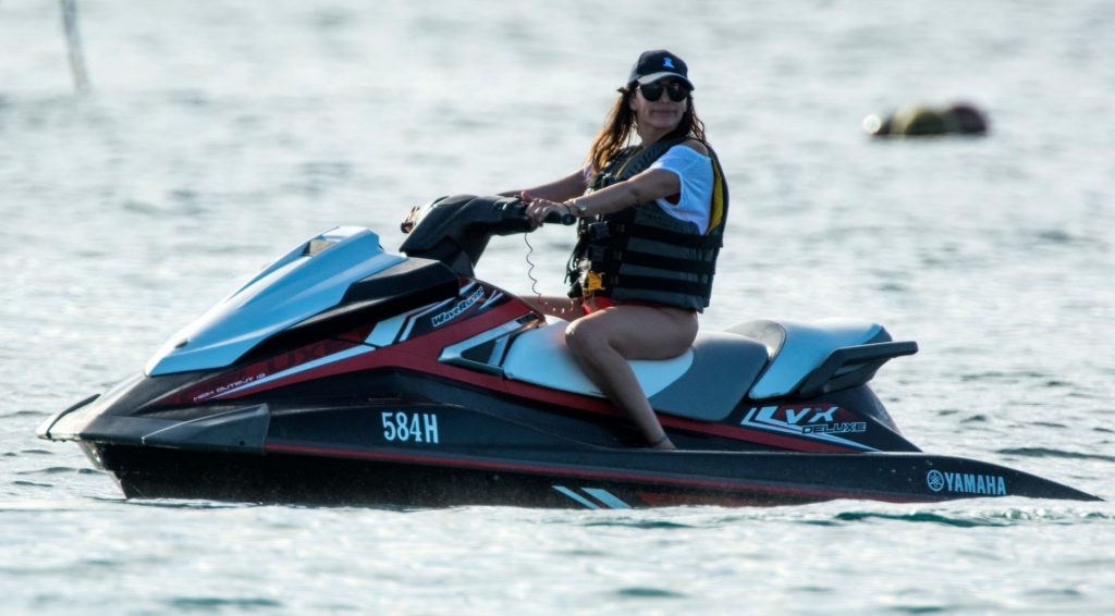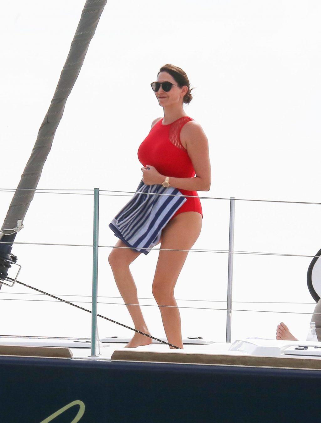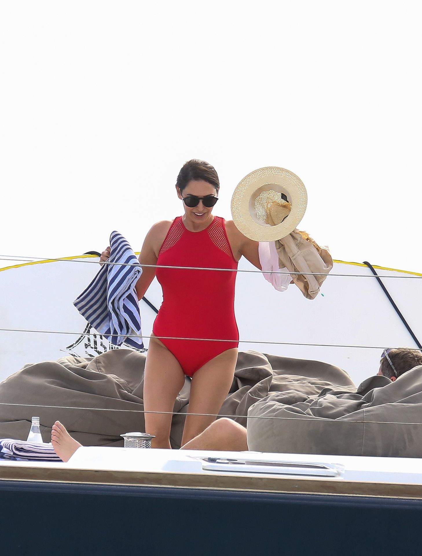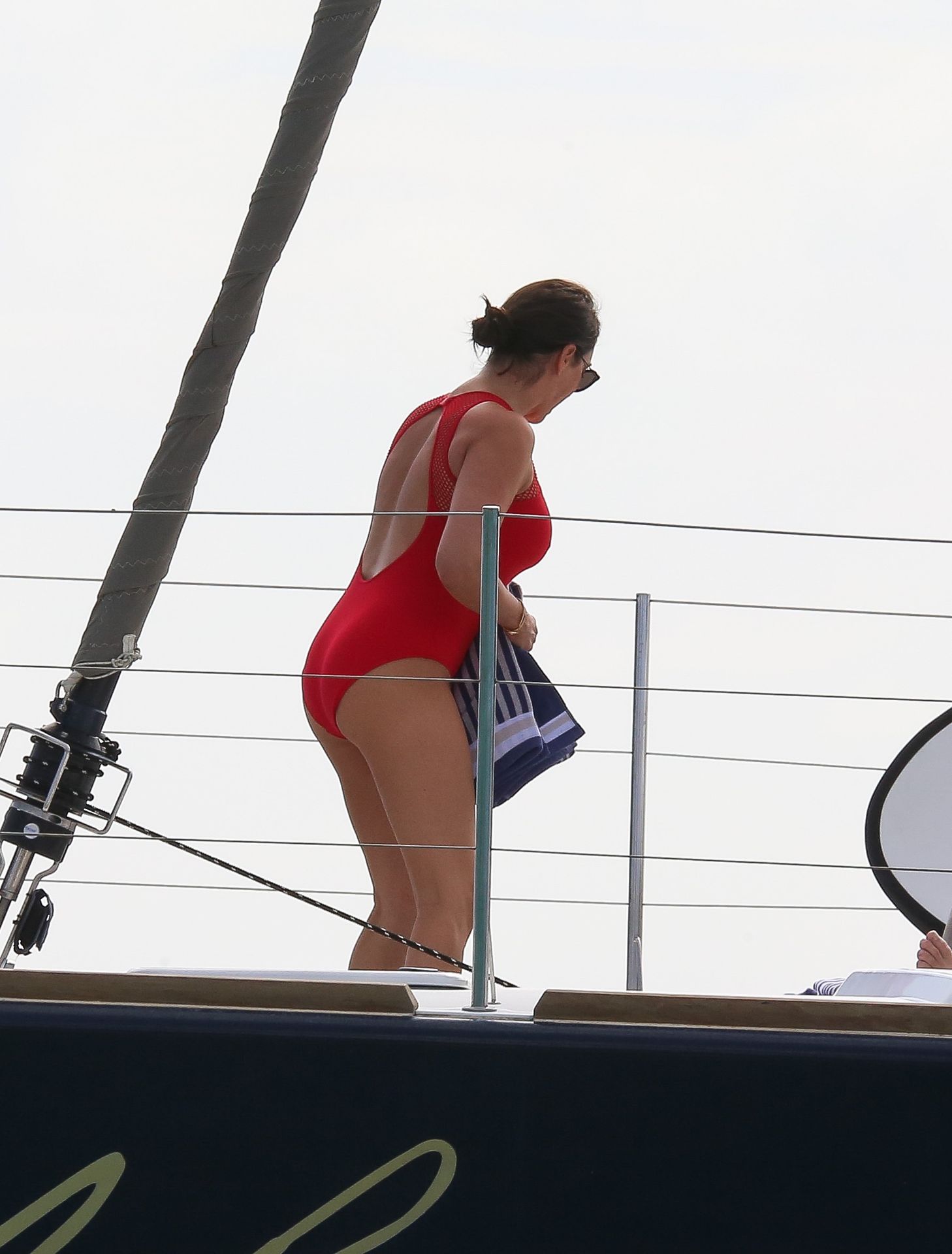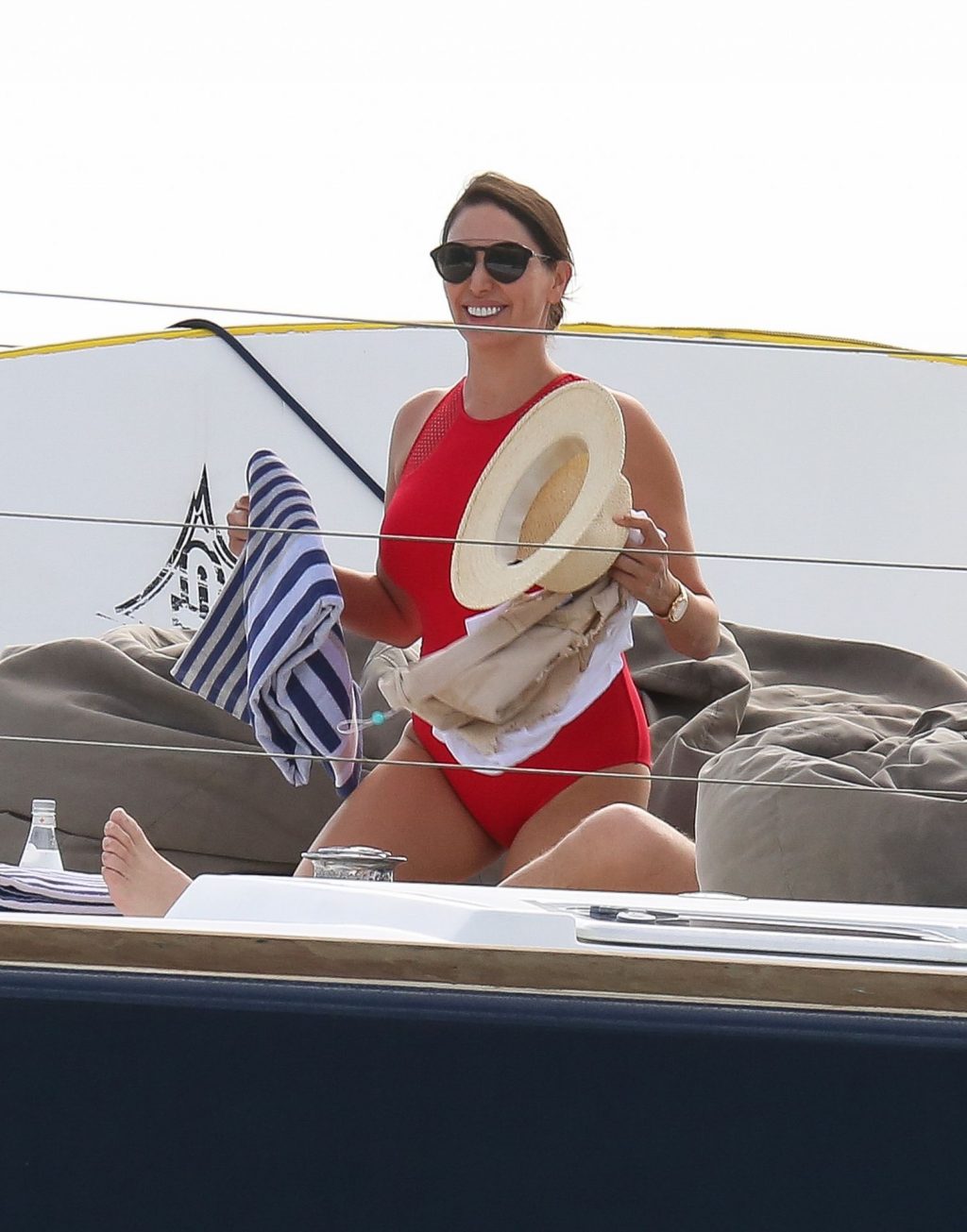 Music mogul Simon Cowell and his partner Lauren Silverman disfrutan de un día relajante en el mar a bordo de un barco en Barbados, 01/03/2020.