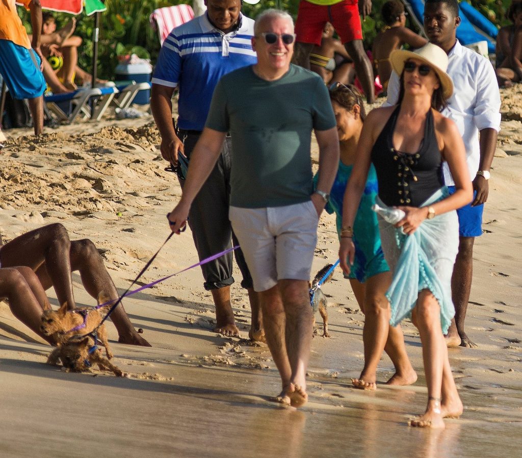 Simon Cowell y su pareja Lauren Silverman junto a su familia disfrutan de otro día soleado en la playa de Barbados, 29/12/2019.