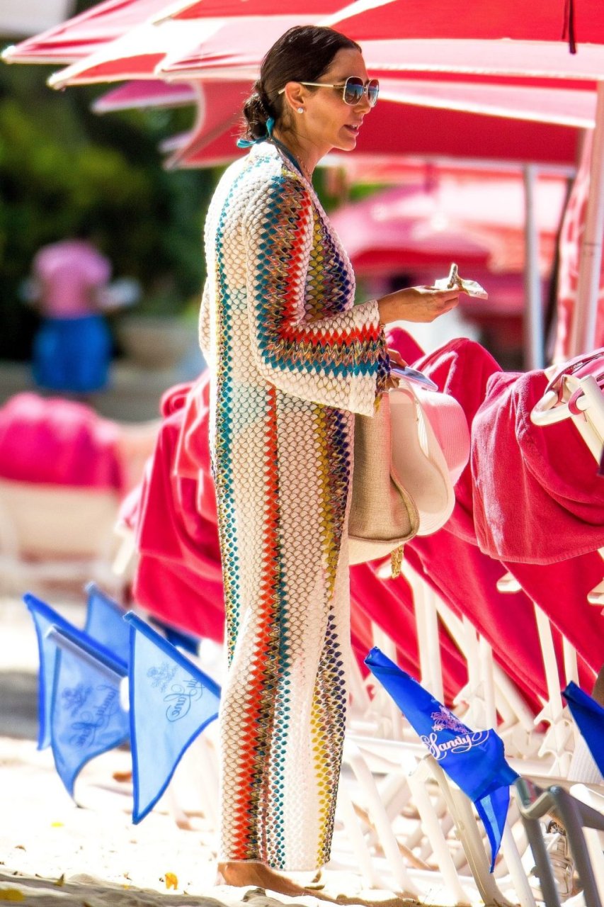 Lauren Silverman (41) muestra su increíble figura con un bikini de dos piezas color teal mientras disfruta de un día de playa en Barbados, 13/12/2018.
