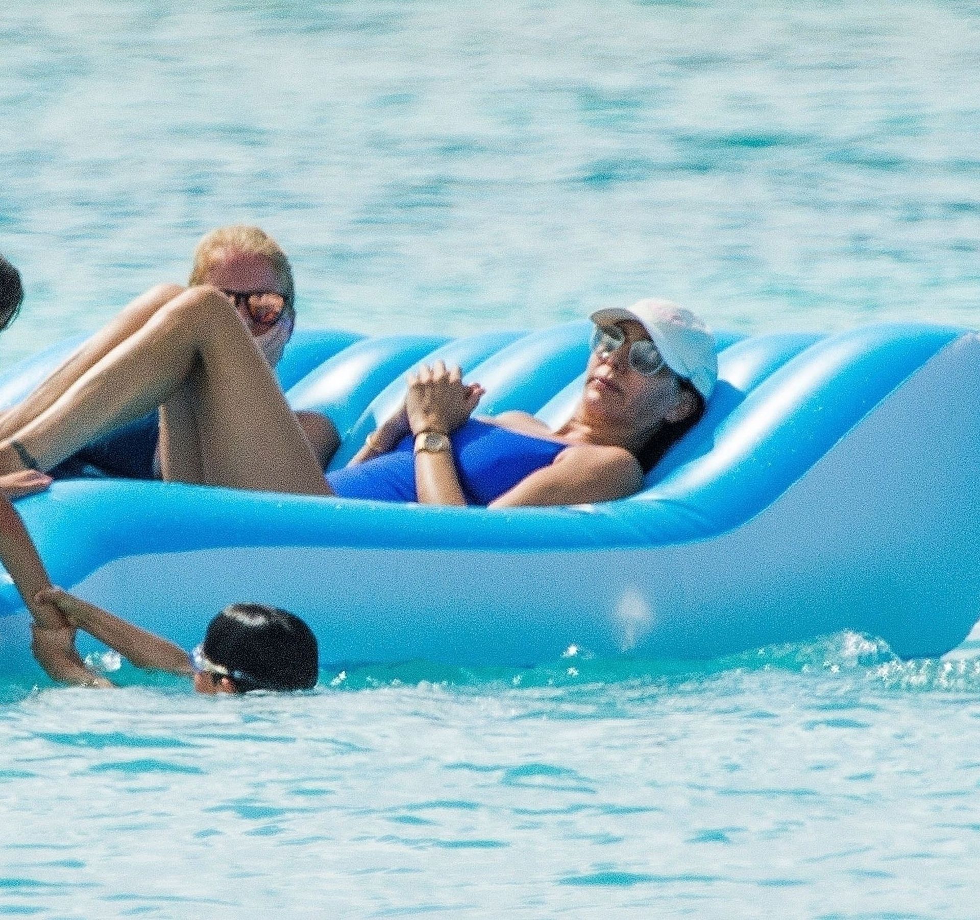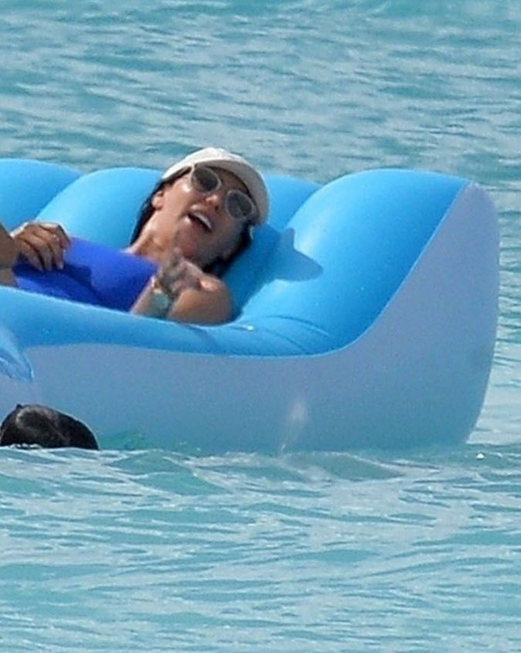 La siempre tan elegante Lauren sosteniendo su bolso de playa Chanel, relajándose en su tumbona y luego se dio un chapuzón en el mar para refrescarse.