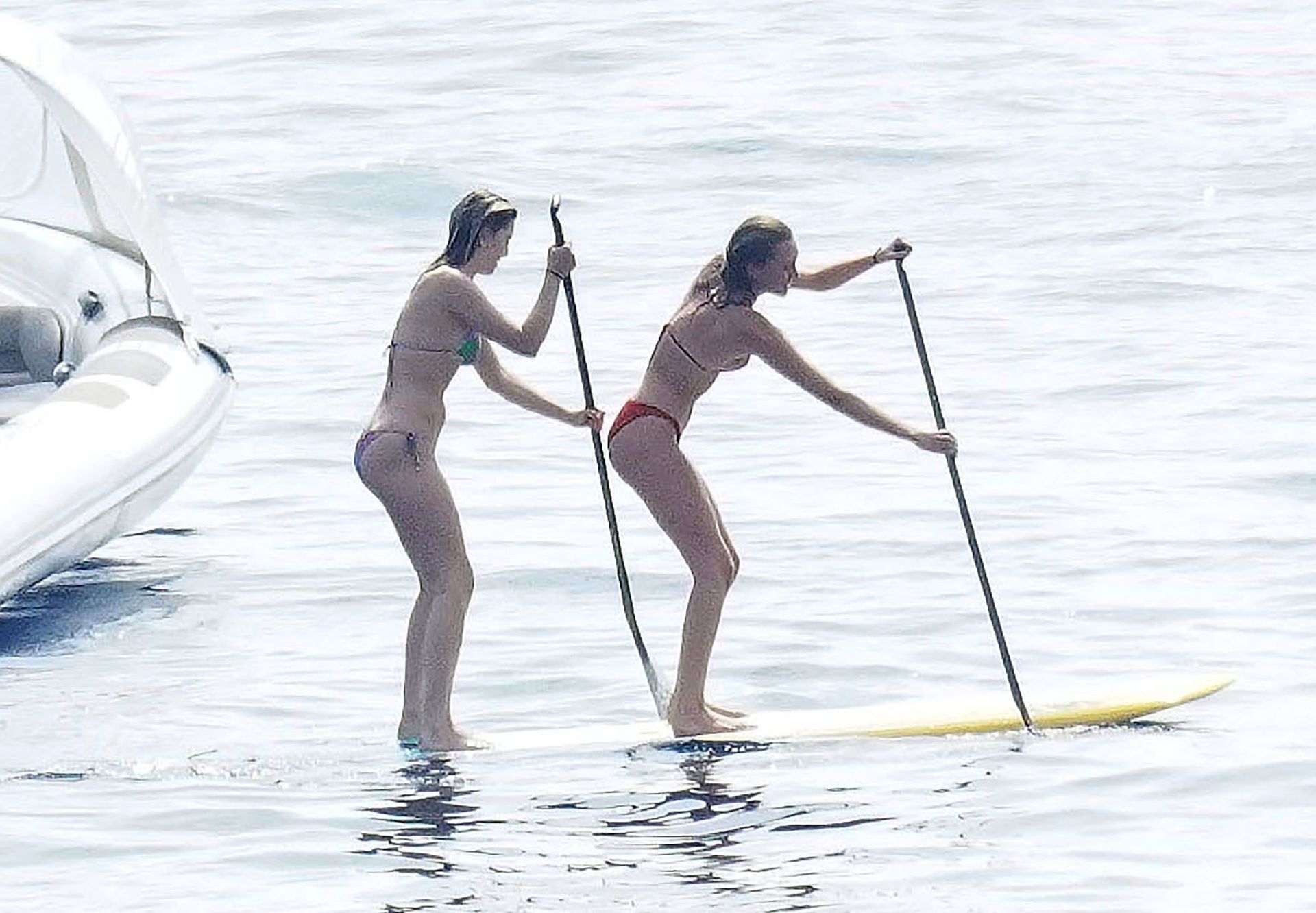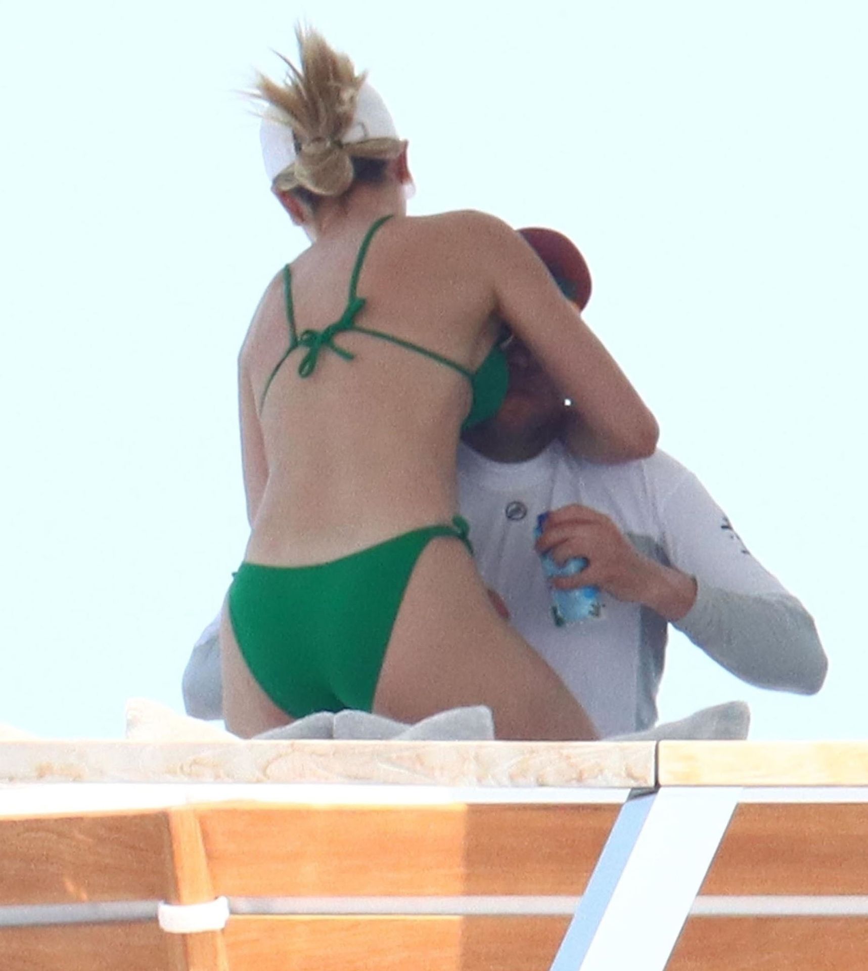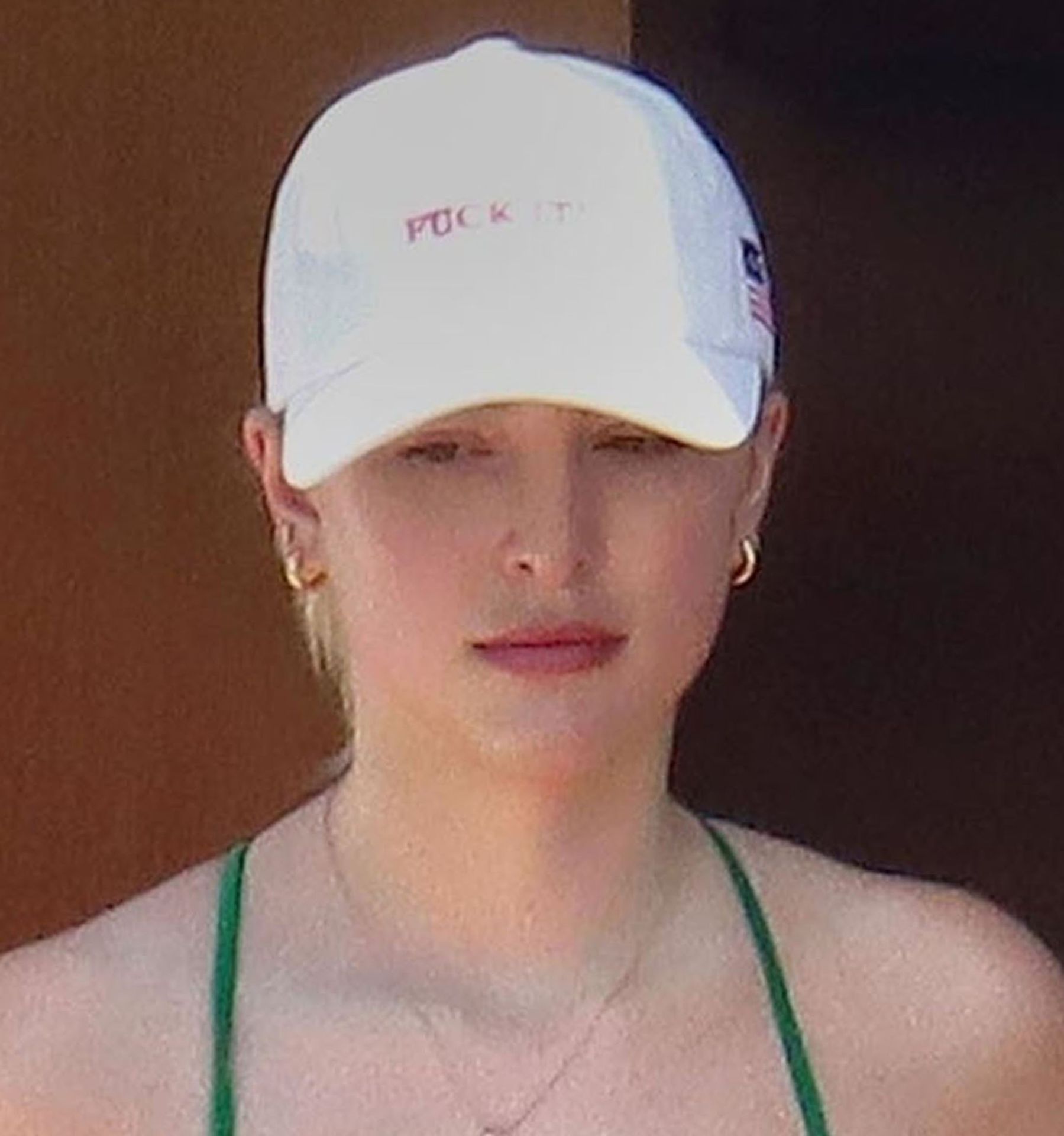 Eve, con poca ropa, luciendo su pequeño bikini verde, disfruta de un emocionante paseo en moto acuática y lleva una gorra que dice “Fuck It”, con la bandera de EE.UU. en el costado.
