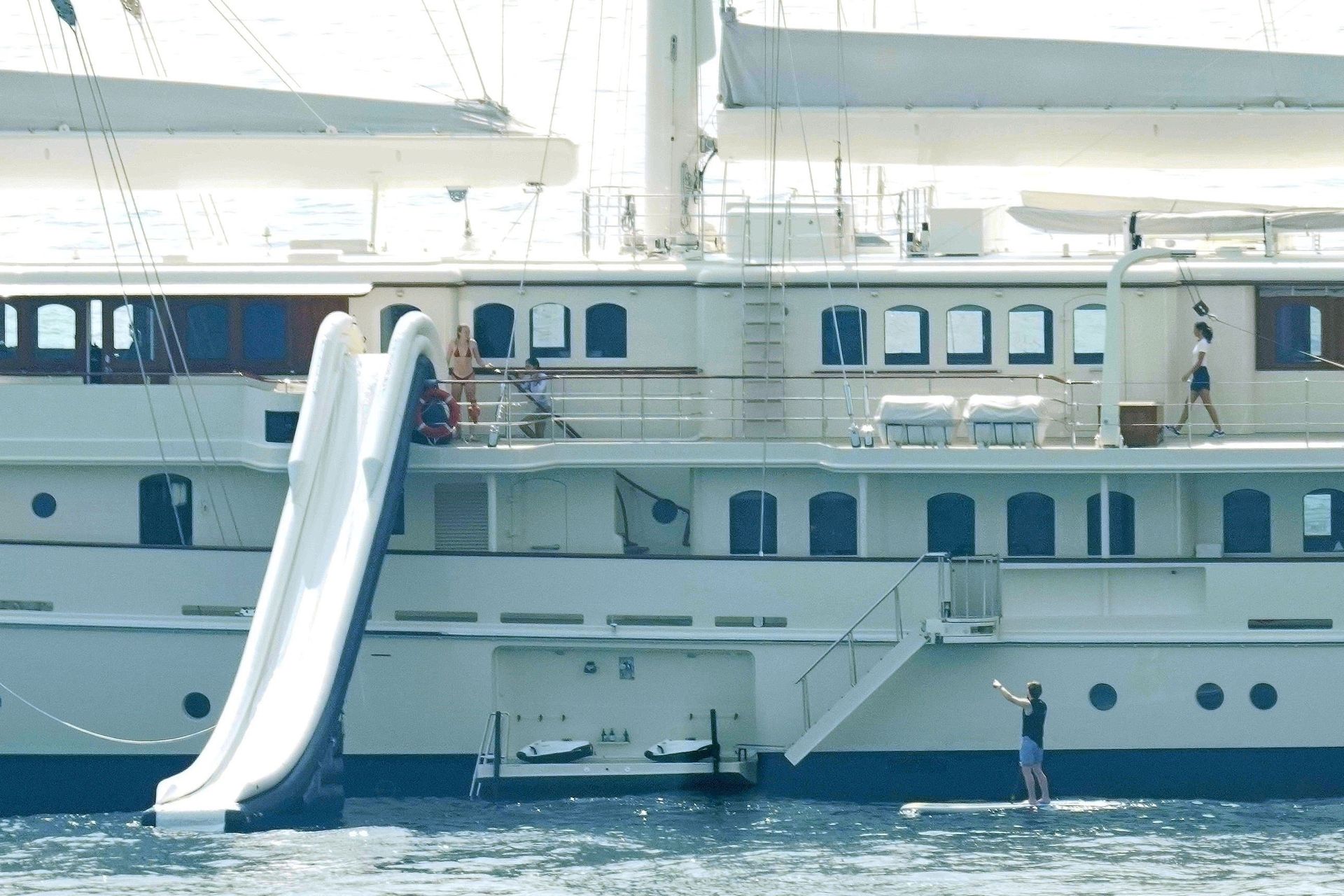 Bajo el ardiente sol francés, la esposa de Steve Jobs, Laurene Powell Jobs, escapa de EE.UU. para unas vacaciones a bordo de su mega yate ‘Venus’ con su hija Eve y algunos amigos en Cannes, 28/07/2020.