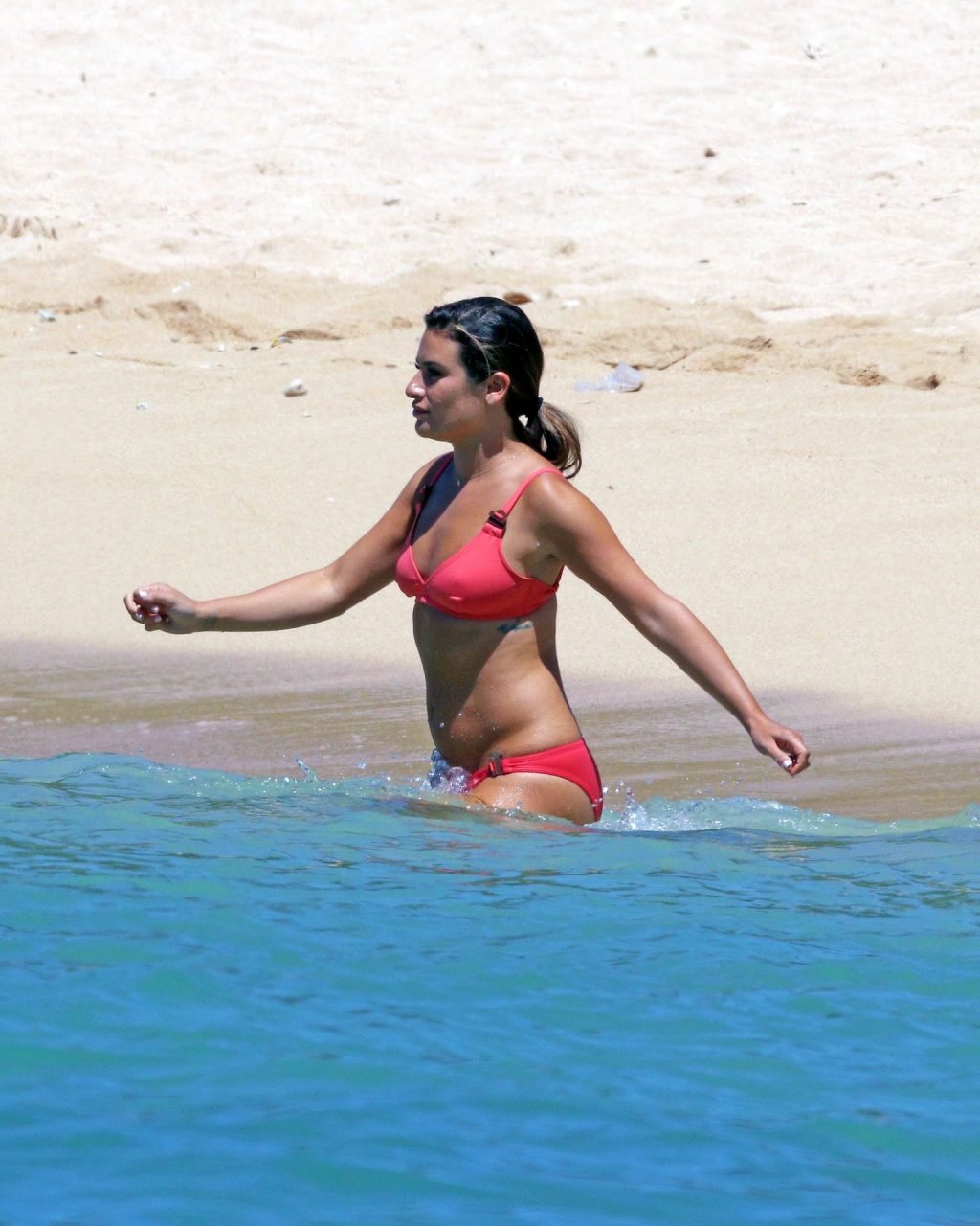 Lea Michele lleva un bikini rosa fuerte en el set mientras filma en Hawái, 16/08/2019. La ex estrella de “Glee” de 32 años fue vista comiendo entre tomas.
